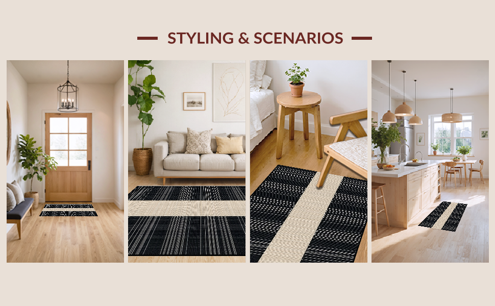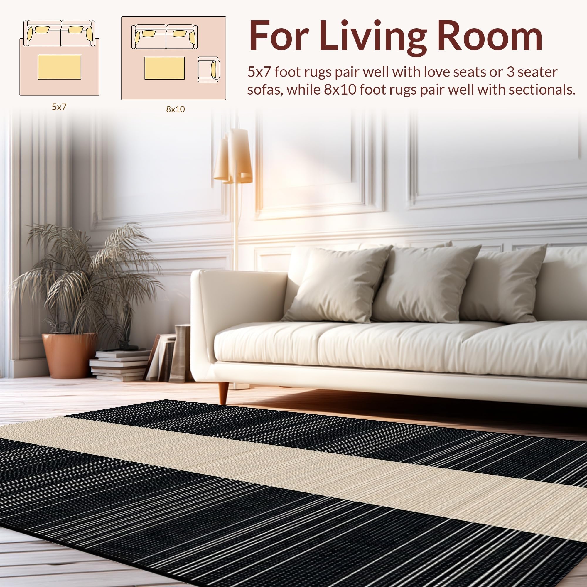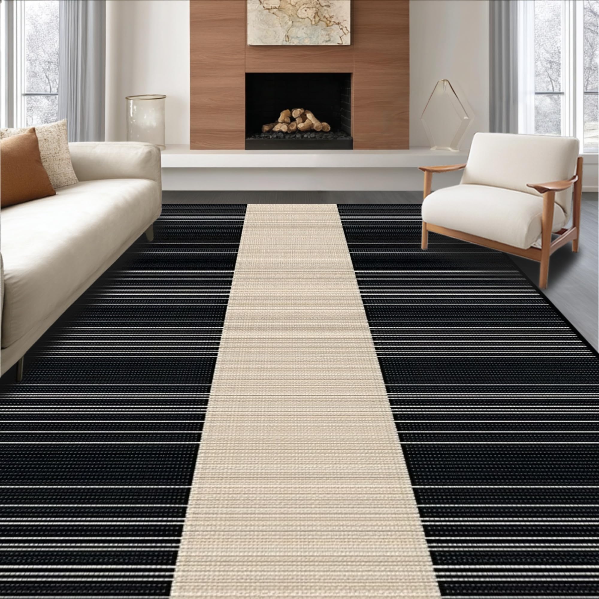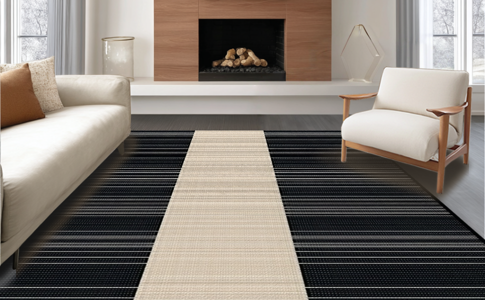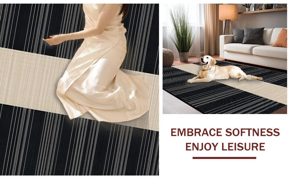Ultra Soft Area Rug, Non Slip, Stain Resistant, Washable Area Rugs for Living Room, Bedroom, Elegant Classic Stripe Aesthetic(Beige) Overview: