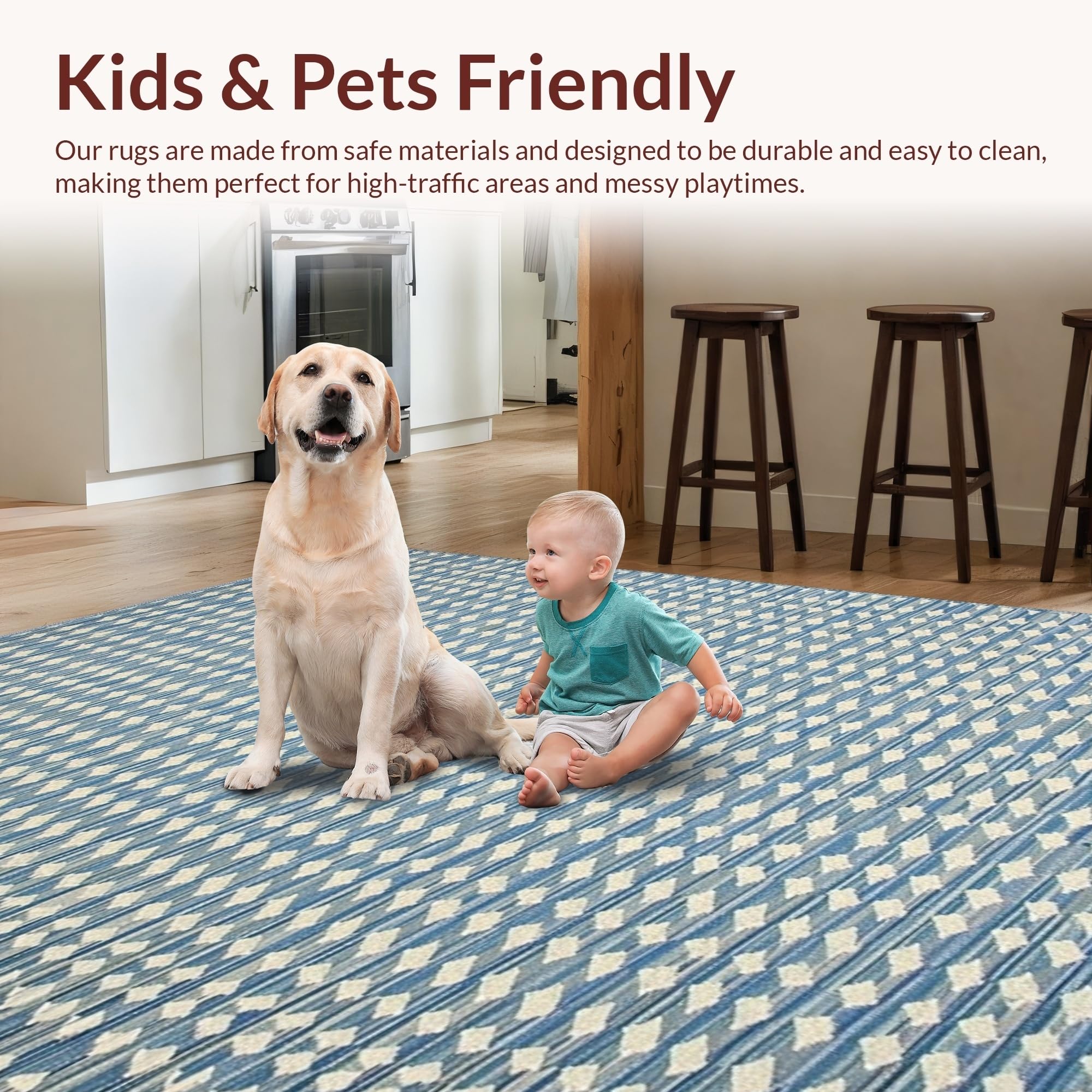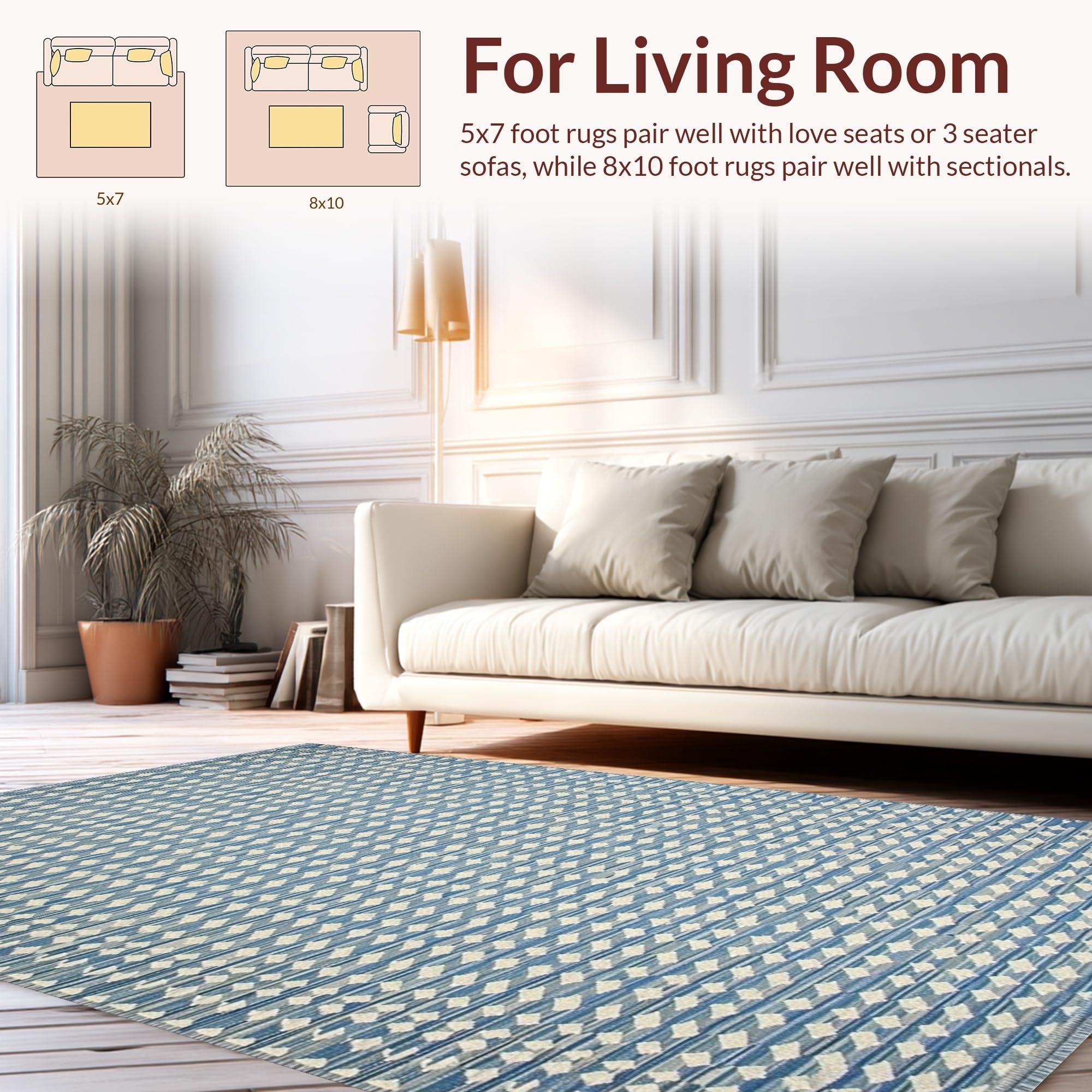 Ultra Soft Area Rug, Non Slip, Stain Resistant, Washable Area Rugs for Living Room, Bedroom, Elegant Coastal Floral Arrangement(Blue) Overview:
