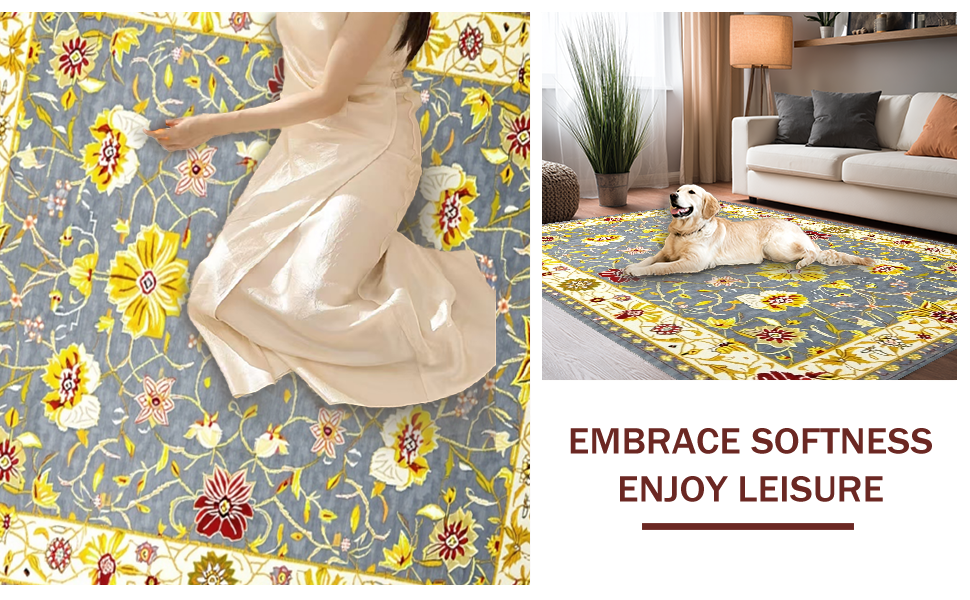 Ultra Soft Area Rug, Non Slip, Stain Resistant, Washable Area Rugs for Living Room, Bedroom, Elegant Color Splash Floral Theme(Blue) Overview: