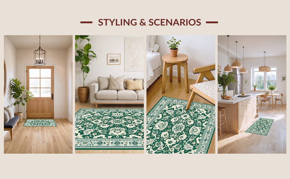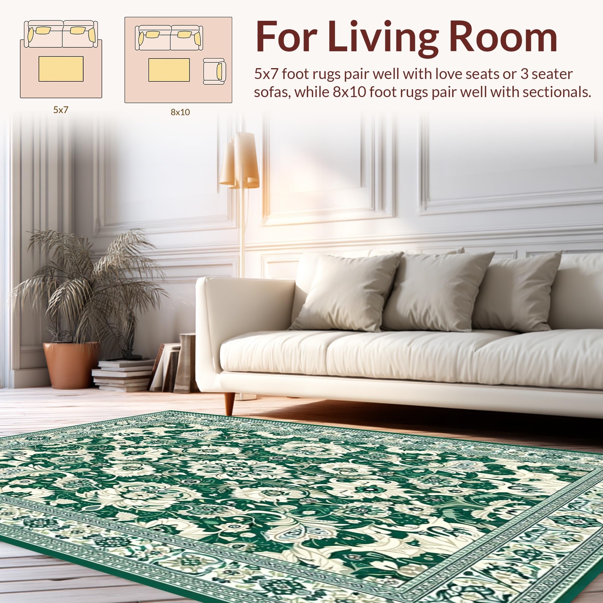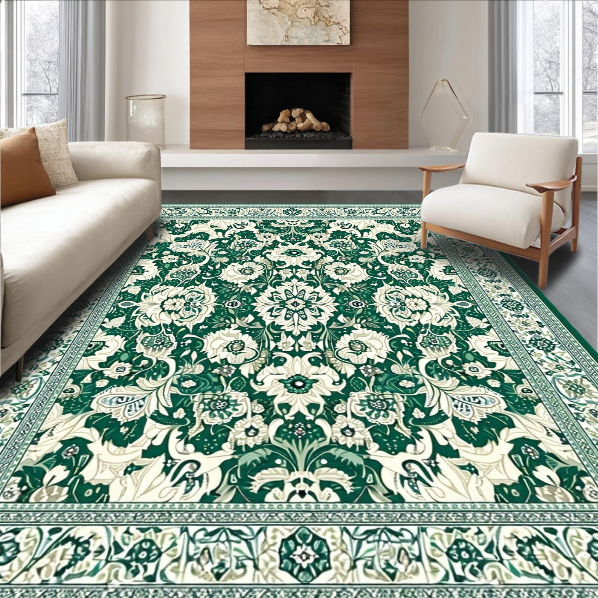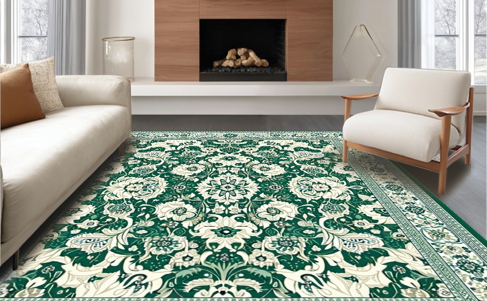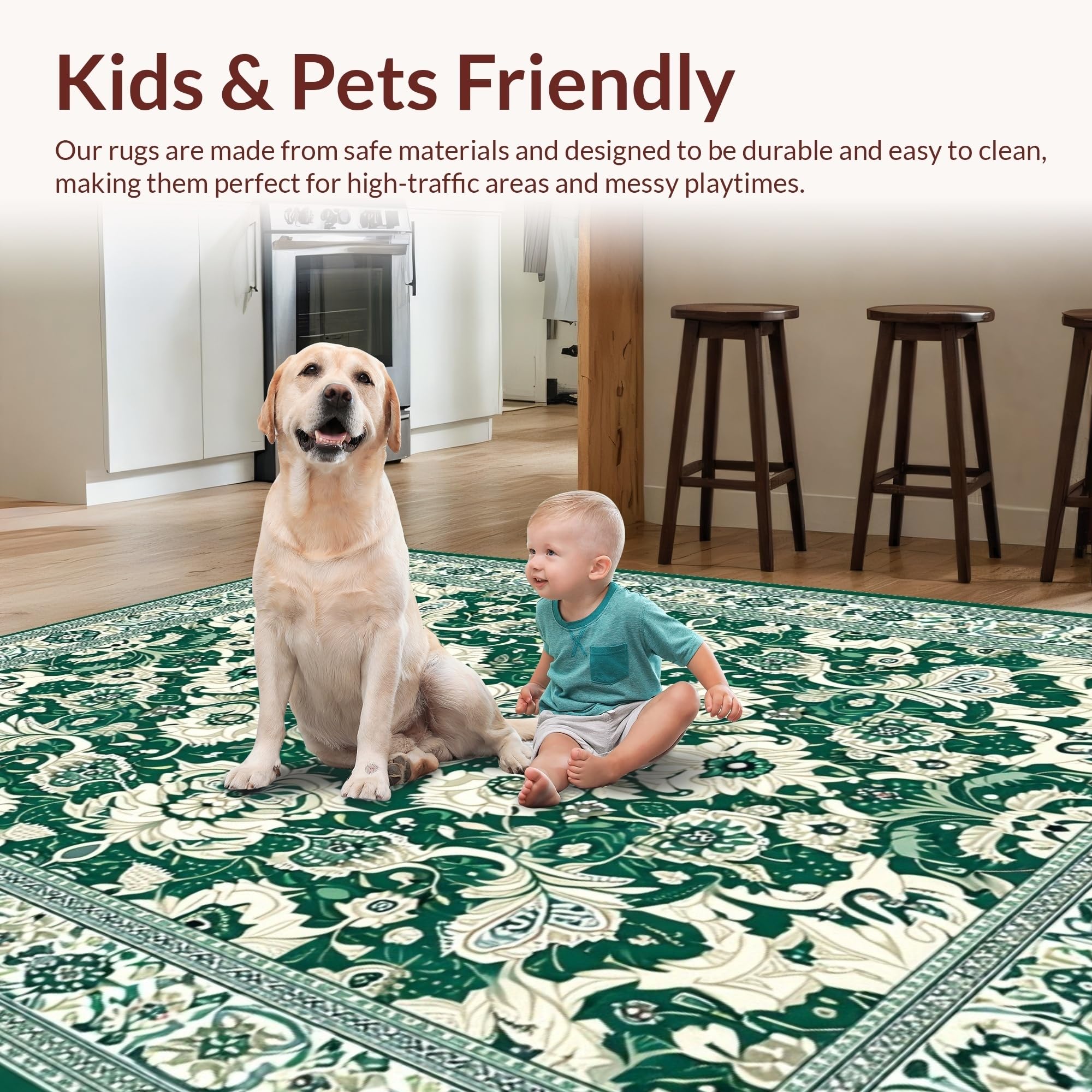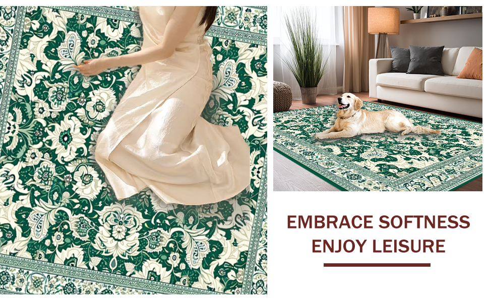 Ultra Soft Area Rug, Non Slip, Stain Resistant, Washable Area Rugs for Living Room, Bedroom, Elegant Colorful Organic Shapes(Green) Overview: