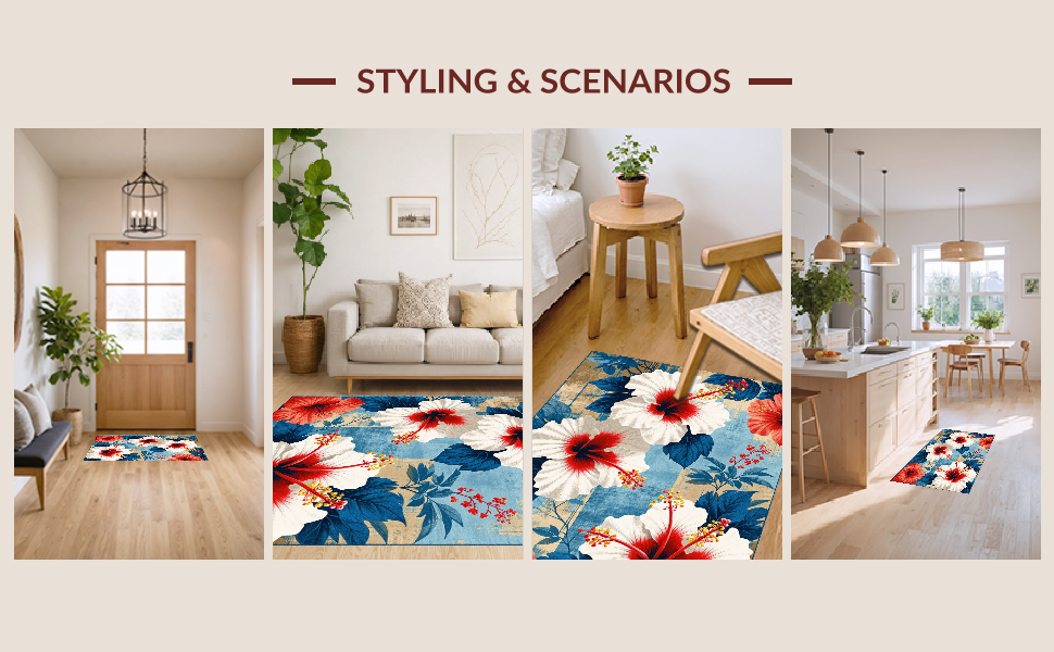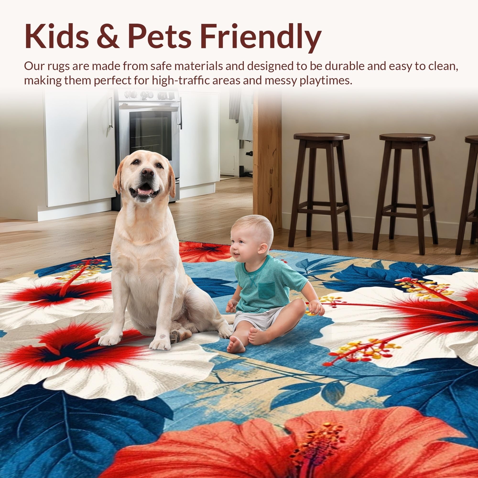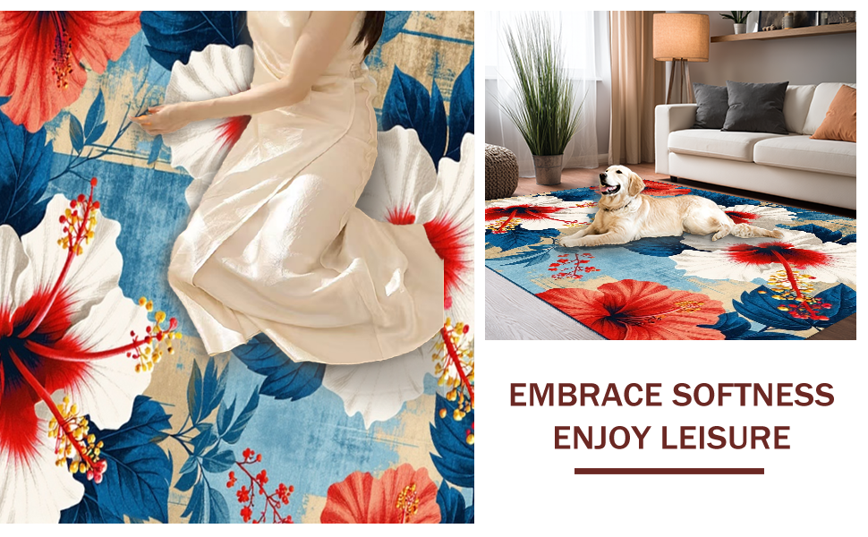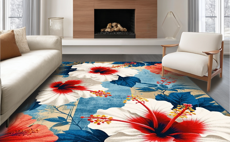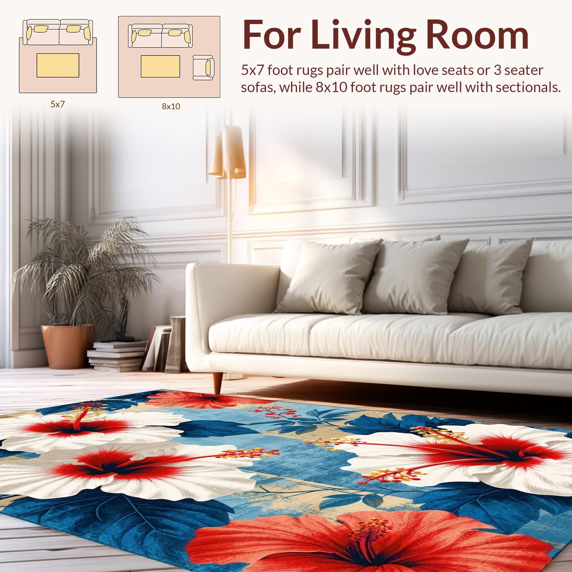 Ultra Soft Area Rug, Non Slip, Stain Resistant, Washable Area Rugs for Living Room, Bedroom, Elegant Contemporary Floral Fusion(White) Overview: