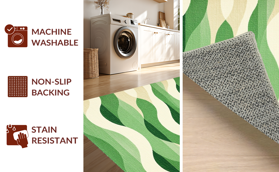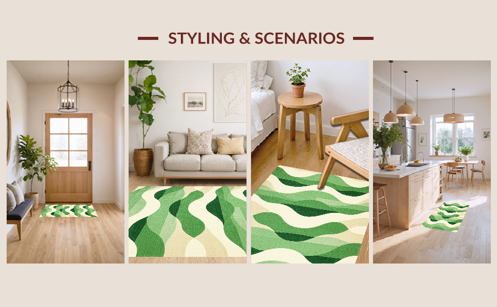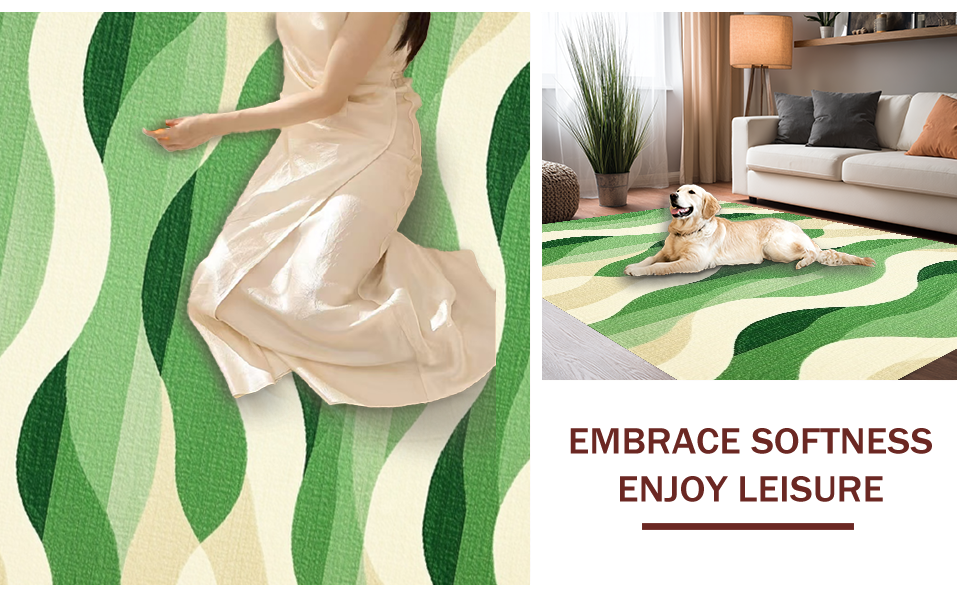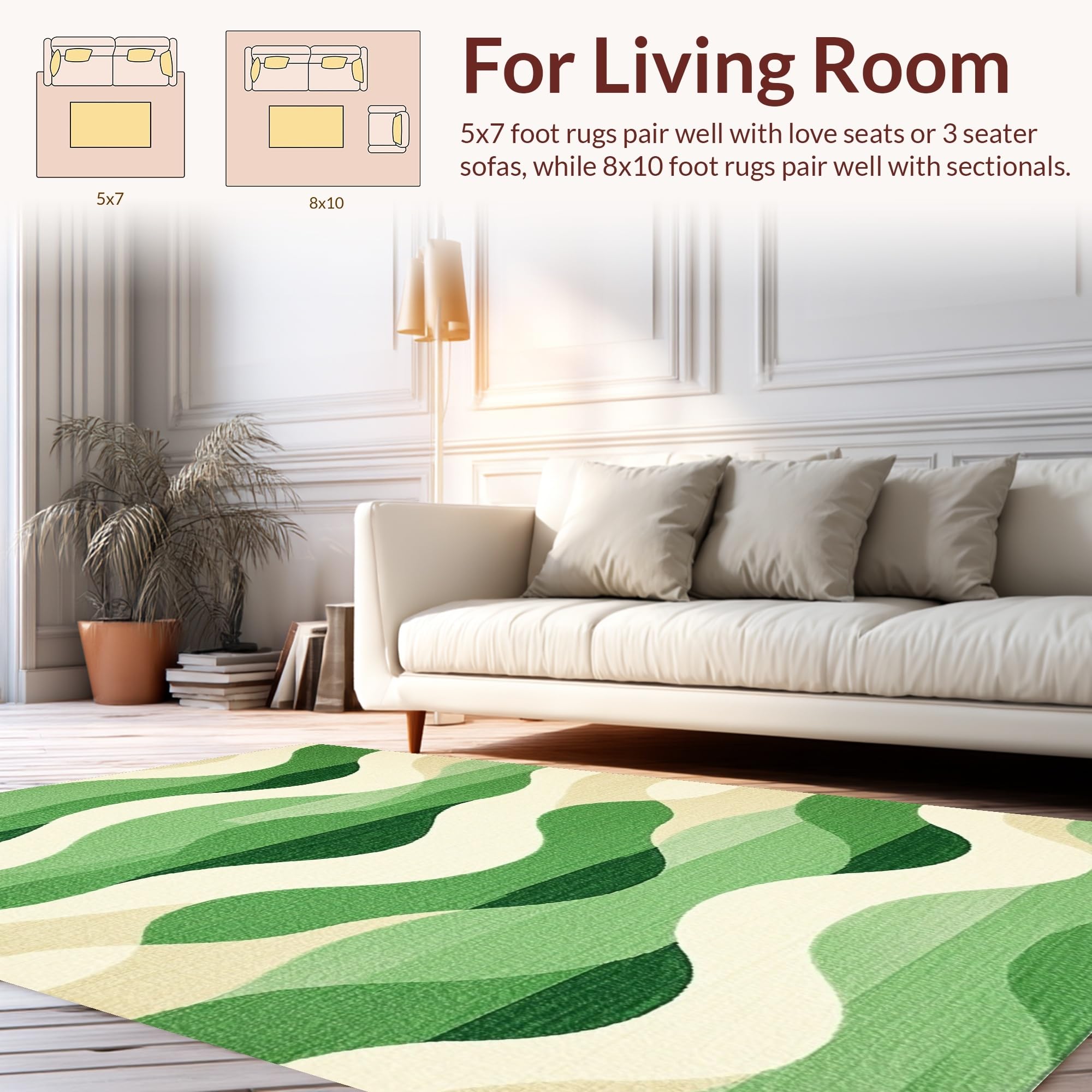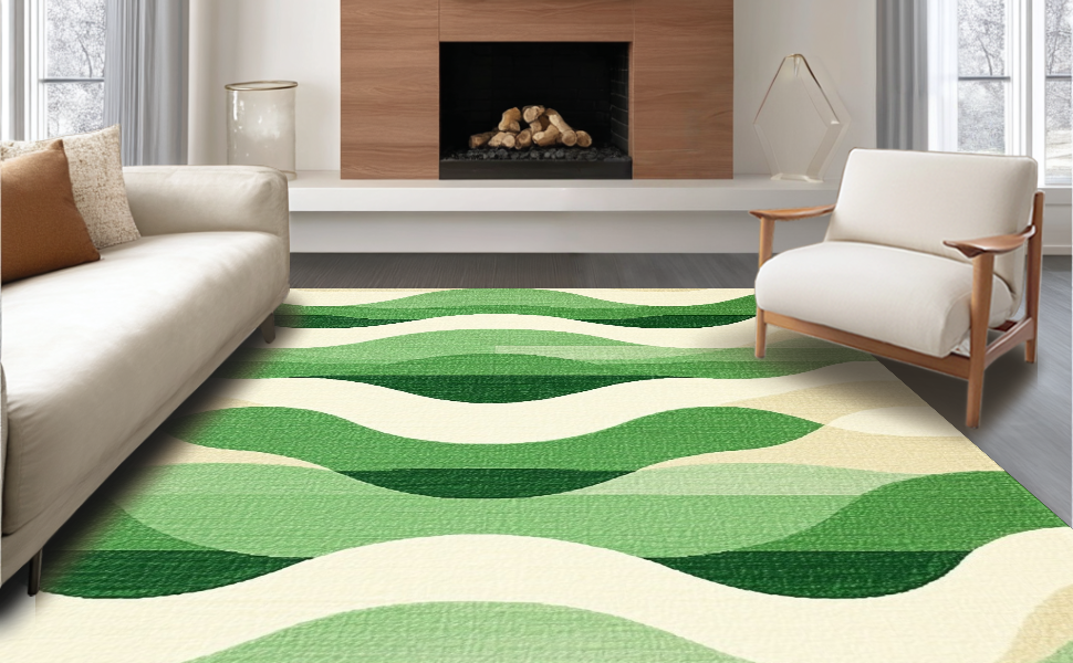 Ultra Soft Area Rug, Non Slip, Stain Resistant, Washable Area Rugs for Living Room, Bedroom, Elegant Contemporary Fluid Design(Green) Overview: