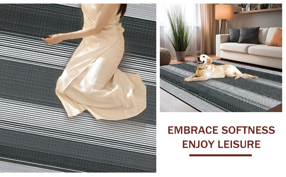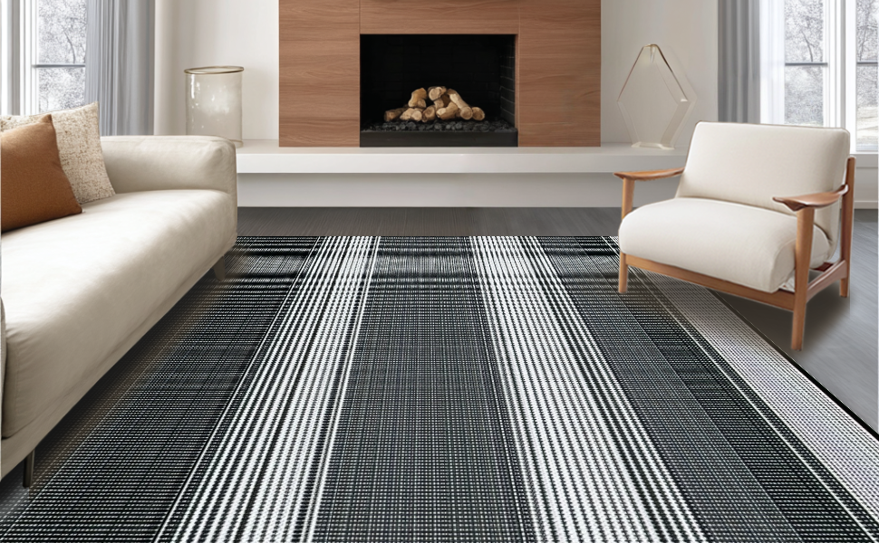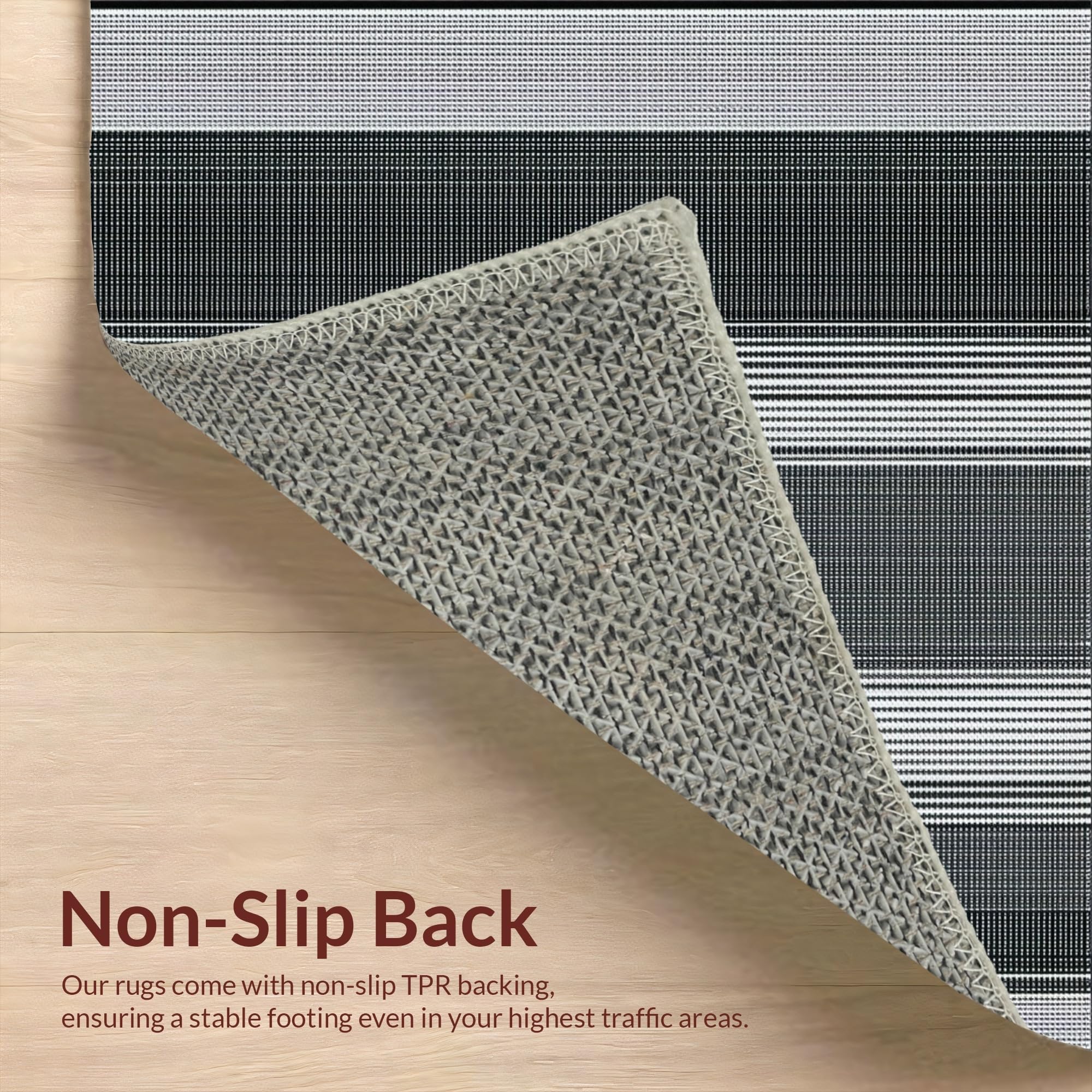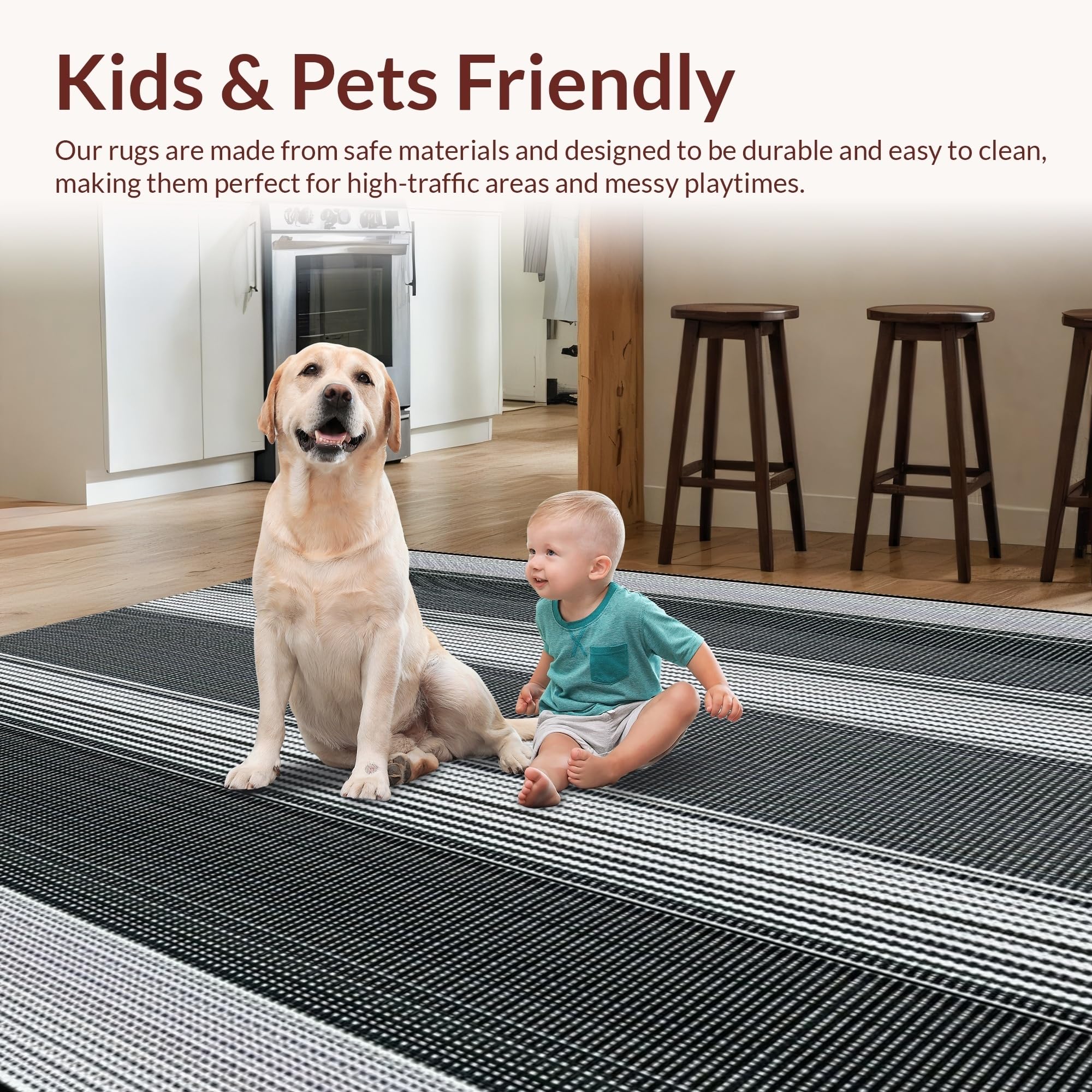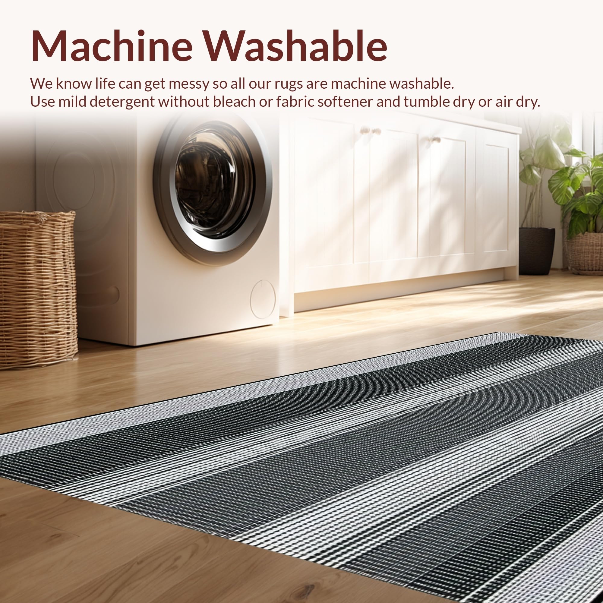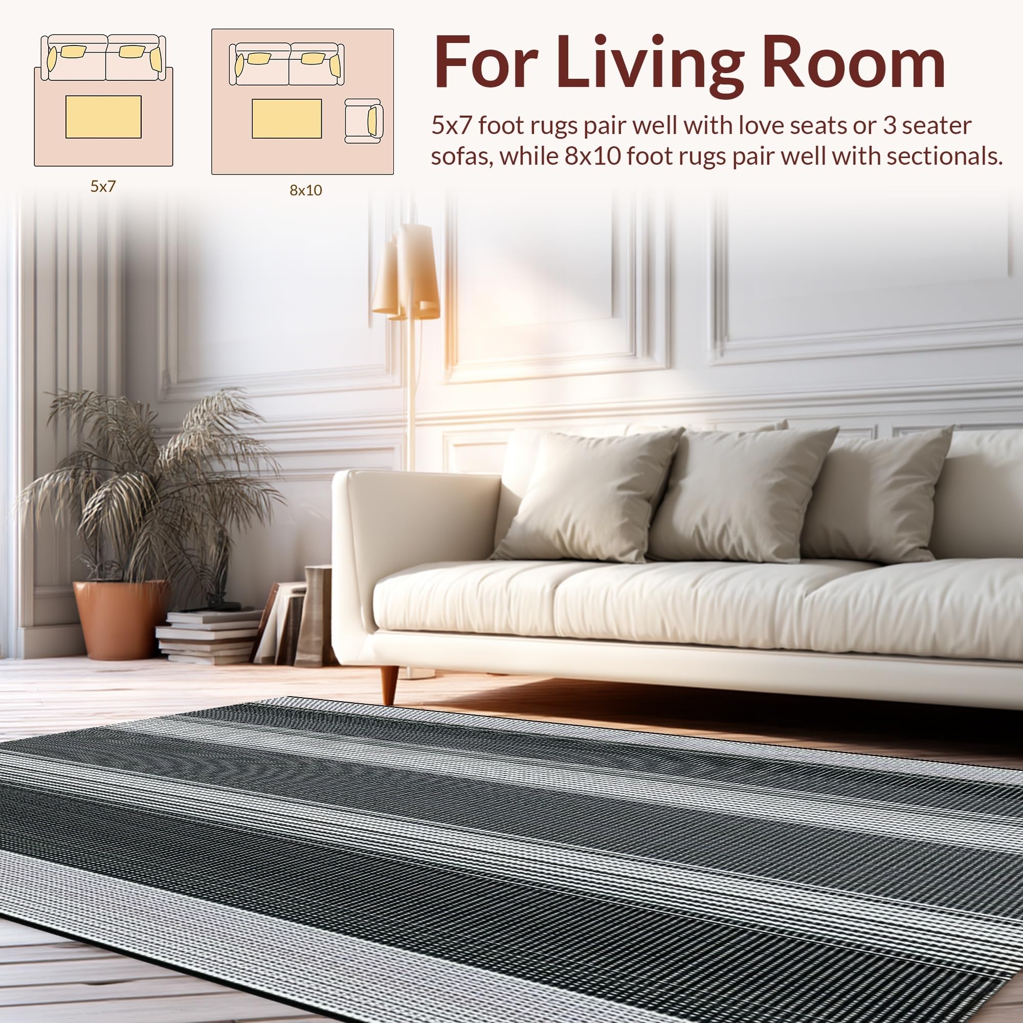 Ultra Soft Area Rug, Non Slip, Stain Resistant, Washable Area Rugs for Living Room, Bedroom, Elegant Contemporary Striped Design(Black) Overview: