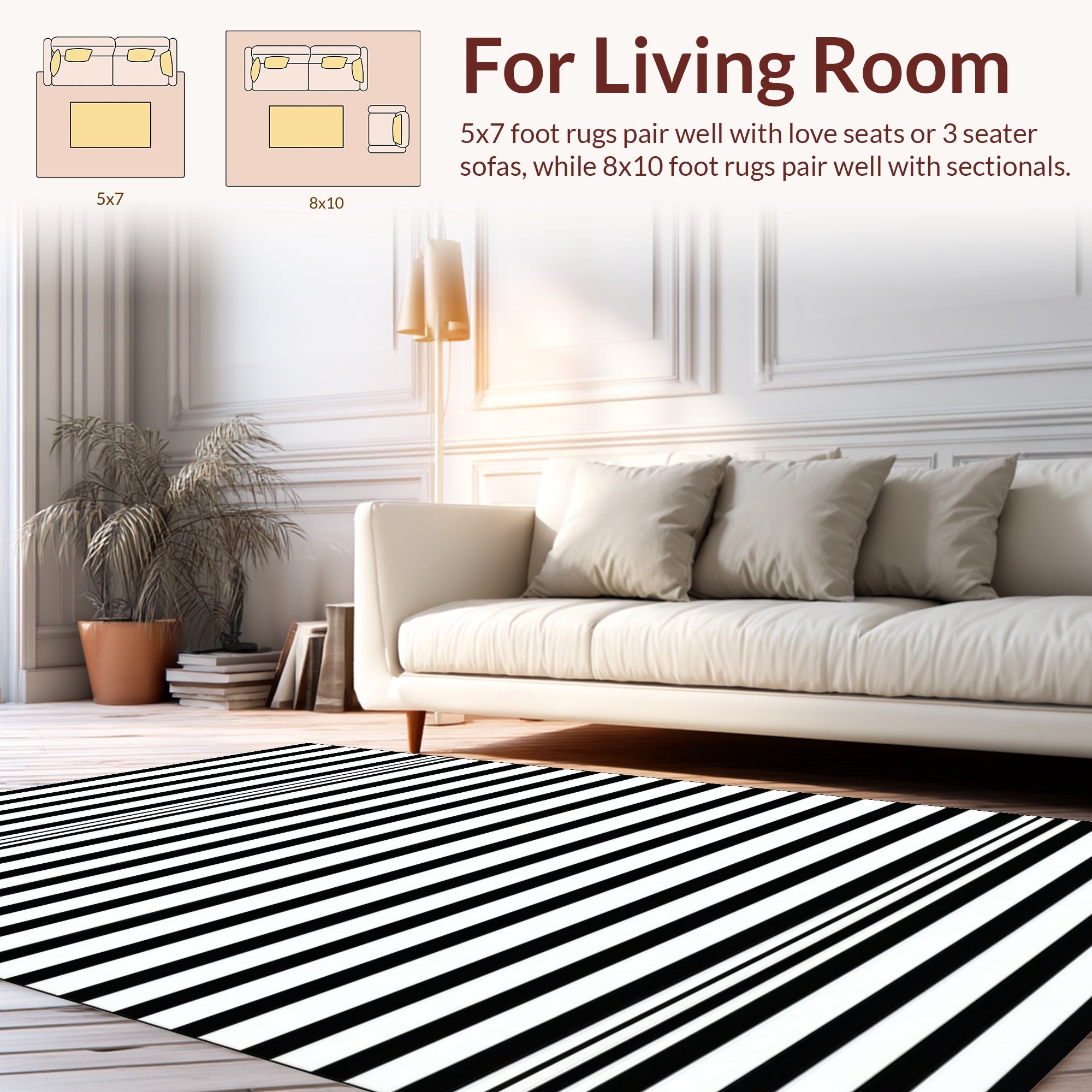 Flatwoven High Traffic Area Rug, Elegant Contemporary Striped Motif, Non Slip, Stain Resistant, Washable Area Rugs for Living Room, Bedroom (Black) Overview: