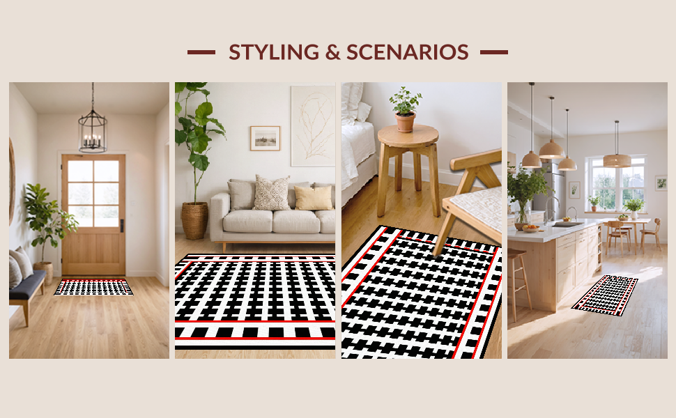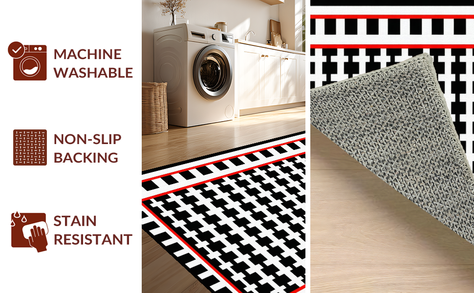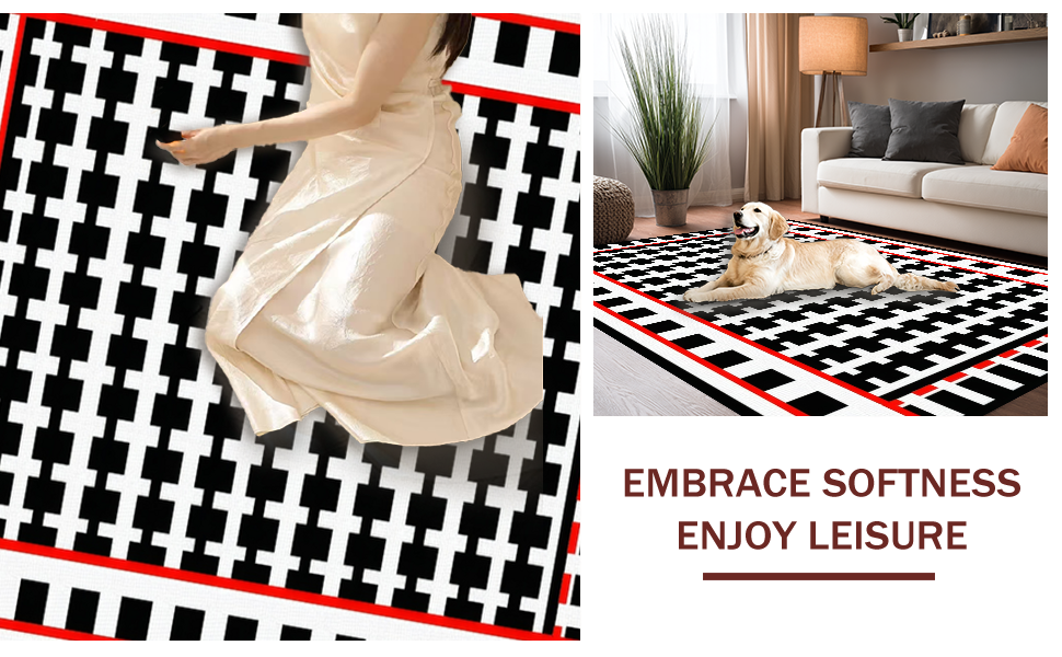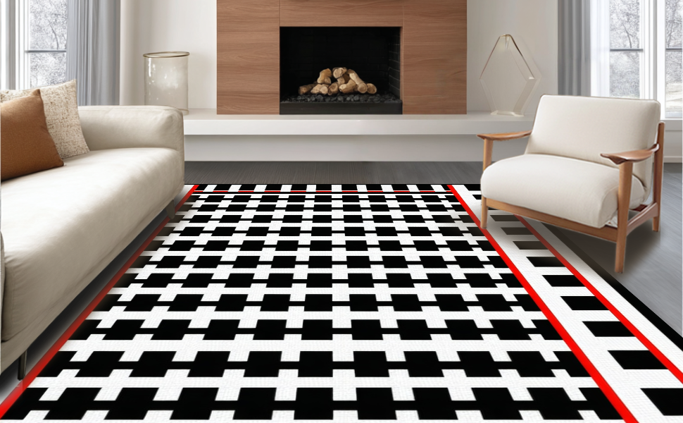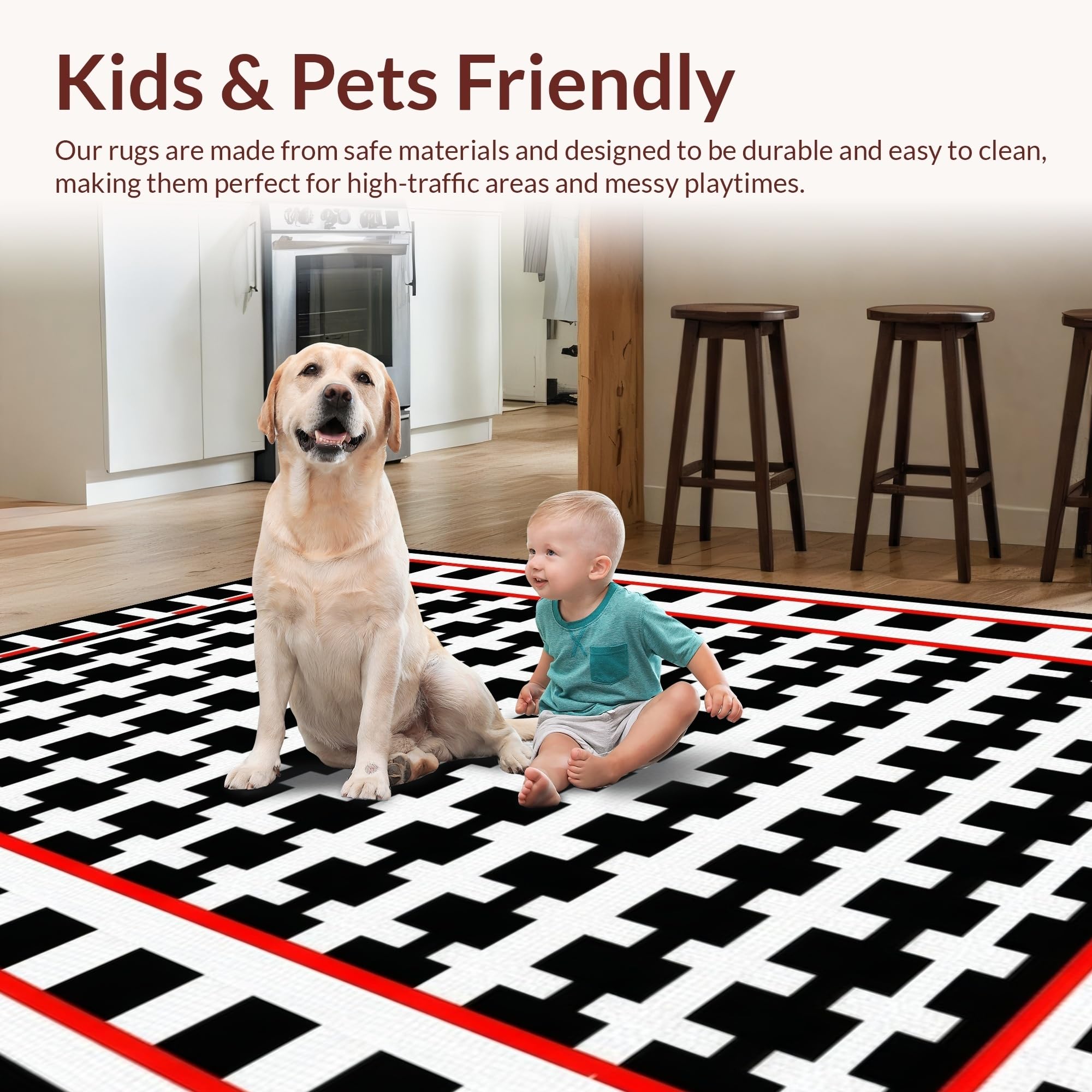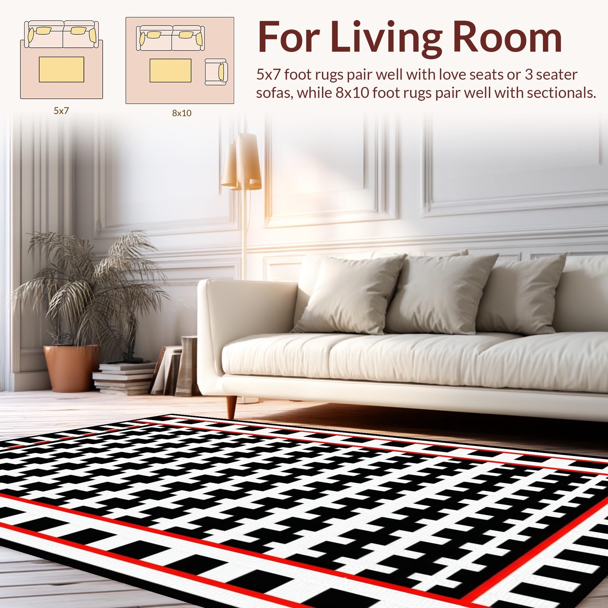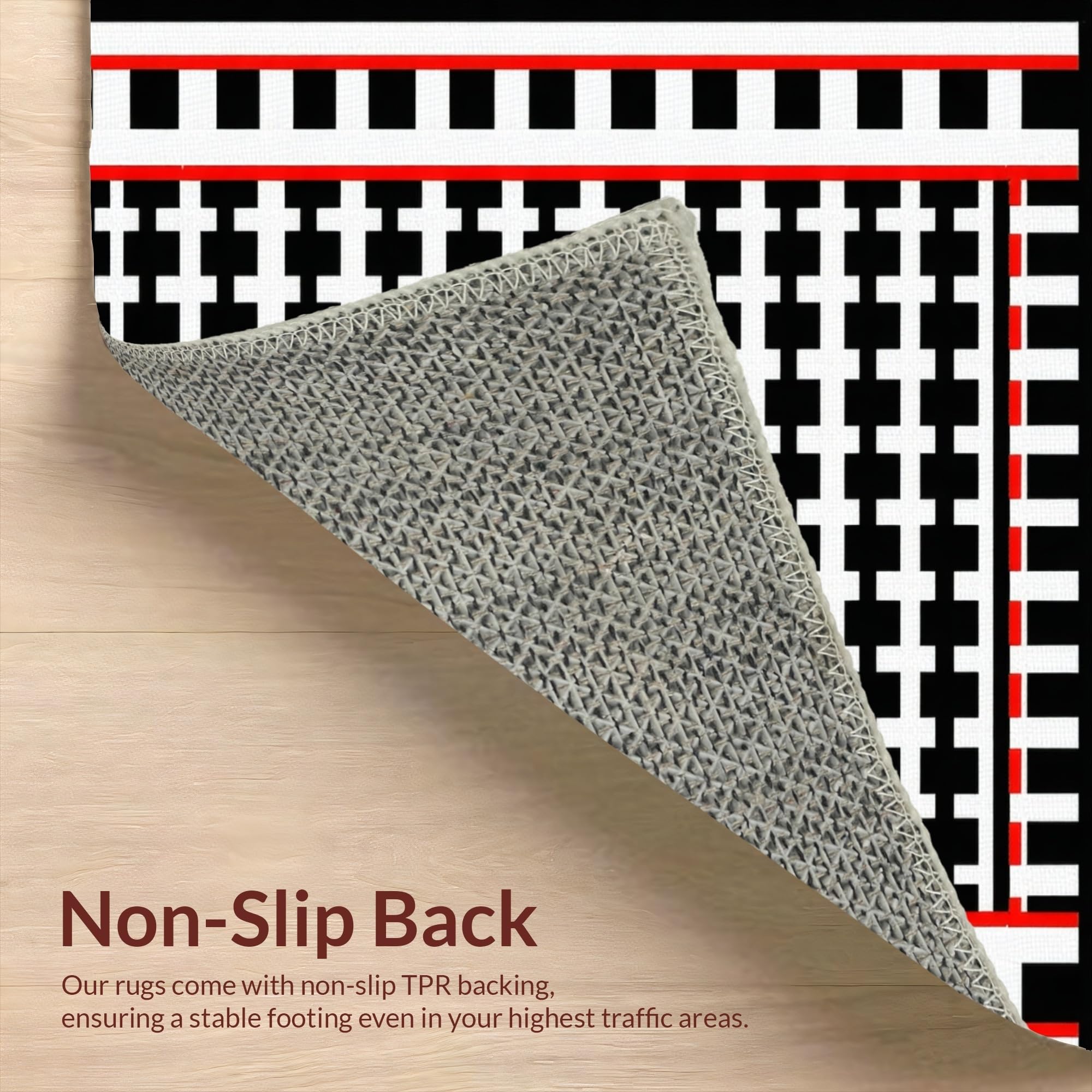 Ultra Soft Area Rug, Non Slip, Stain Resistant, Washable Area Rugs for Living Room, Bedroom, Elegant Contemporary Tic Tac Toe Design(Black) Overview: