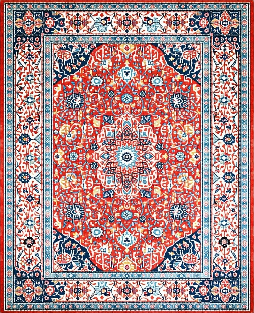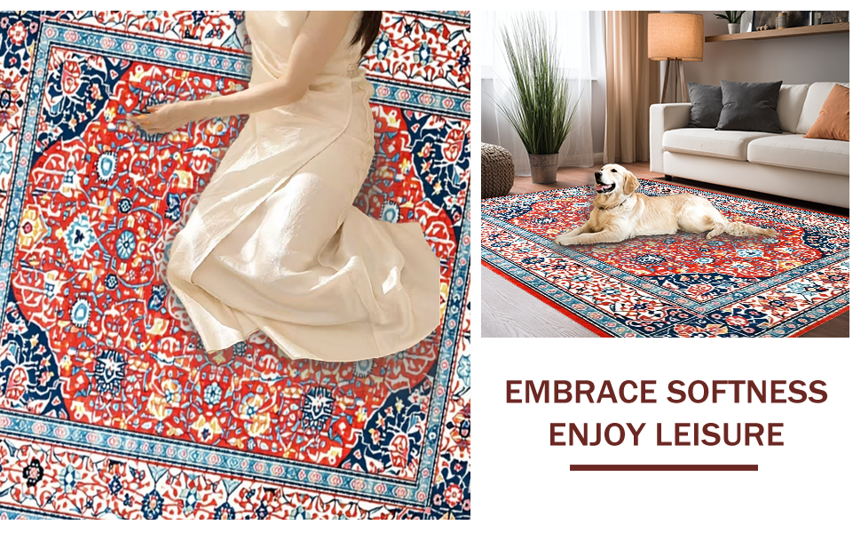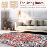 Ultra Soft Area Rug, Non Slip, Stain Resistant, Washable Area Rugs for Living Room, Bedroom, Elegant Coral Blue Abstract Blend(Red) Overview: