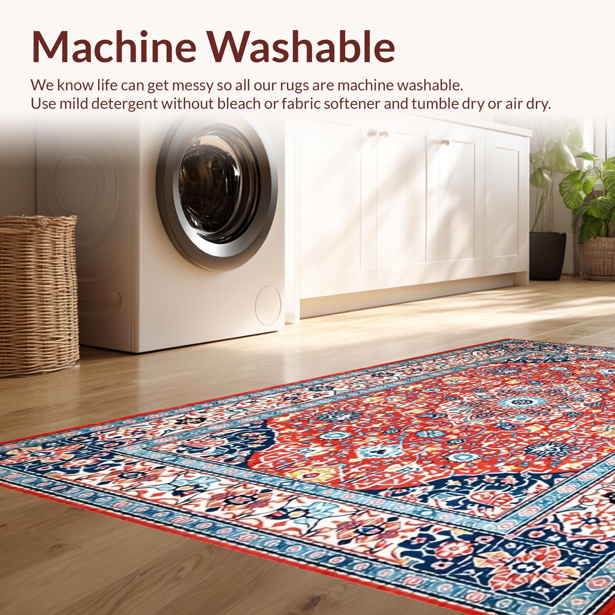 - Machine Washable: Our rugs can be easily thrown in the wash machine.