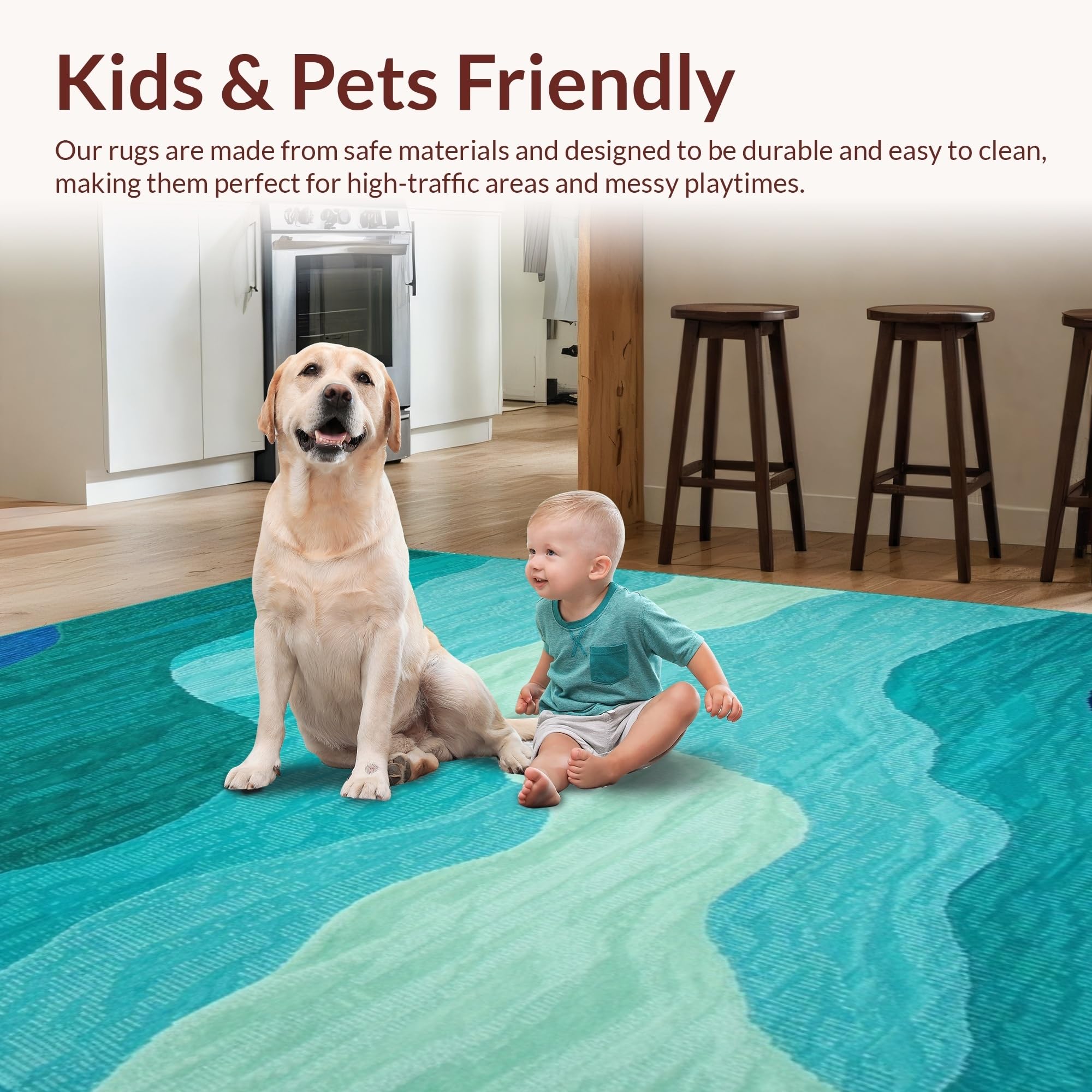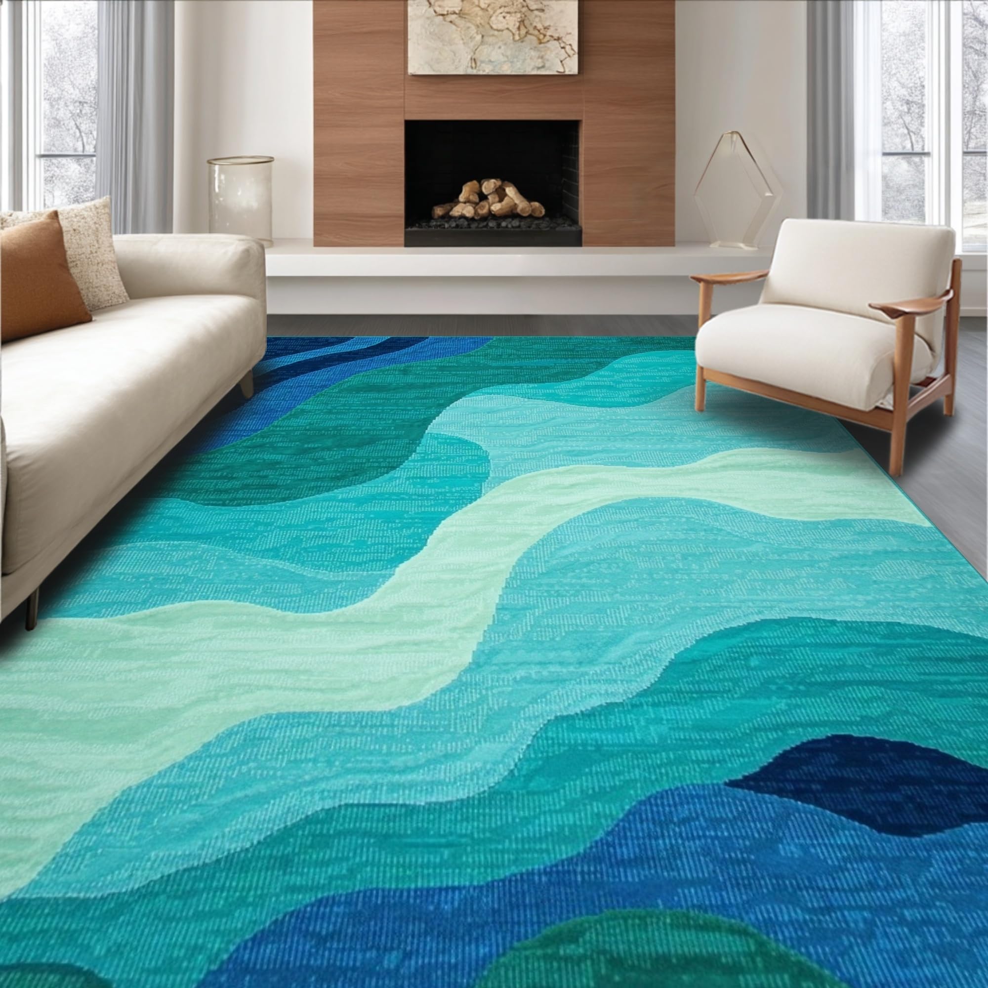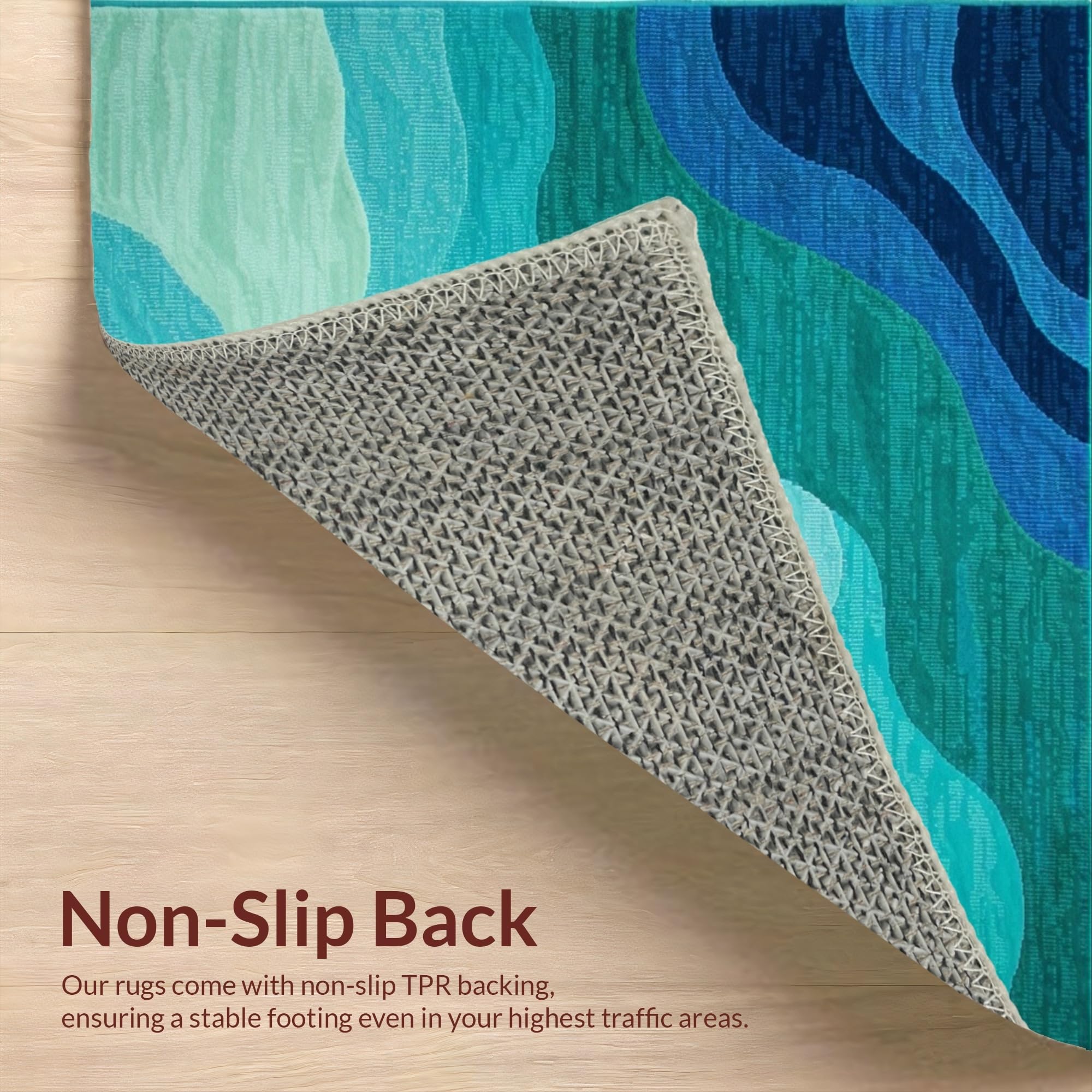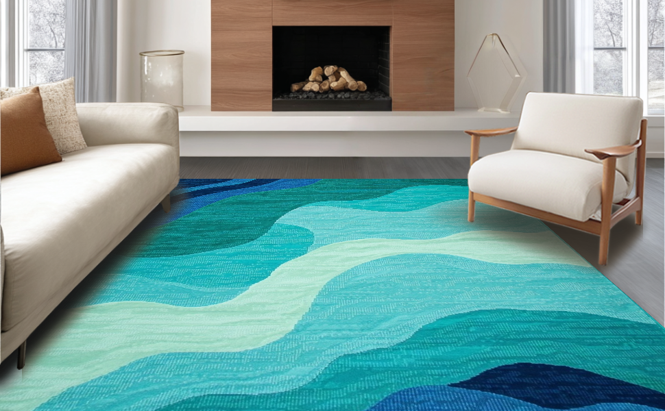 Ultra Soft Area Rug, Non Slip, Stain Resistant, Washable Area Rugs for Living Room, Bedroom, Elegant Coral Reef Illustration(Blue) Overview: