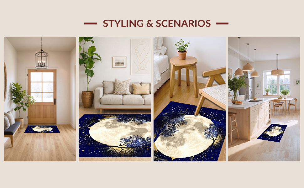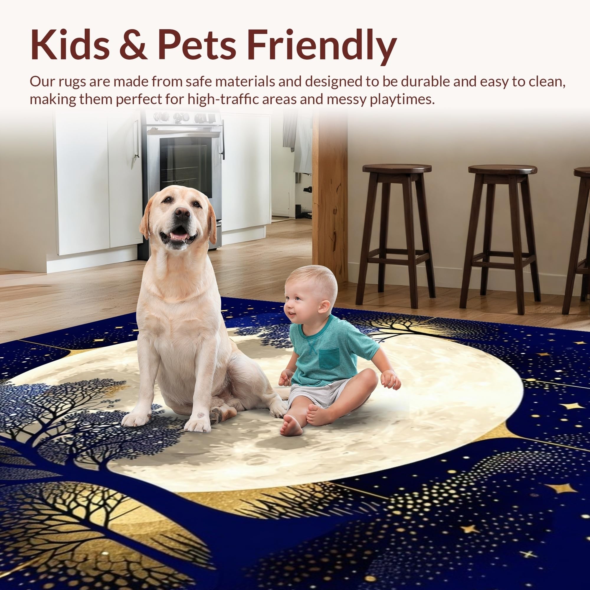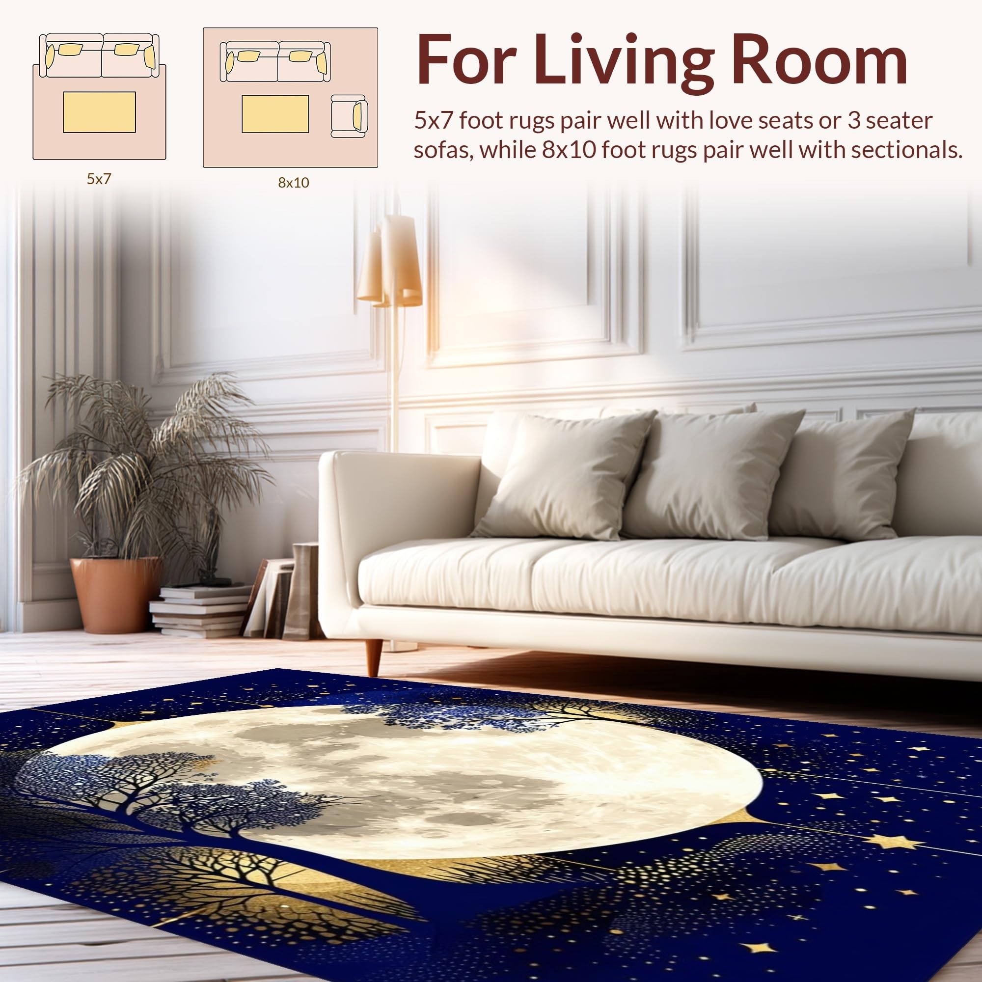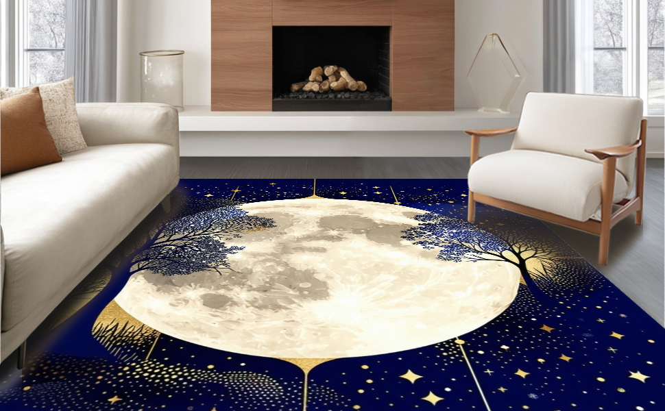 Ultra Soft Area Rug, Non Slip, Stain Resistant, Washable Area Rugs for Living Room, Bedroom, Elegant Cosmic Harmony Design(Blue) Overview: