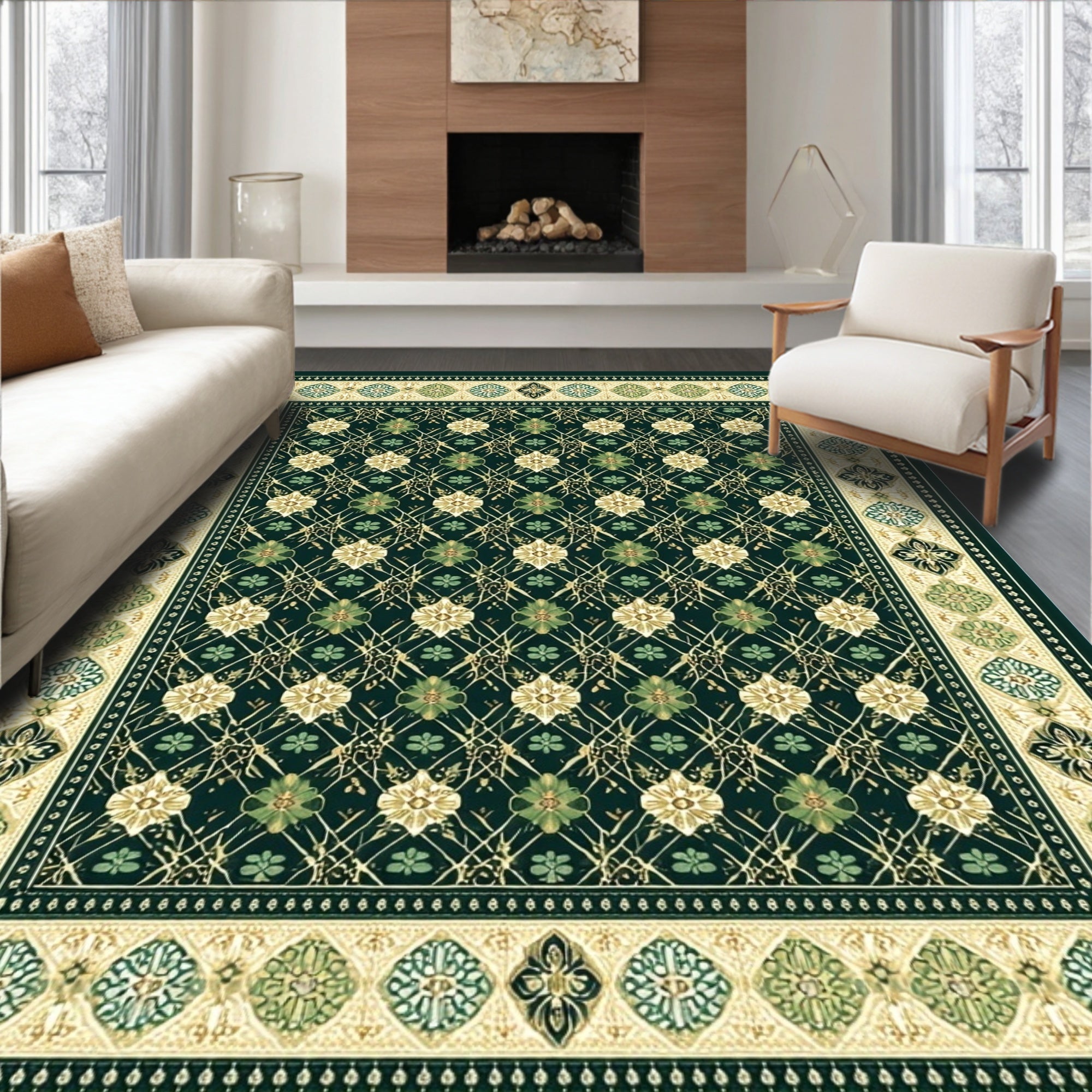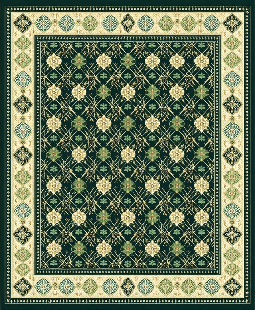 Ultra Soft Area Rug, Non Slip, Stain Resistant, Washable Area Rugs for Living Room, Bedroom, Elegant Courtyard Collection Accent with Verdant Garden Lattice(Green) Overview: