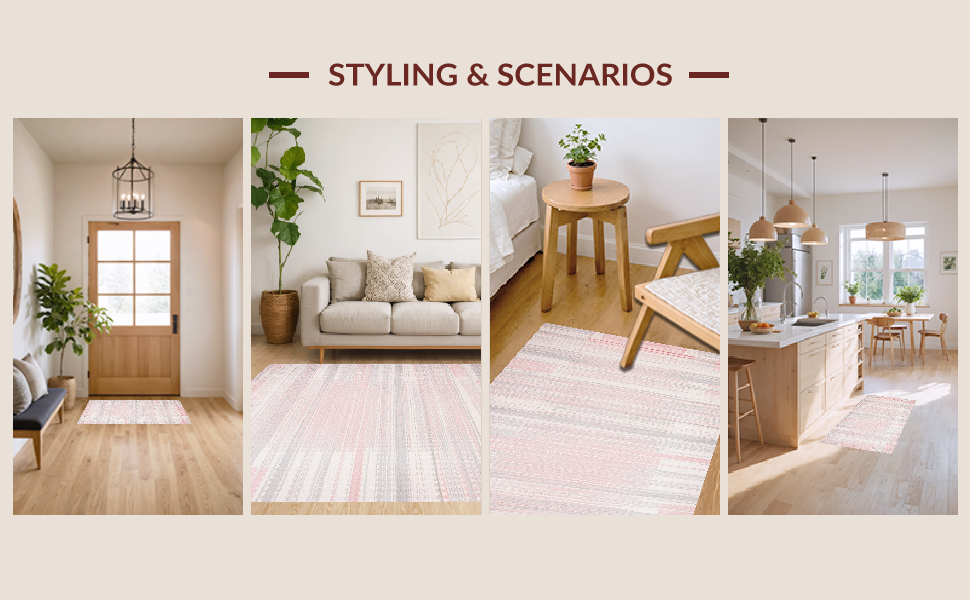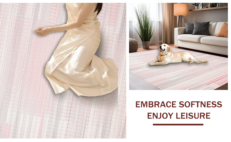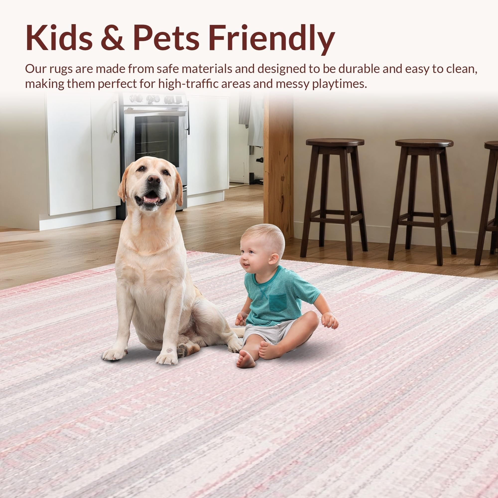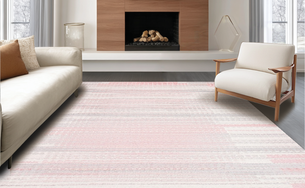 Ultra Soft Area Rug, Non Slip, Stain Resistant, Washable Area Rugs for Living Room, Bedroom, Elegant Cozy Blush Tones(Pink) Overview: