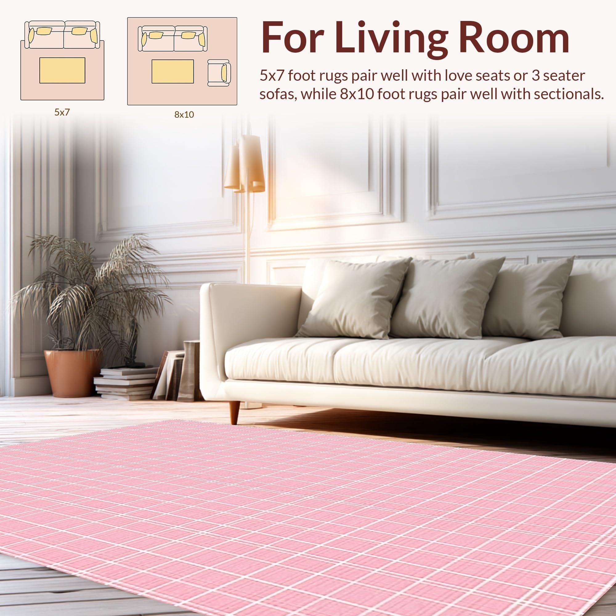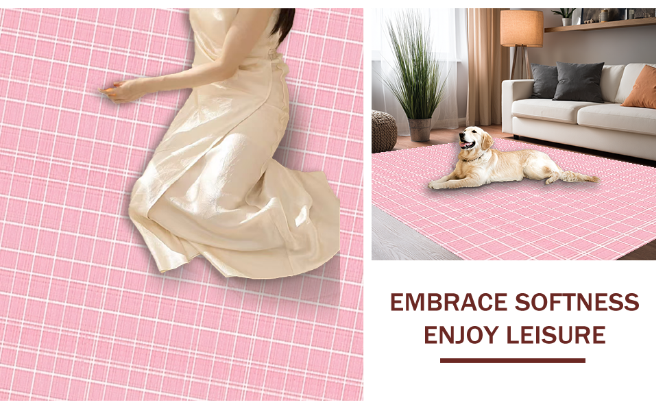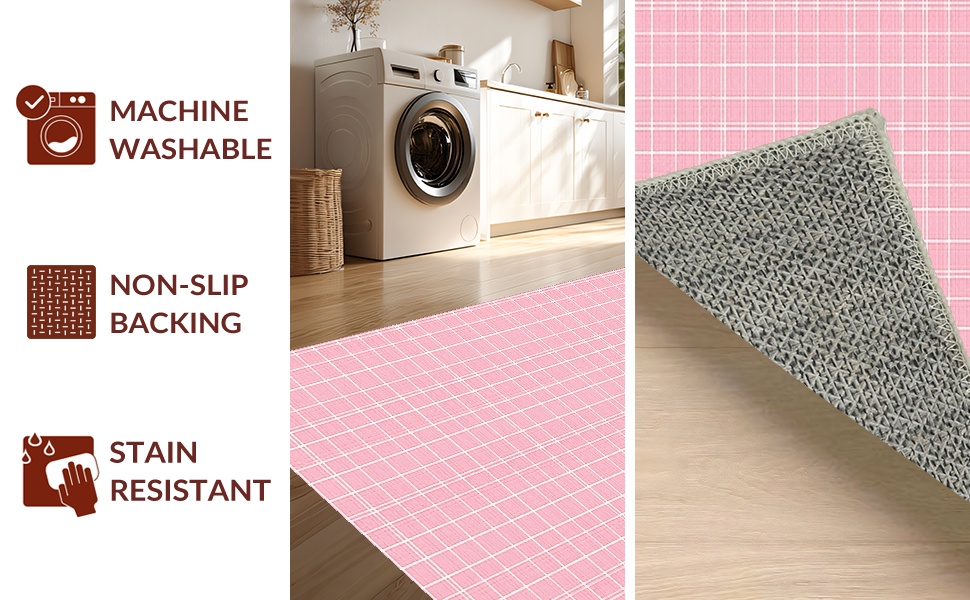 Ultra Soft Area Rug, Non Slip, Stain Resistant, Washable Area Rugs for Living Room, Bedroom, Elegant Cozy Checkerboard Aesthetic(Pink) Overview: