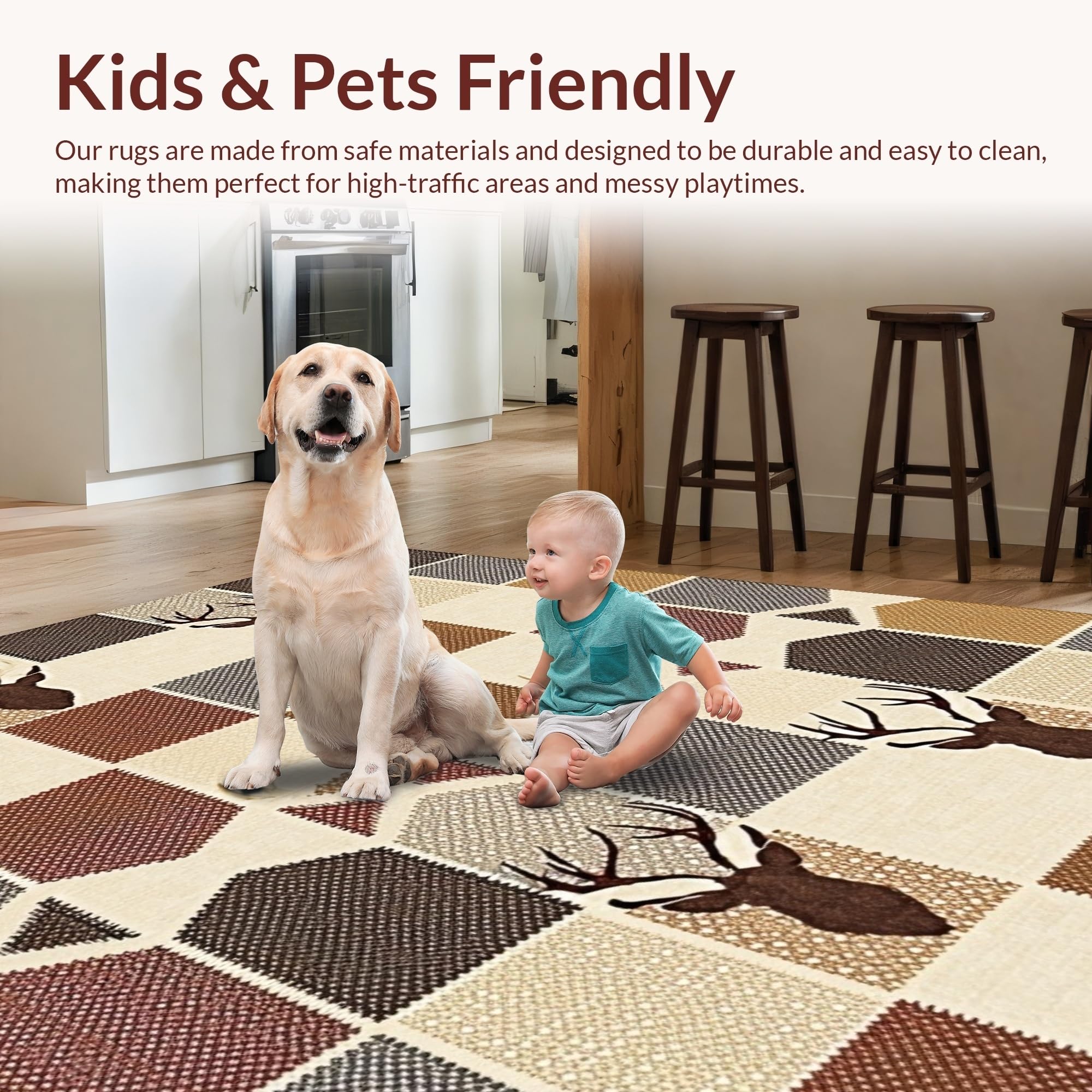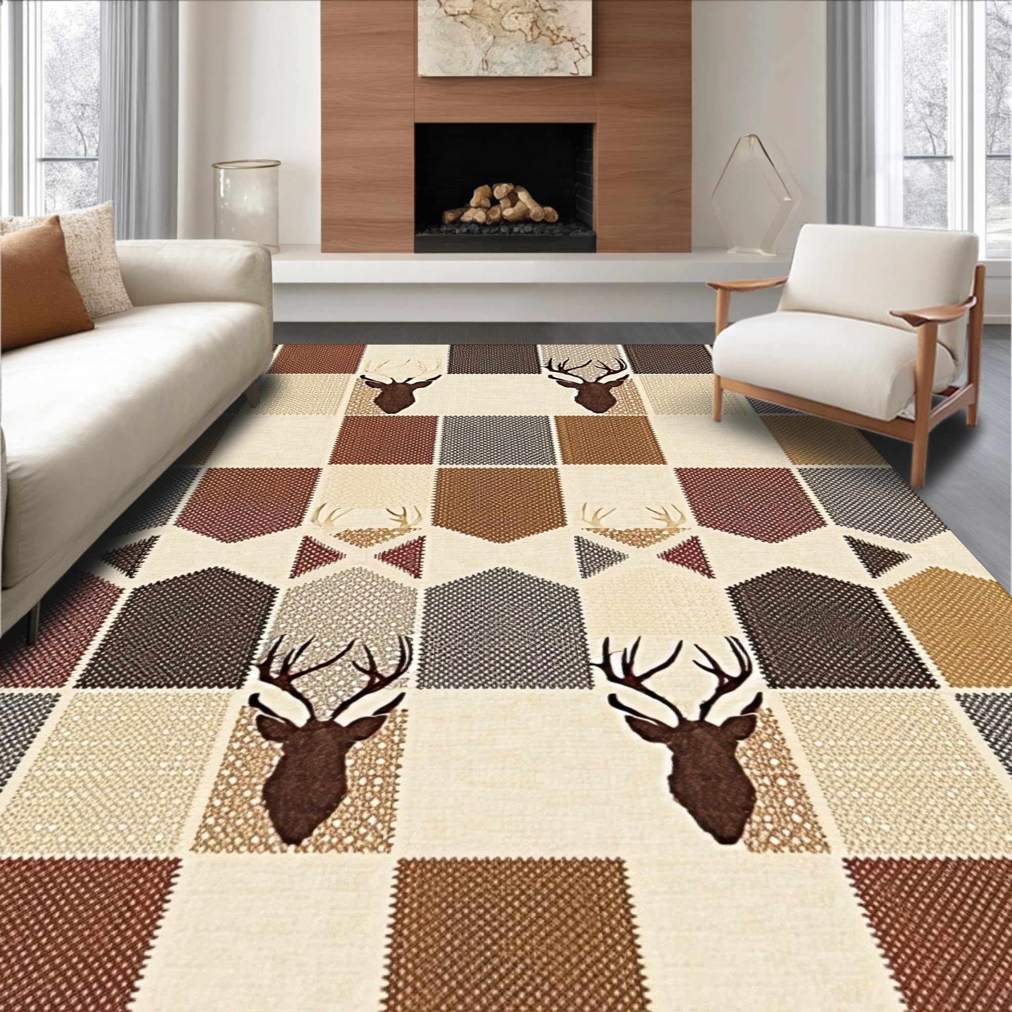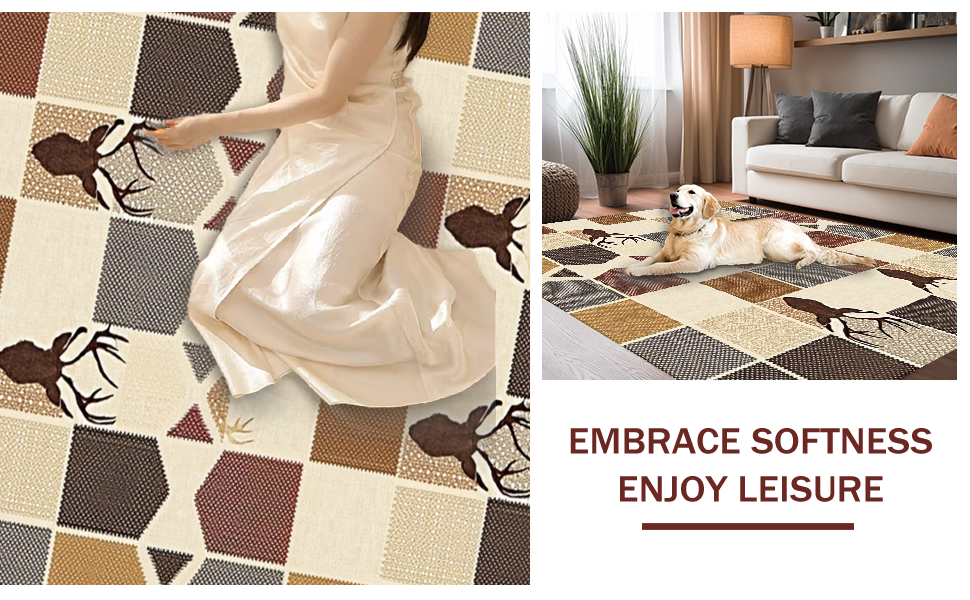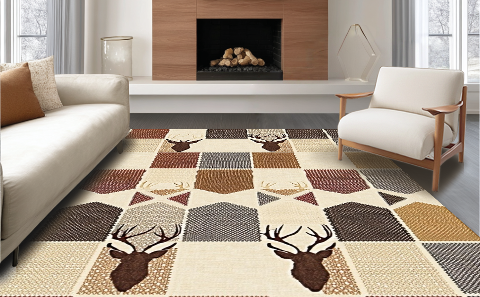 Ultra Soft Area Rug, Non Slip, Stain Resistant, Washable Area Rugs for Living Room, Bedroom, Elegant Cream and Brown Fusion(Beige) Overview: