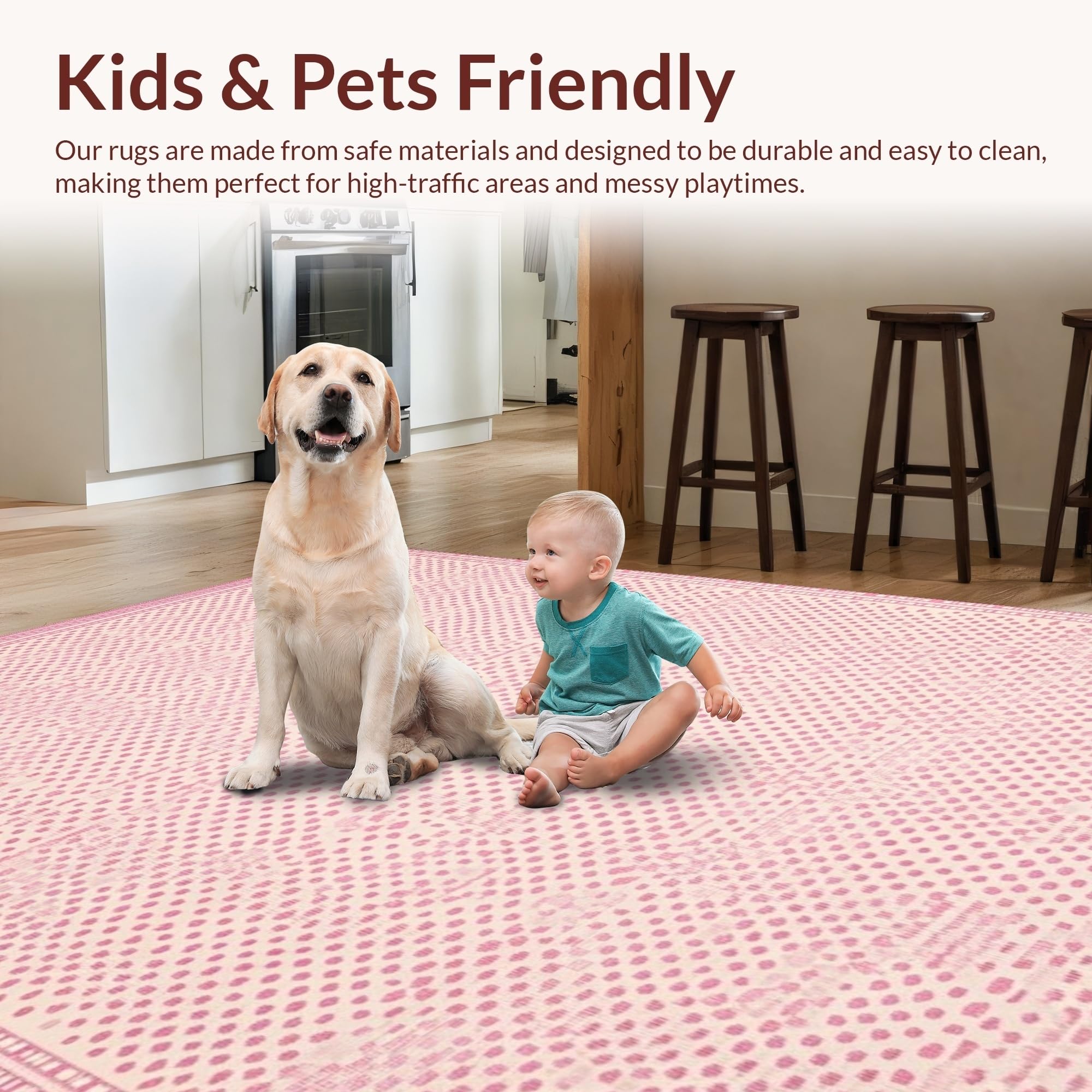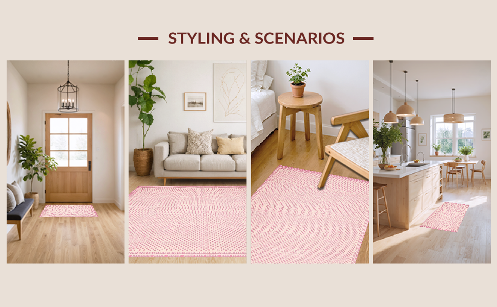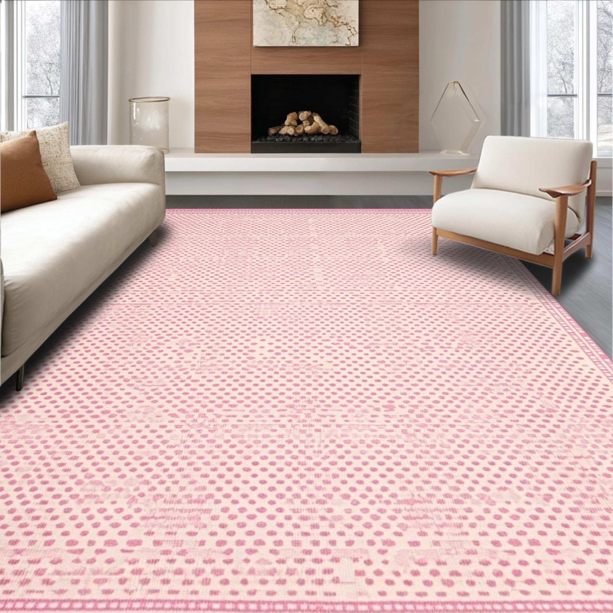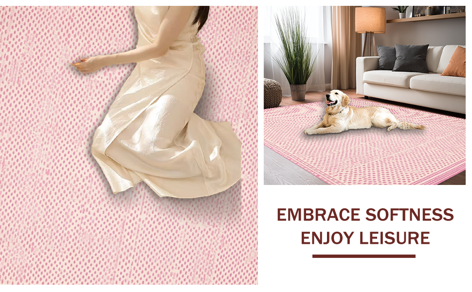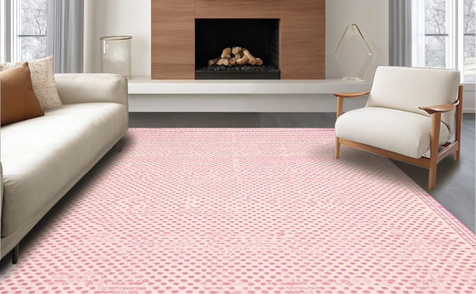 Ultra Soft Area Rug, Non Slip, Stain Resistant, Washable Area Rugs for Living Room, Bedroom, Elegant Cream and Pink Palette(Pink) Overview:
