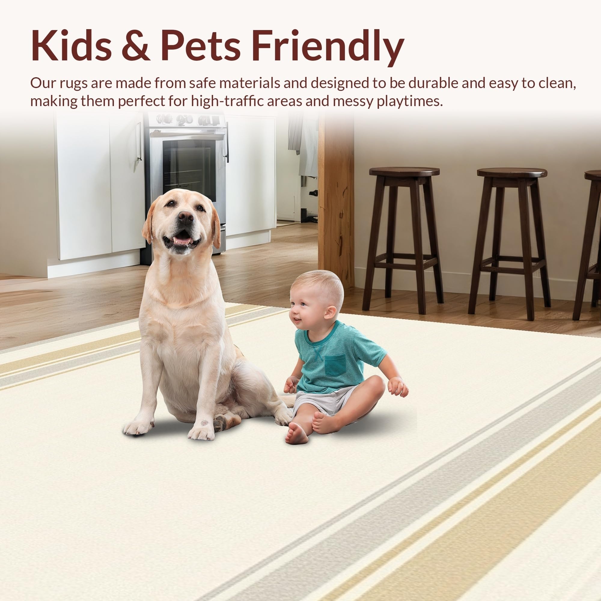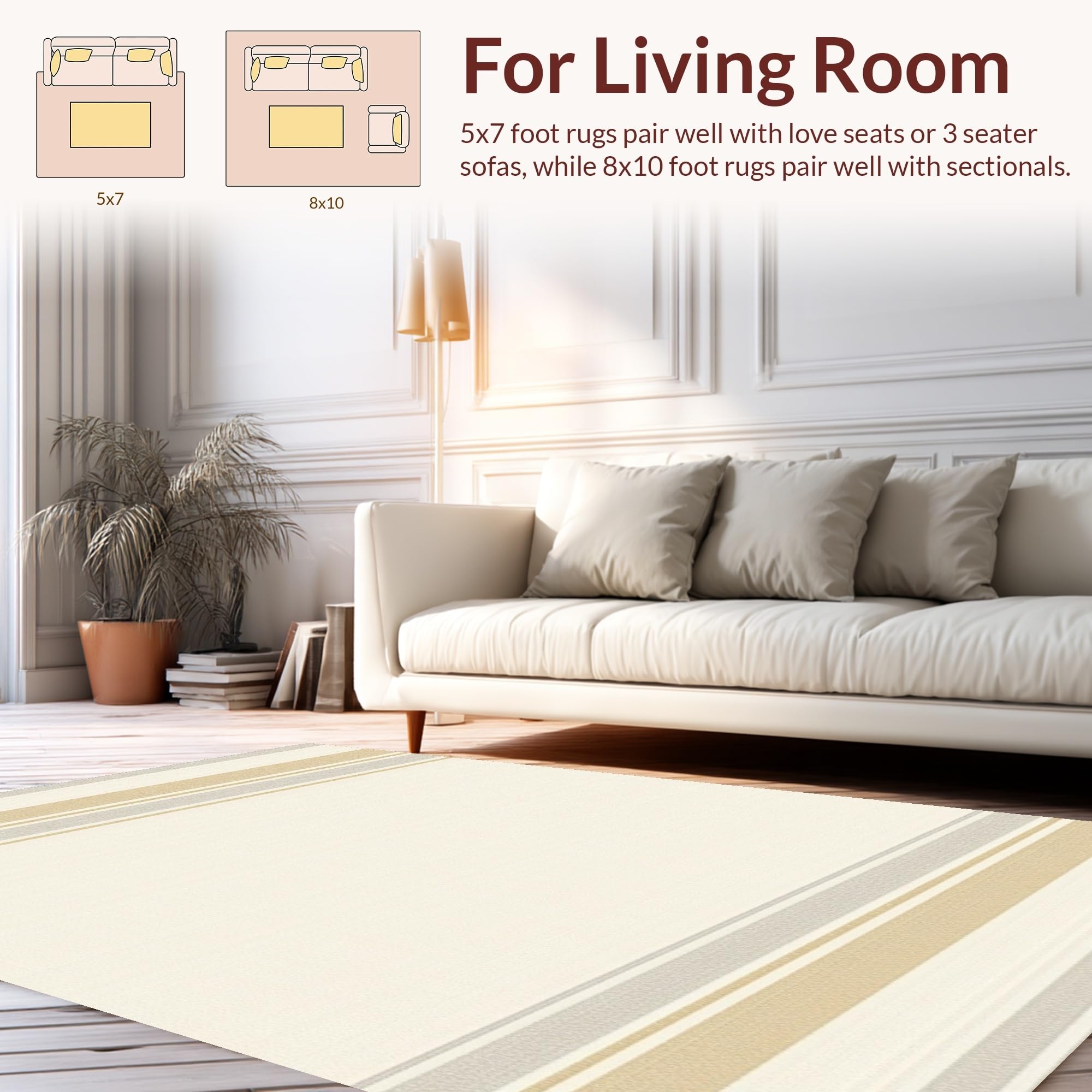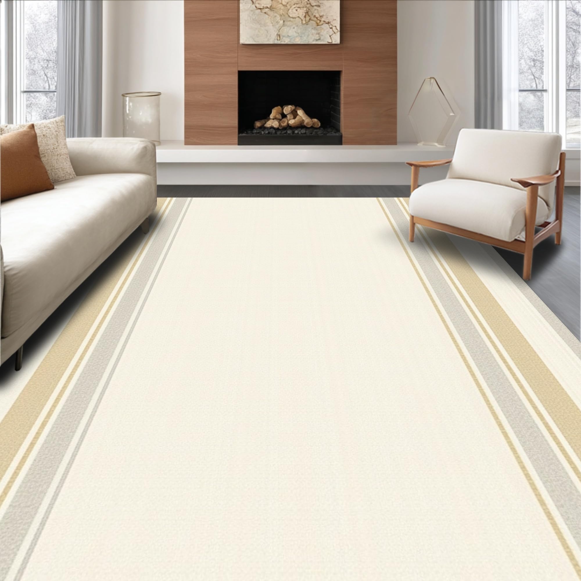 Ultra Soft Area Rug, Non Slip, Stain Resistant, Washable Area Rugs for Living Room, Bedroom, Elegant Cream & Beige Striped Area Modern Lines For Your Home(Beige) Overview: