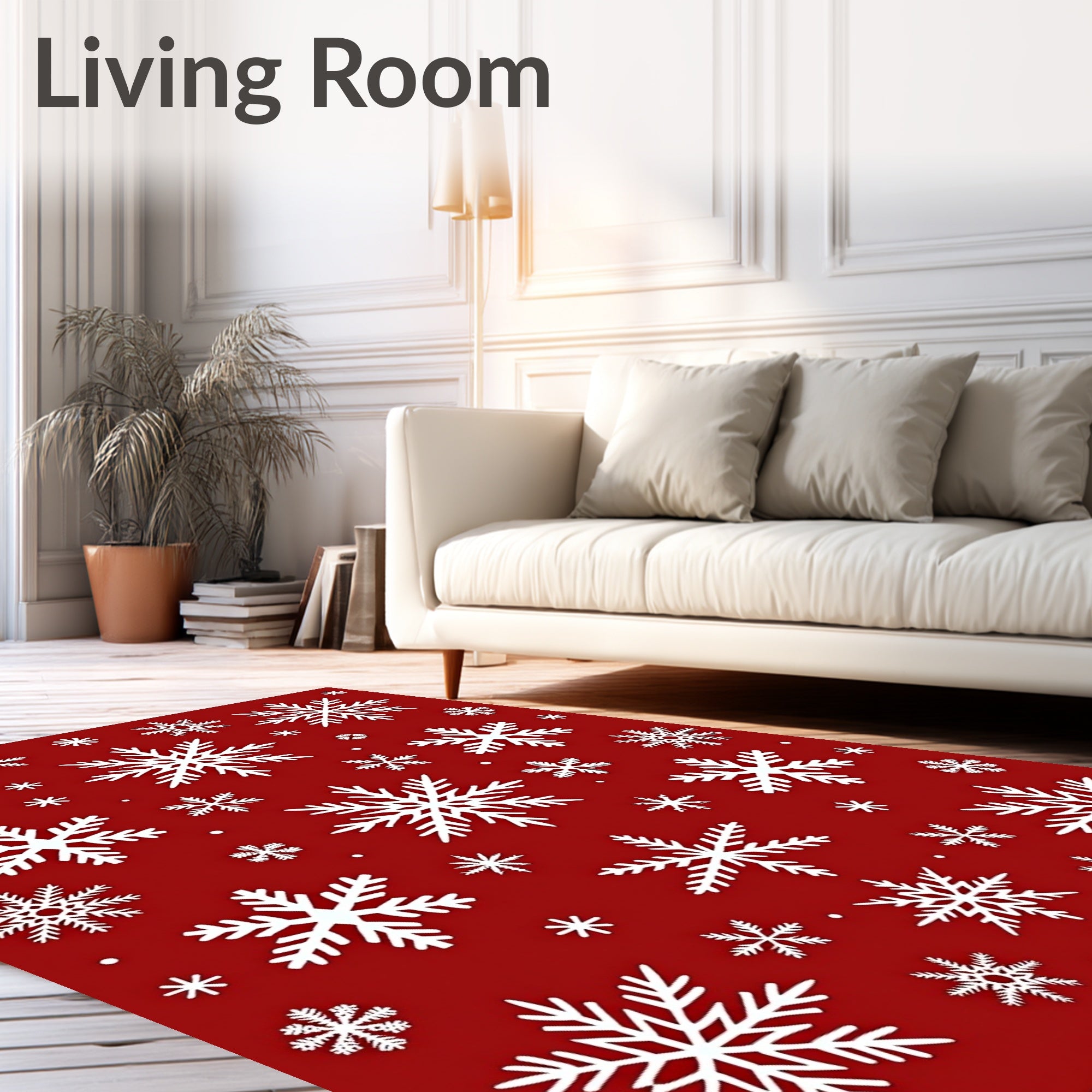 Ultra Soft Area Rug, Non Slip, Stain Resistant, Washable Area Rugs for Living Room, Bedroom, Elegant Crystal Flurry Seasonal Decorative Pathway Embellishment(Red) Overview: