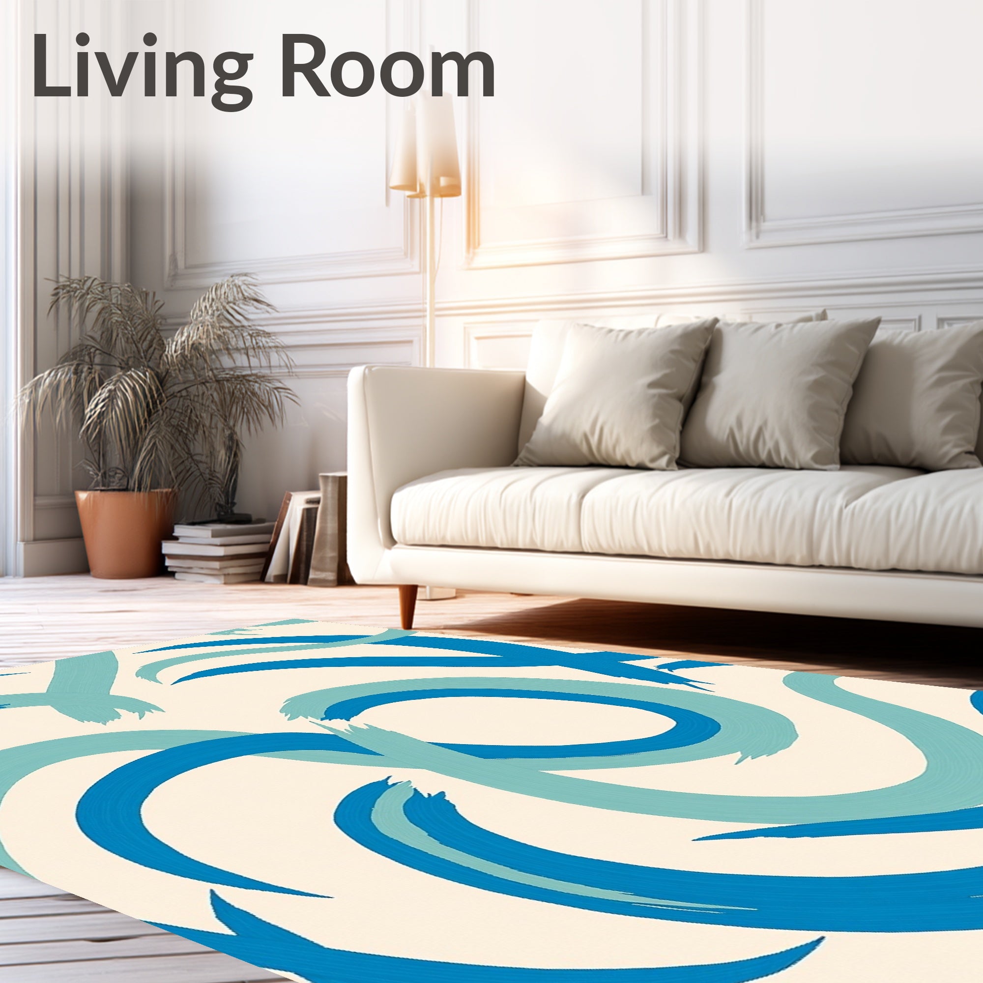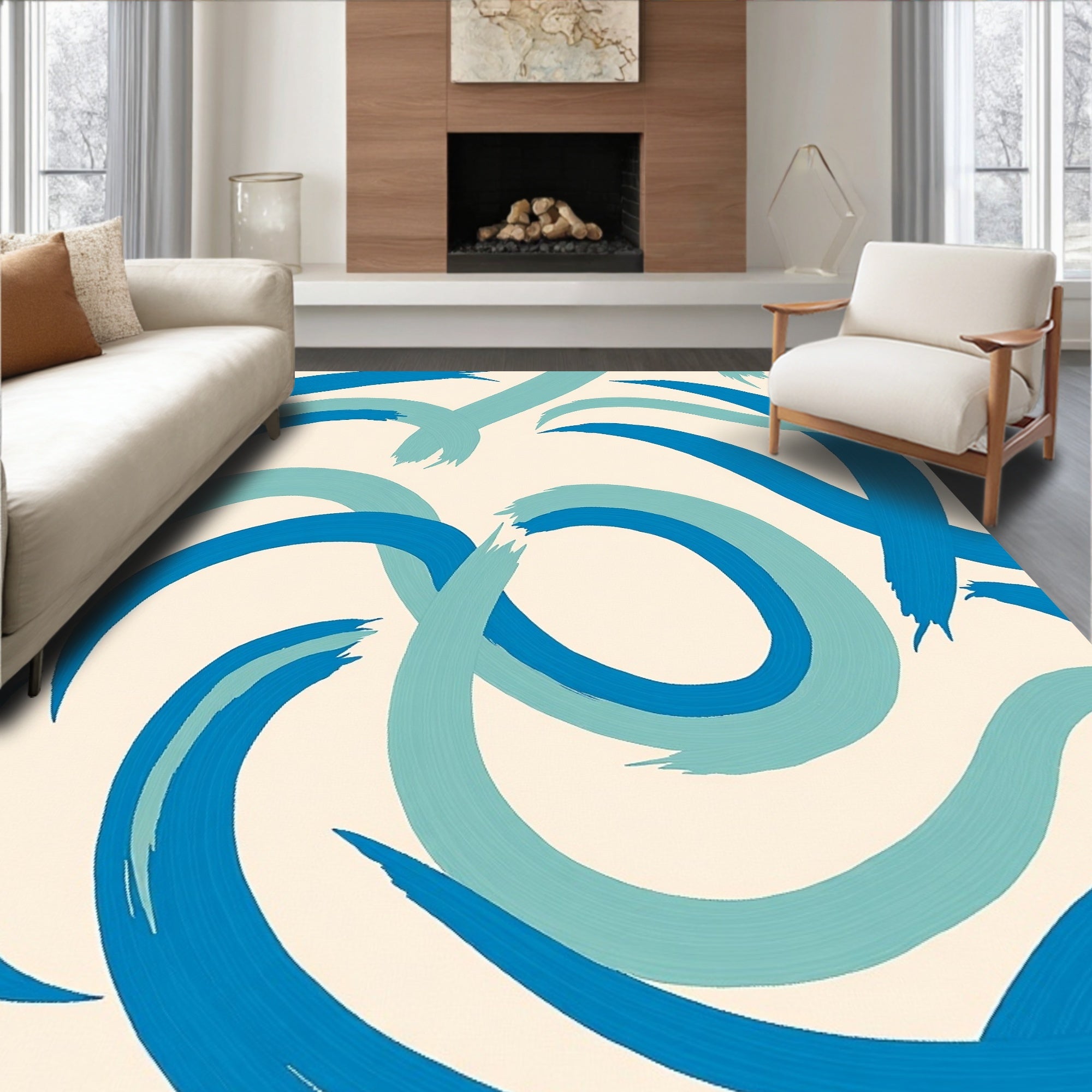 Ultra Soft Area Rug, Non Slip, Stain Resistant, Washable Area Rugs for Living Room, Bedroom, Elegant Curved Strokes Brushwork Artistic Expressive Decorative(Beige) Overview: