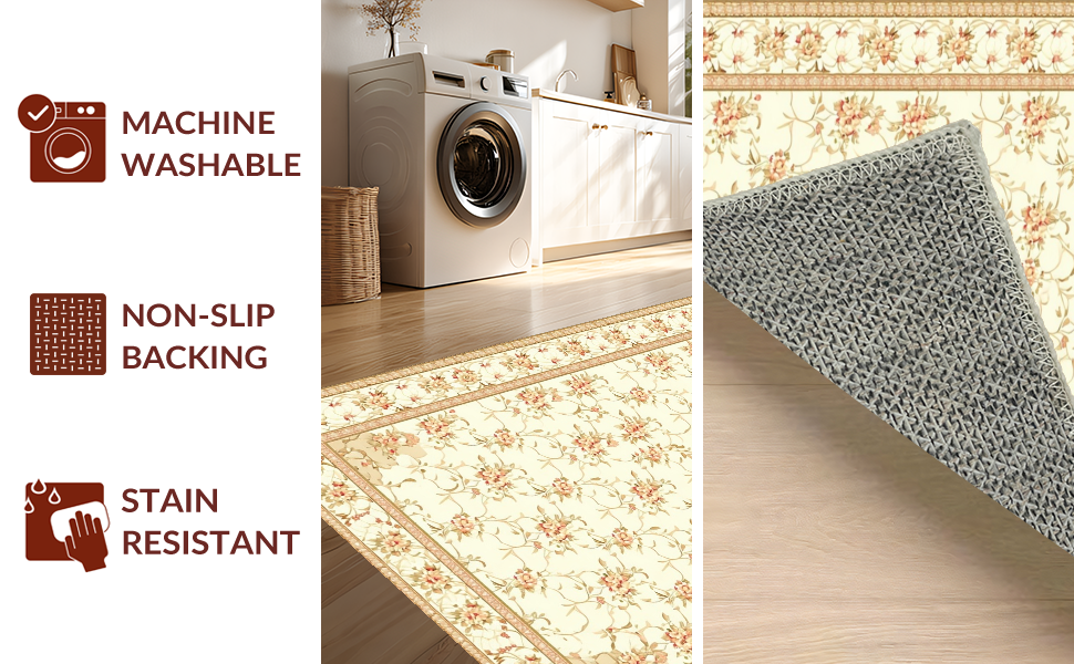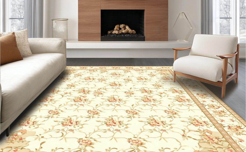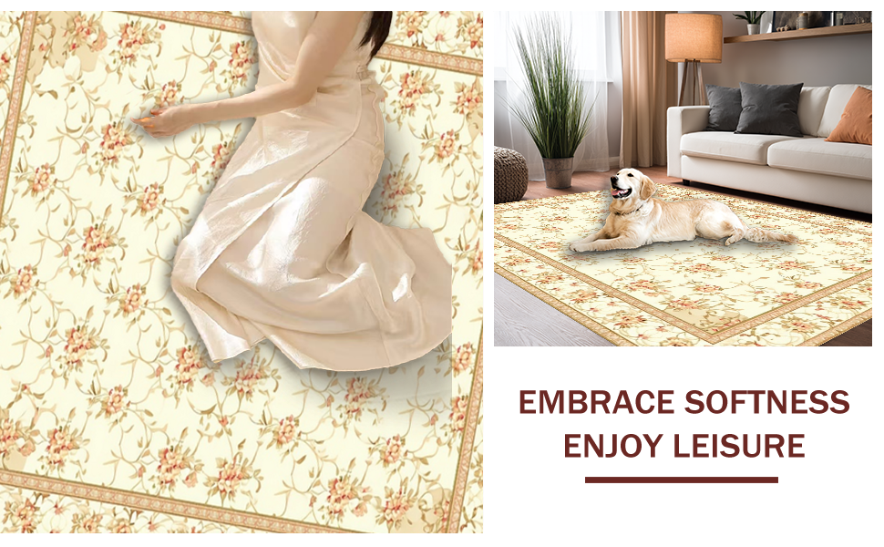 Ultra Soft Area Rug, Non Slip, Stain Resistant, Washable Area Rugs for Living Room, Bedroom, Elegant Curvilinear Floral Flourish(Beige) Overview: