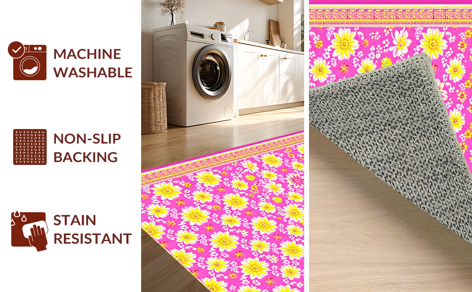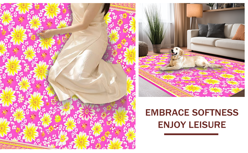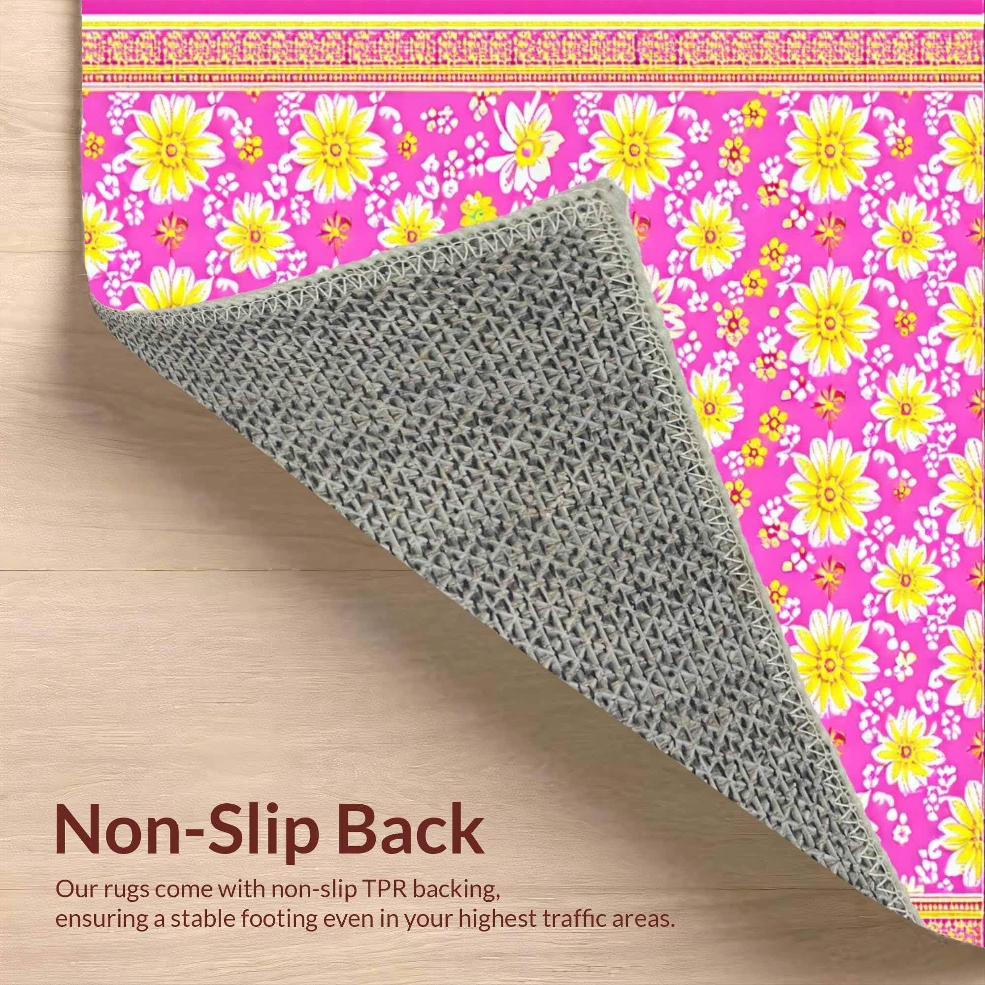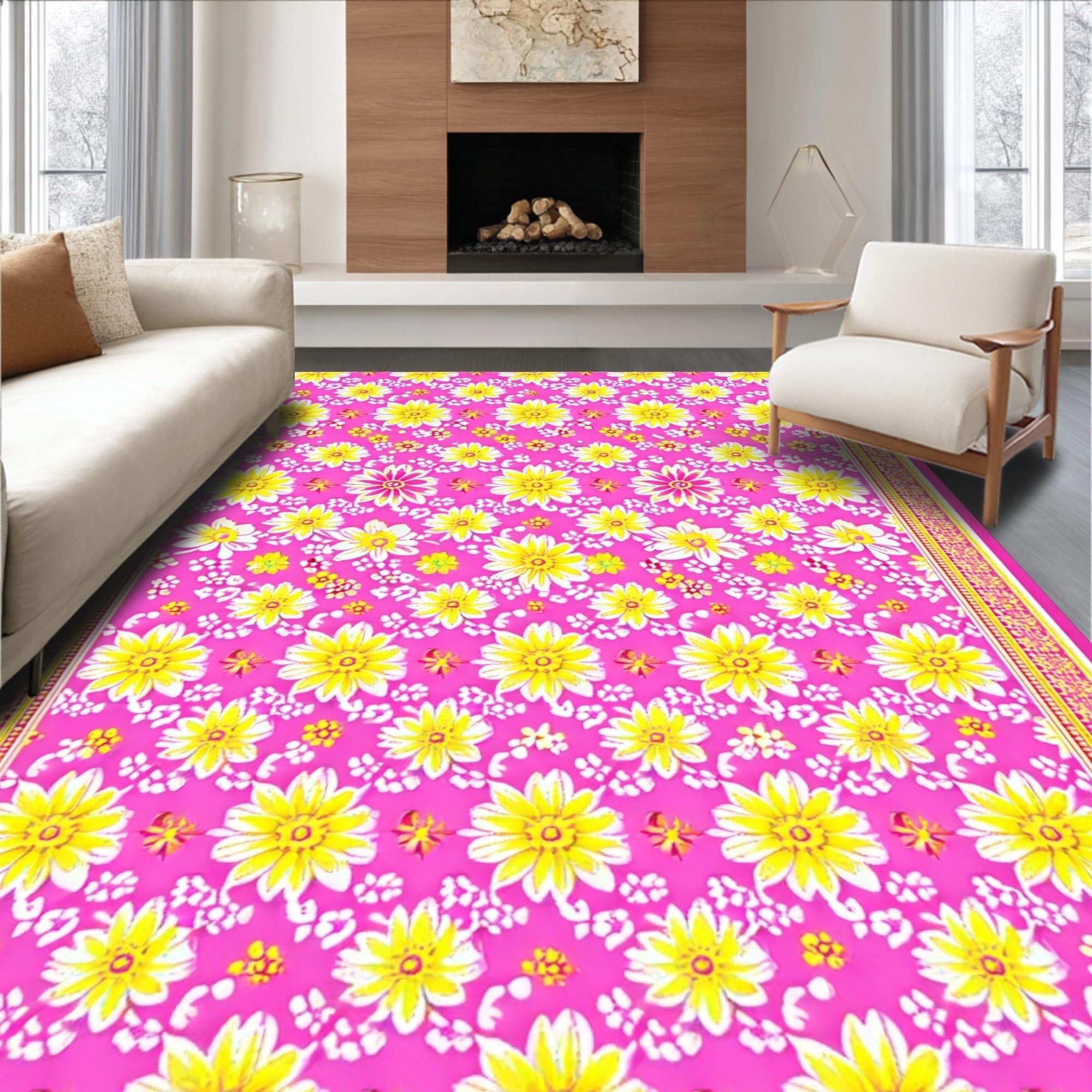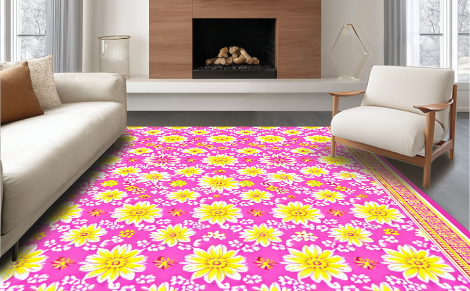 Ultra Soft Area Rug, Non Slip, Stain Resistant, Washable Area Rugs for Living Room, Bedroom, Elegant Daisy Print Serenity(Pink) Overview:
