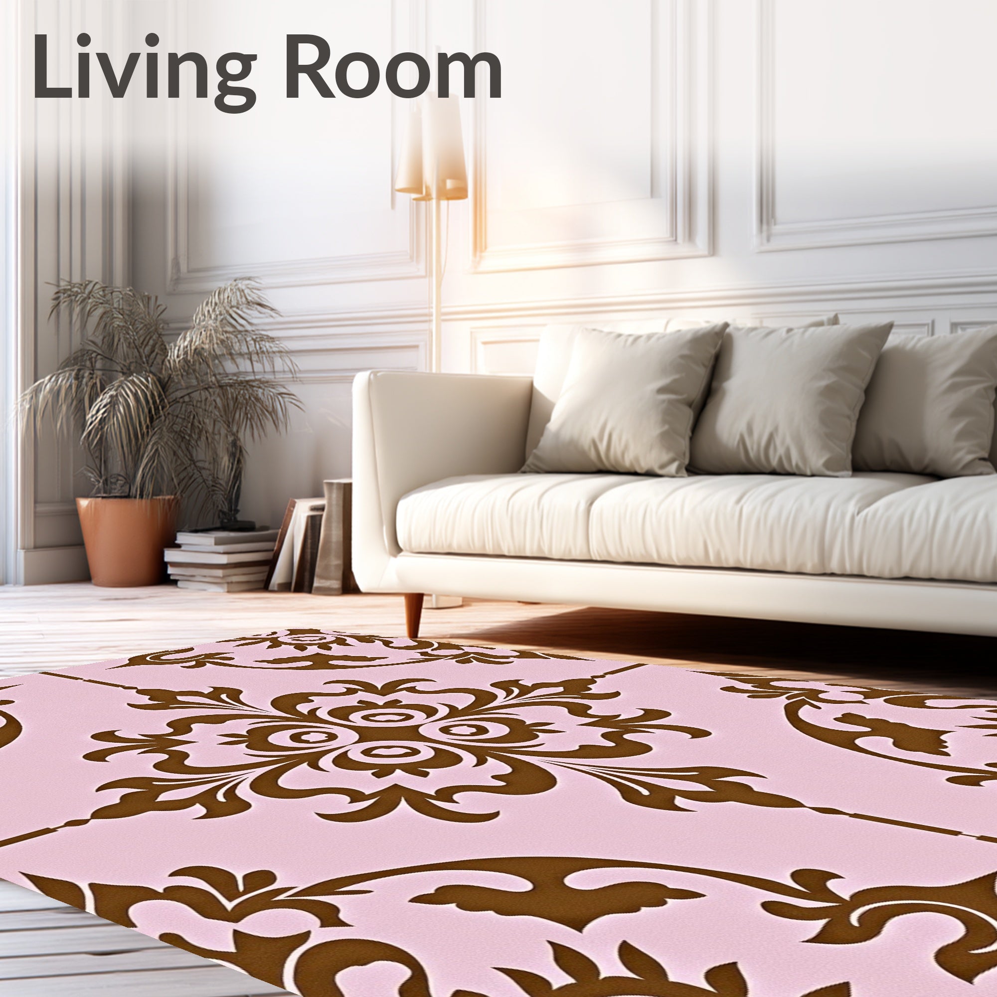 Ultra Soft Area Rug, Non Slip, Stain Resistant, Washable Area Rugs for Living Room, Bedroom, Elegant Damask Antiqued Weathered Heirloom Refined Decorative(Pink) Overview: