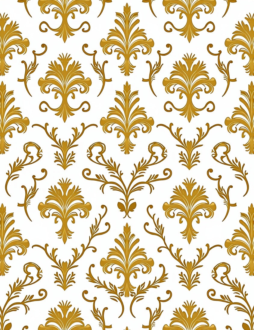 Elegant Damask Motif with Luxurious Gold Embellishments and Curved Flourishes(Gold)