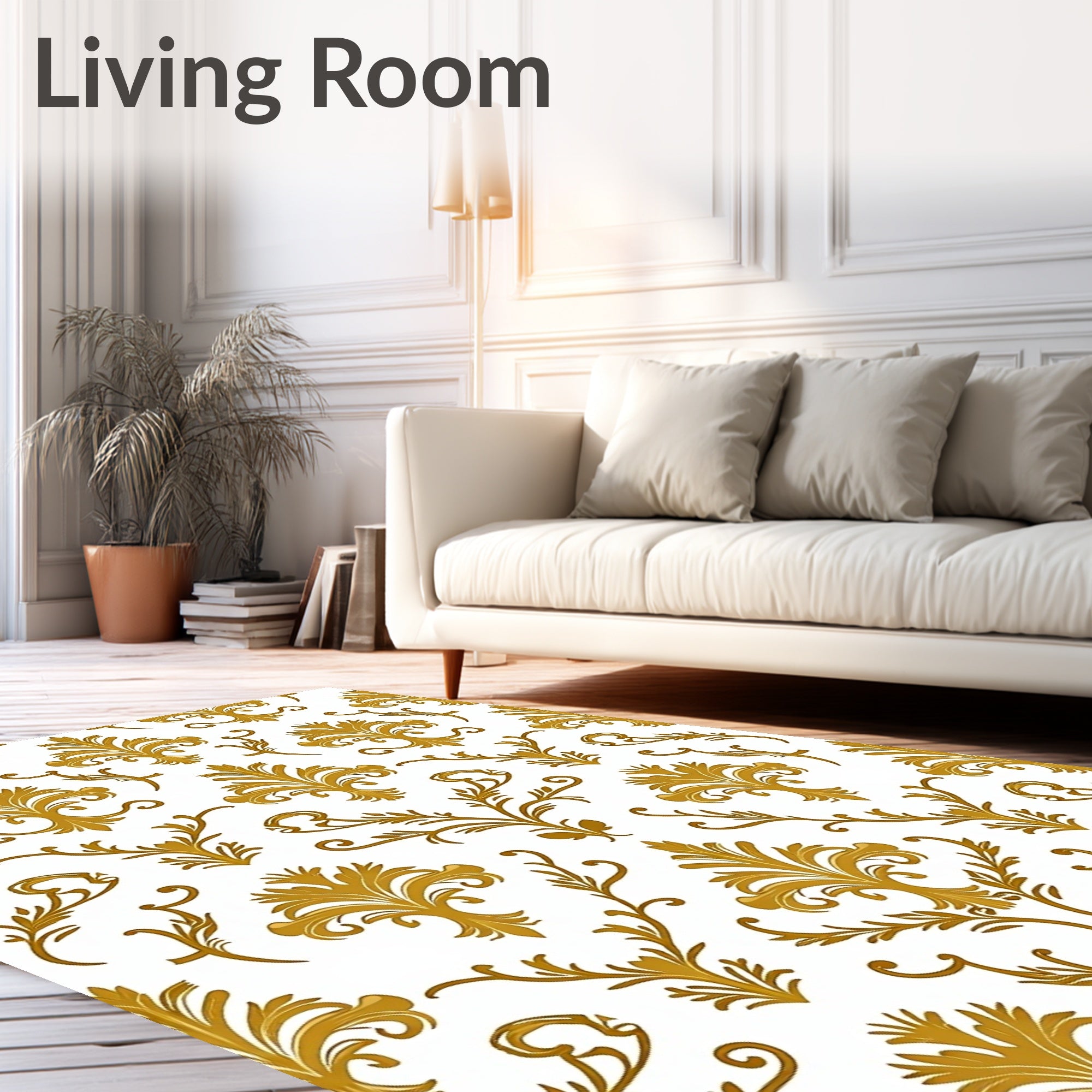 Flatwoven High Traffic Area Rug, Elegant Damask Motif with Luxurious Gold Embellishments and Curved Flourishes, Non Slip, Stain Resistant, Washable Area Rugs for Living Room, Bedroom (Gold) Overview: