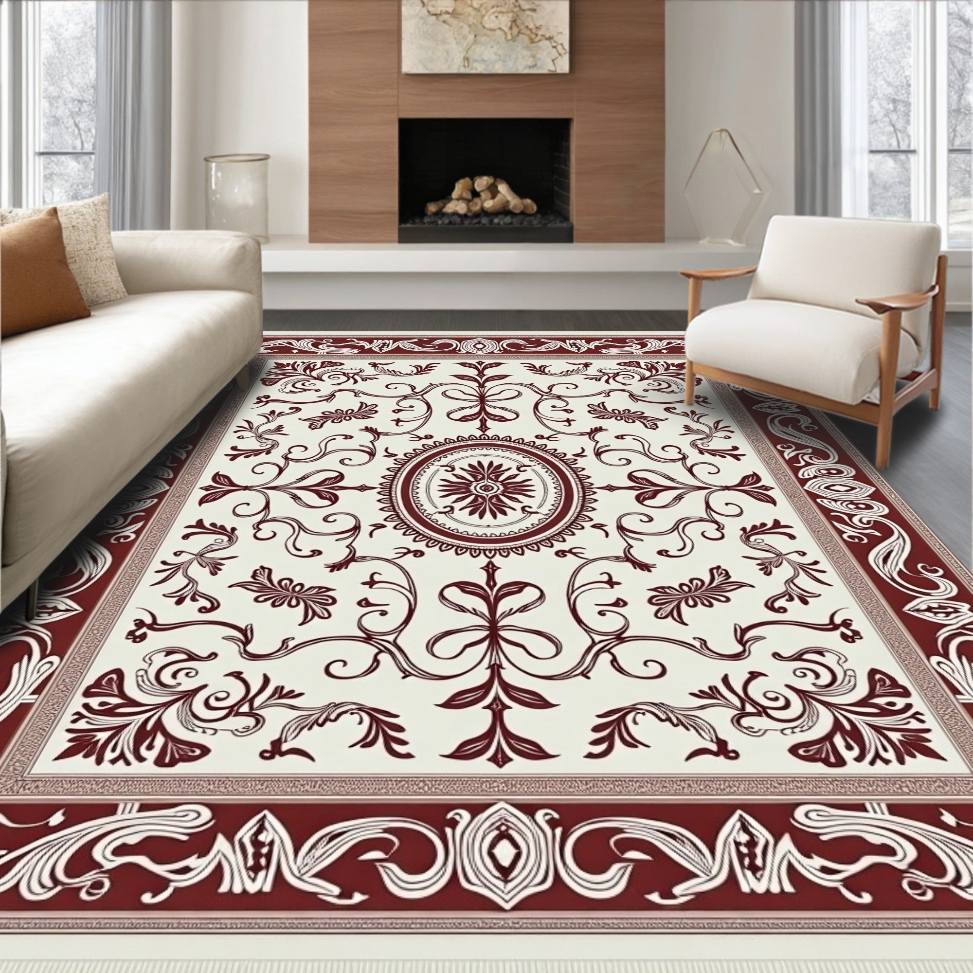 Flatwoven High Traffic Area Rug, Elegant Damask Scrollwork with Intertwined Leafy Vines and Flair, Non Slip, Stain Resistant, Washable Area Rugs for Living Room, Bedroom (Brown) Overview: