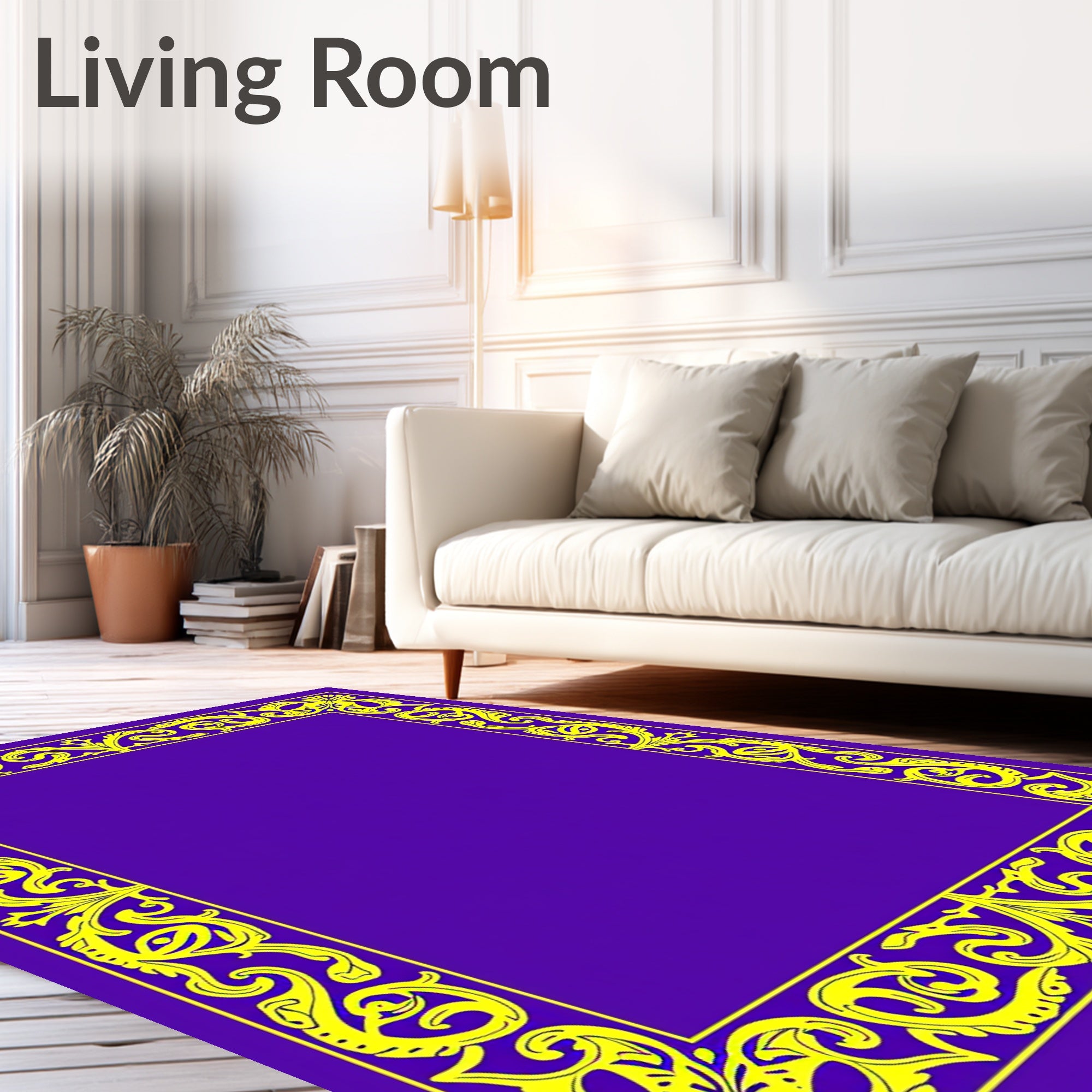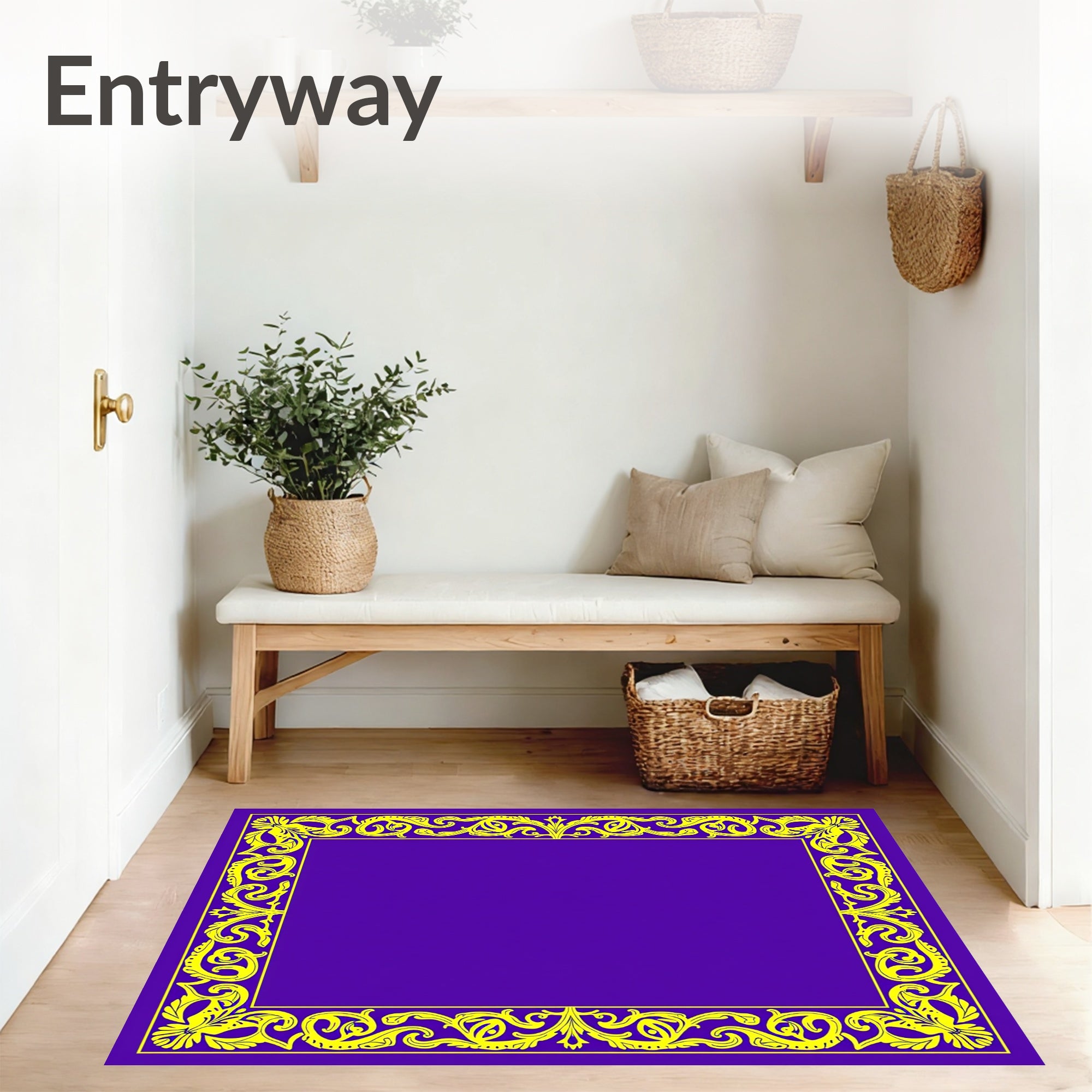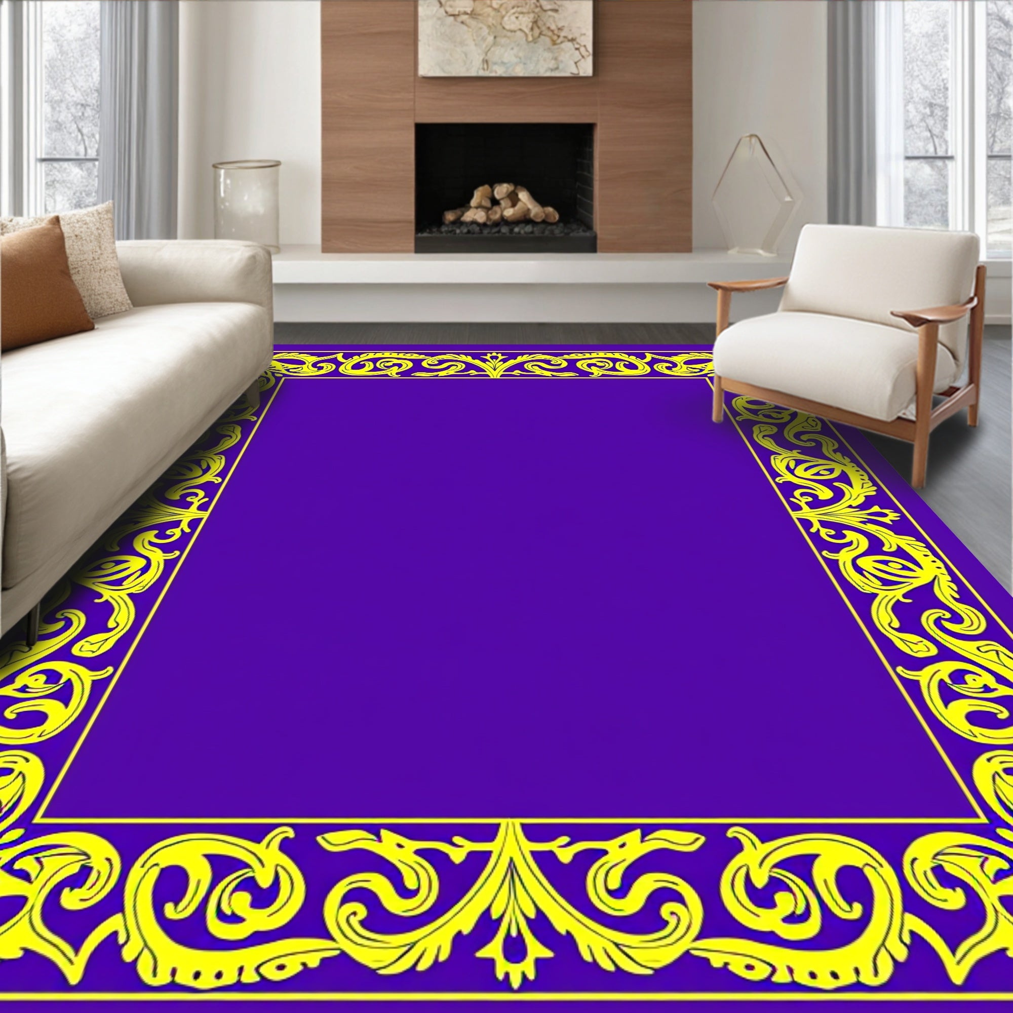 Ultra Soft Area Rug, Non Slip, Stain Resistant, Washable Area Rugs for Living Room, Bedroom, Elegant Damask Vintage Inspired Ornamental Jacquard(Purple) Overview: