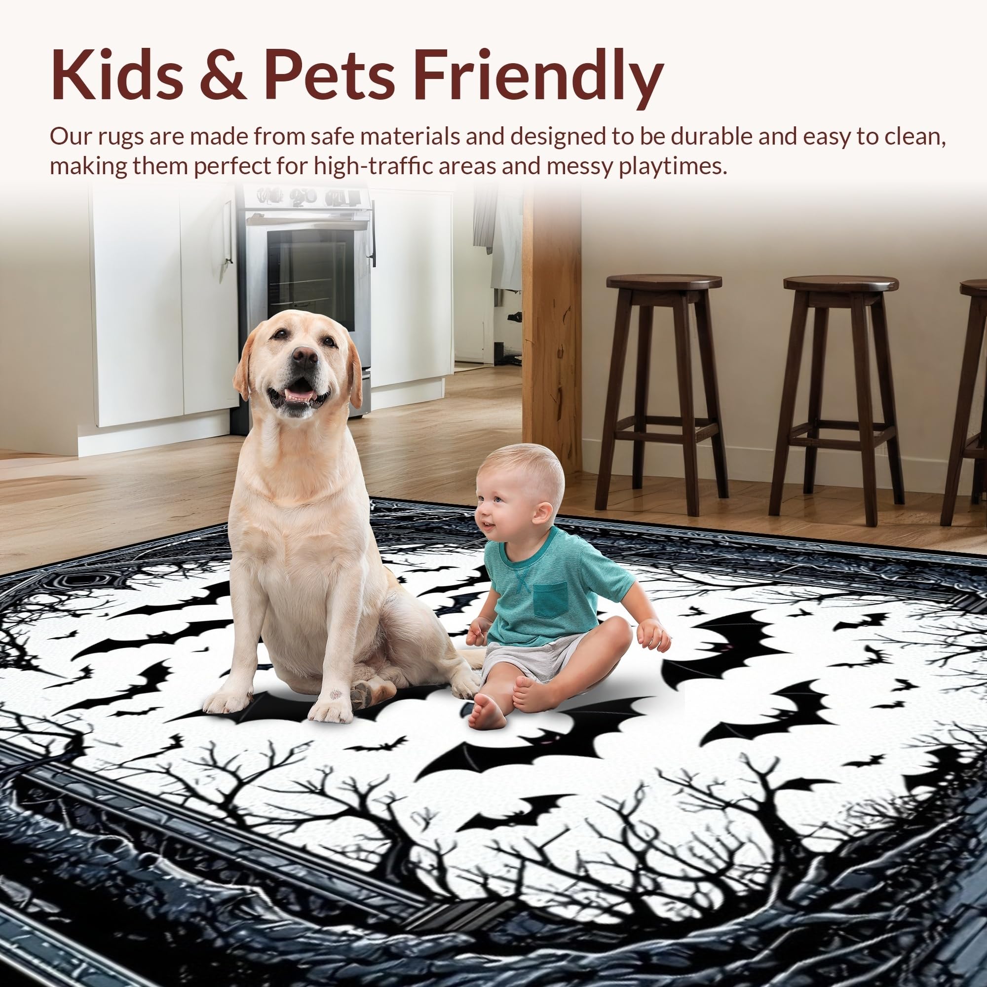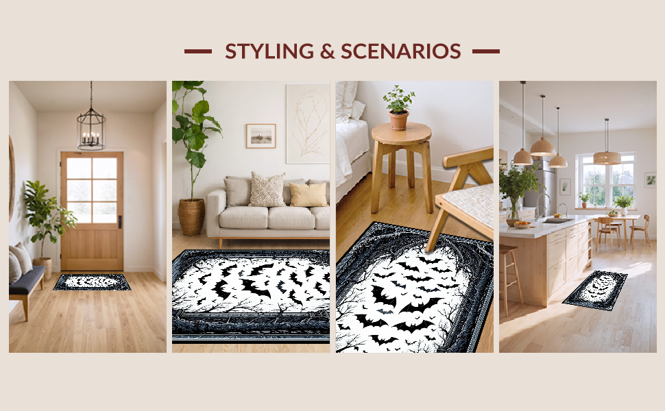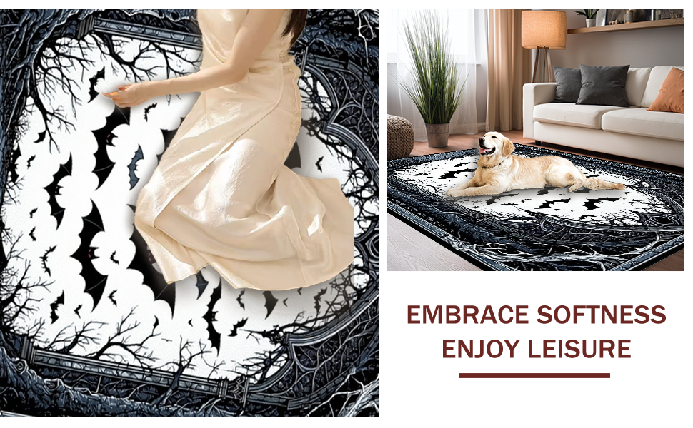Ultra Soft Area Rug, Non Slip, Stain Resistant, Washable Area Rugs for Living Room, Bedroom, Elegant Dark Aesthetic Rug(Black) Overview: