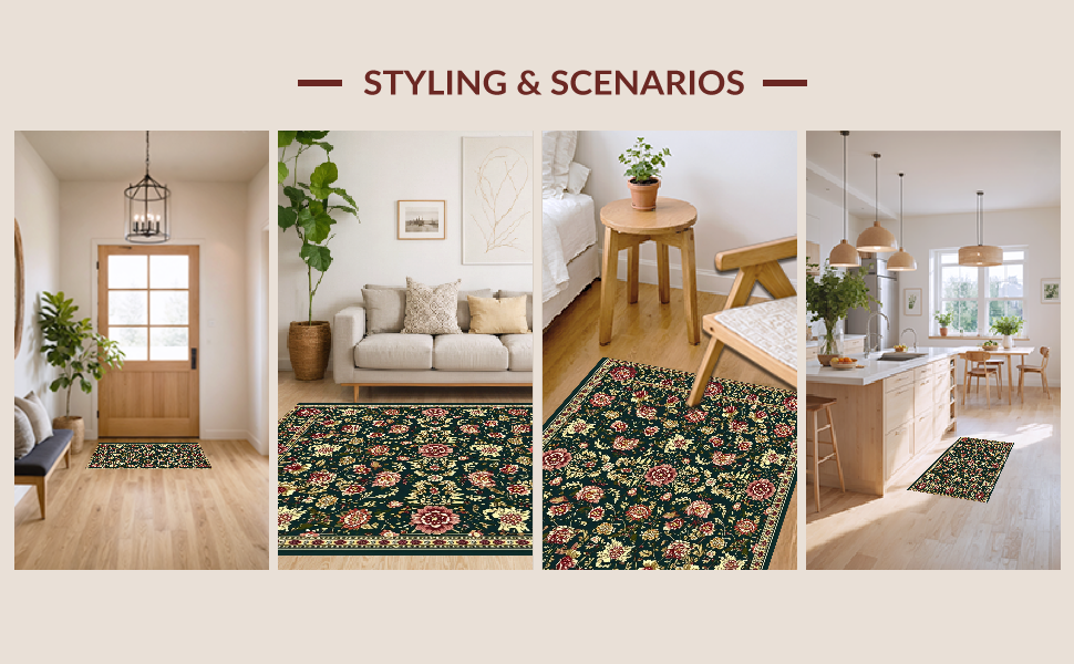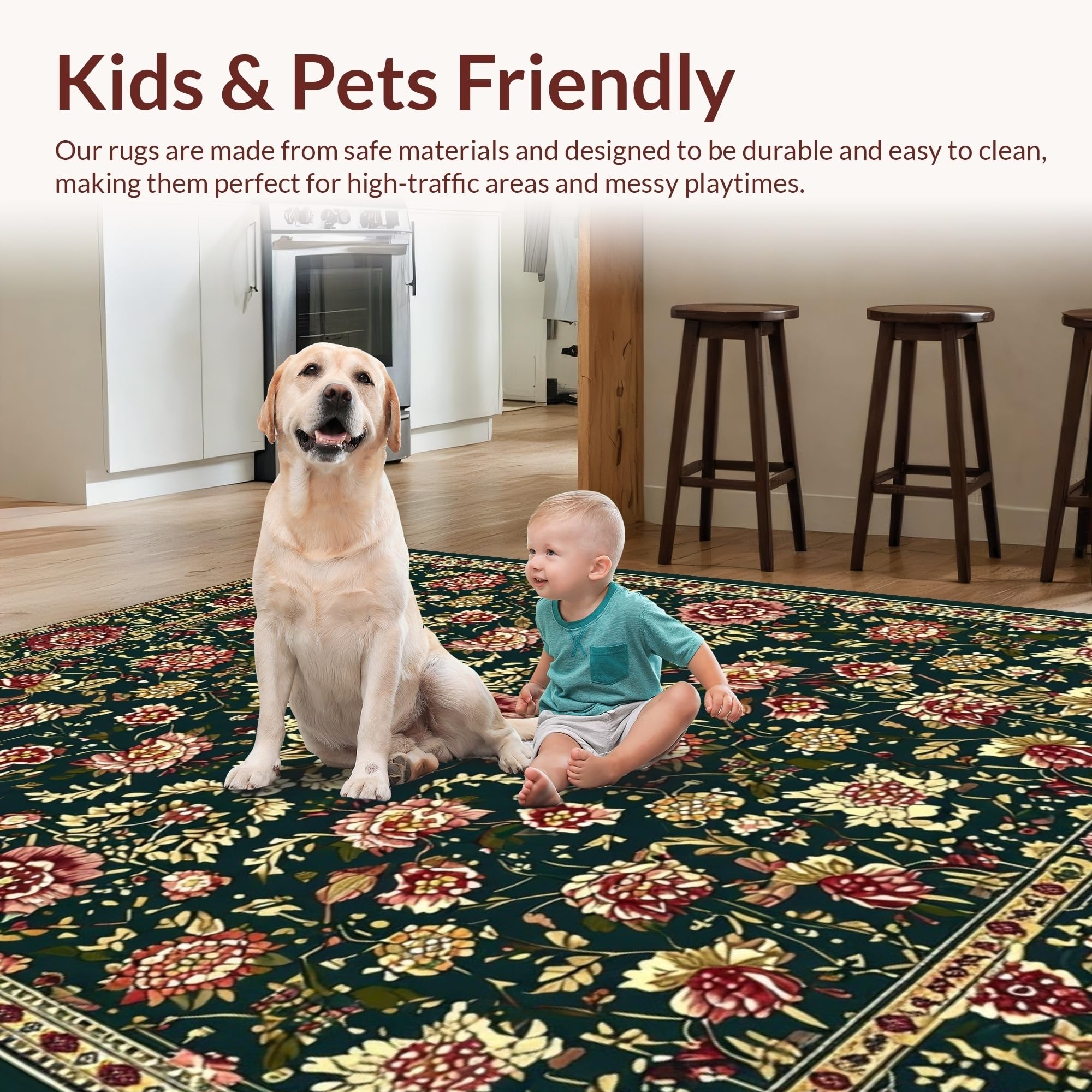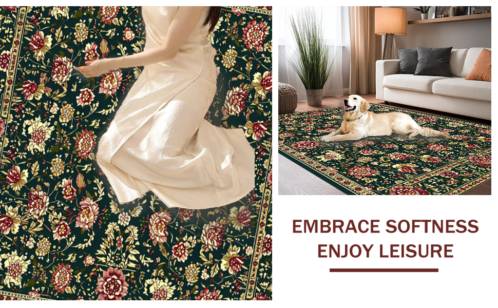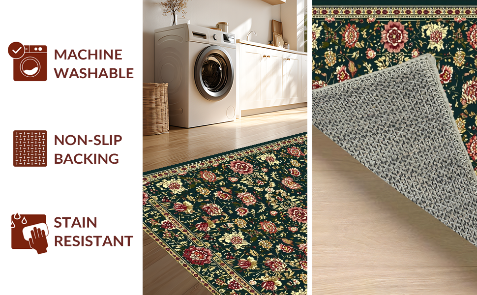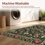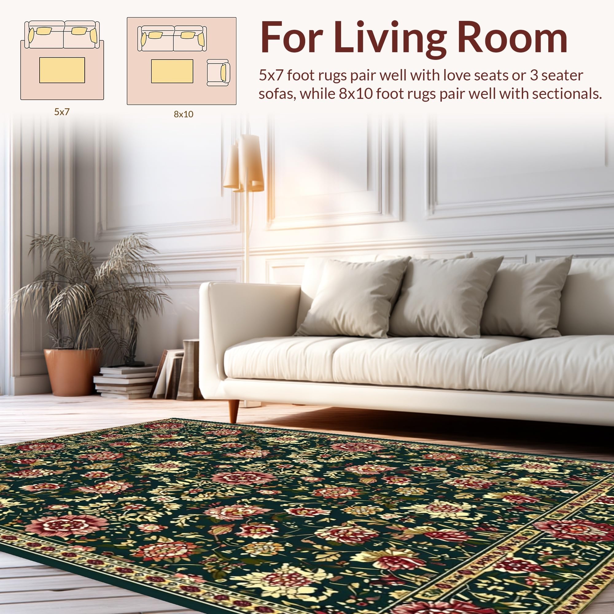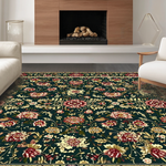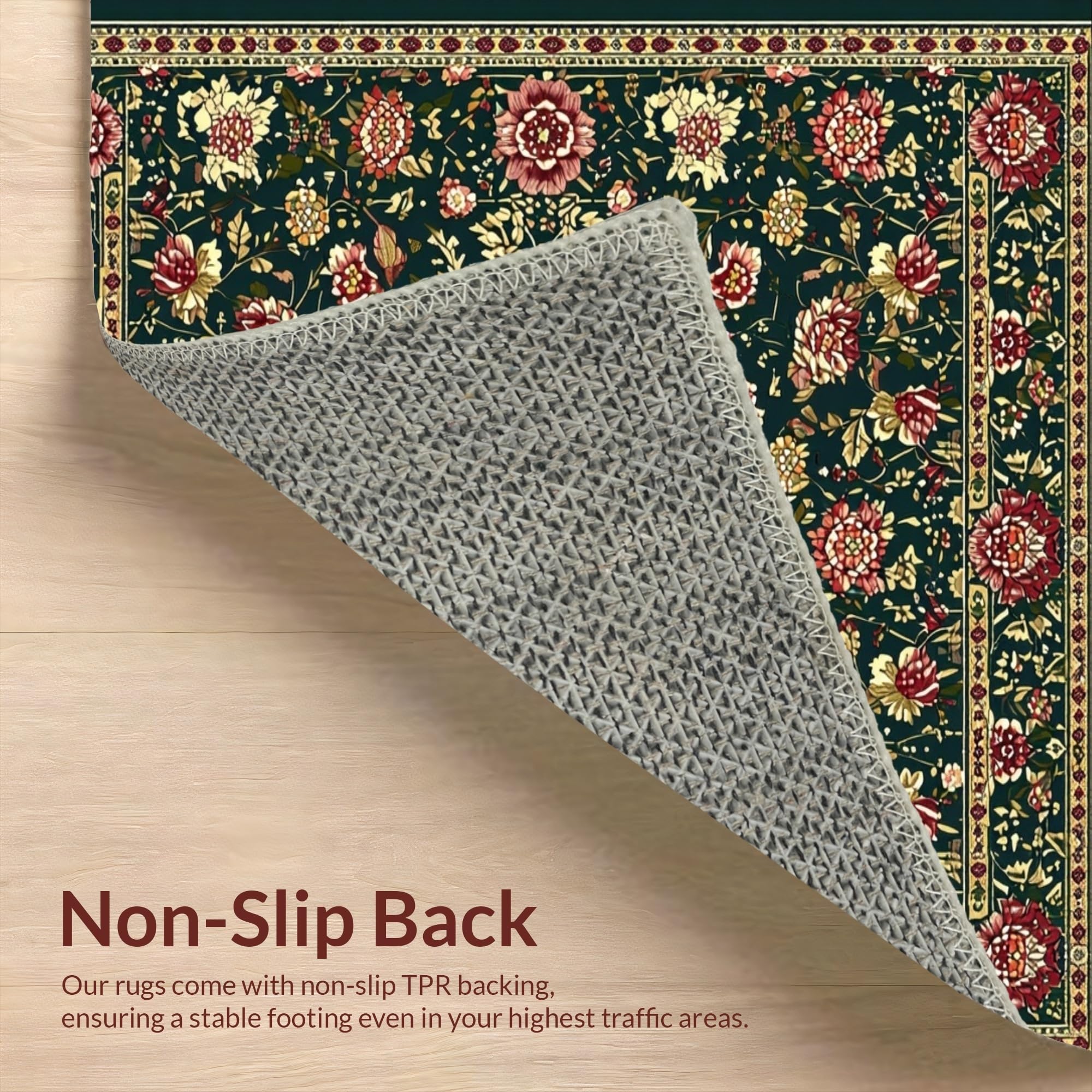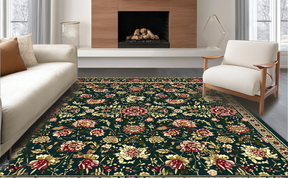 Ultra Soft Area Rug, Non Slip, Stain Resistant, Washable Area Rugs for Living Room, Bedroom, Elegant Dark Green Botanical Print(Green) Overview: