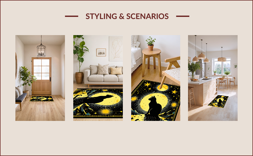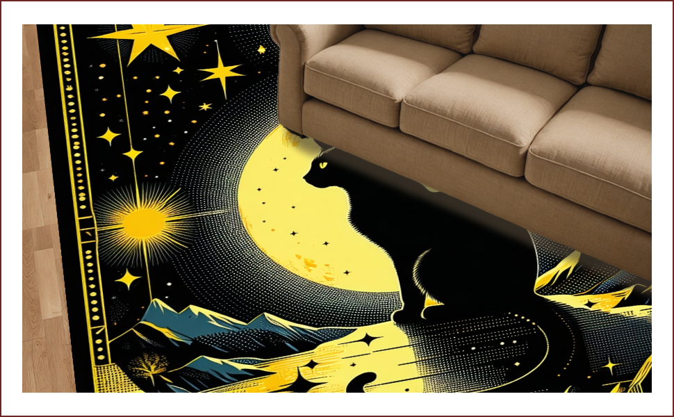 Ultra Soft Area Rug, Non Slip, Stain Resistant, Washable Area Rugs for Living Room, Bedroom, Elegant Dark Green Mystical Design(Black) Overview: