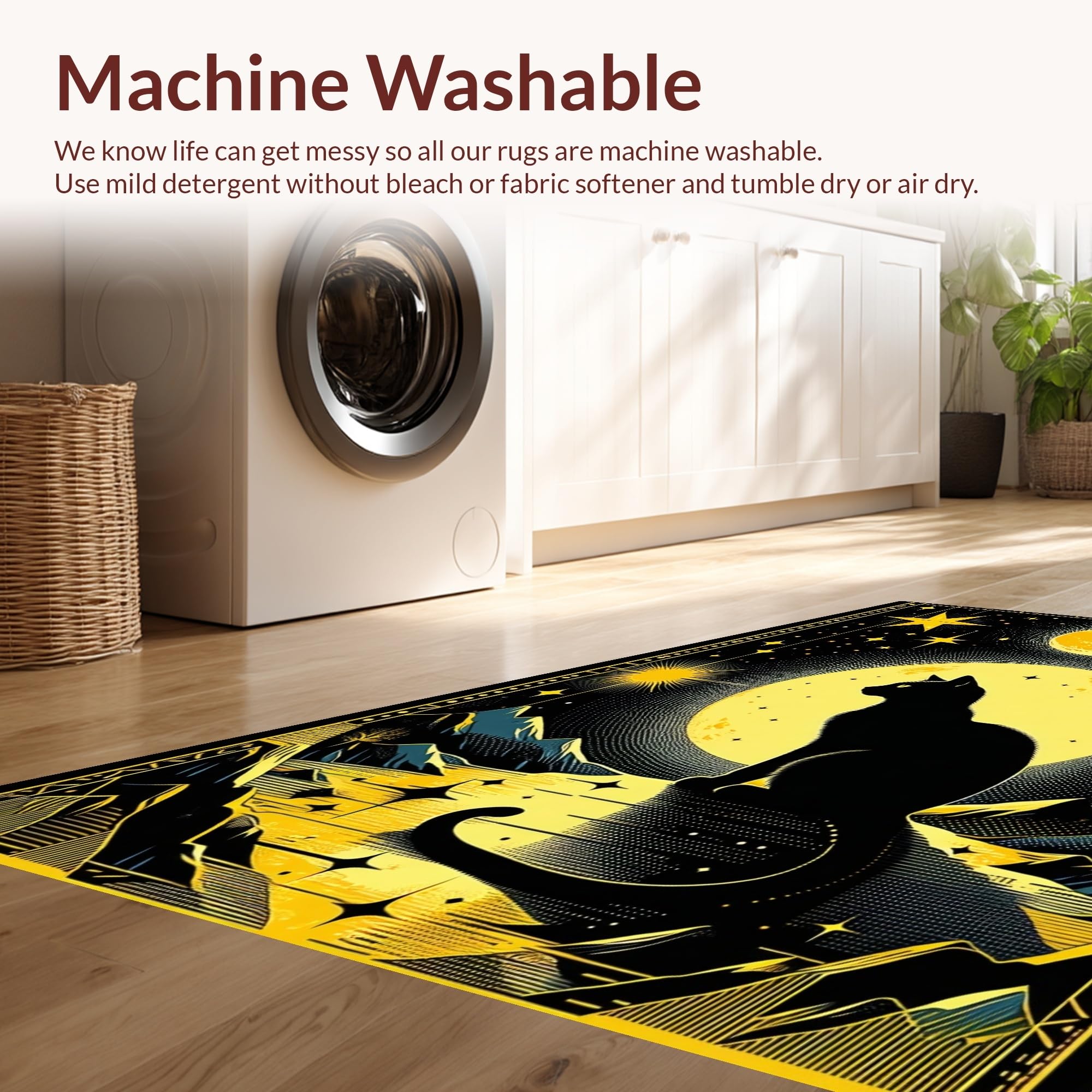 - Machine Washable: Our rugs can be easily thrown in the wash machine.