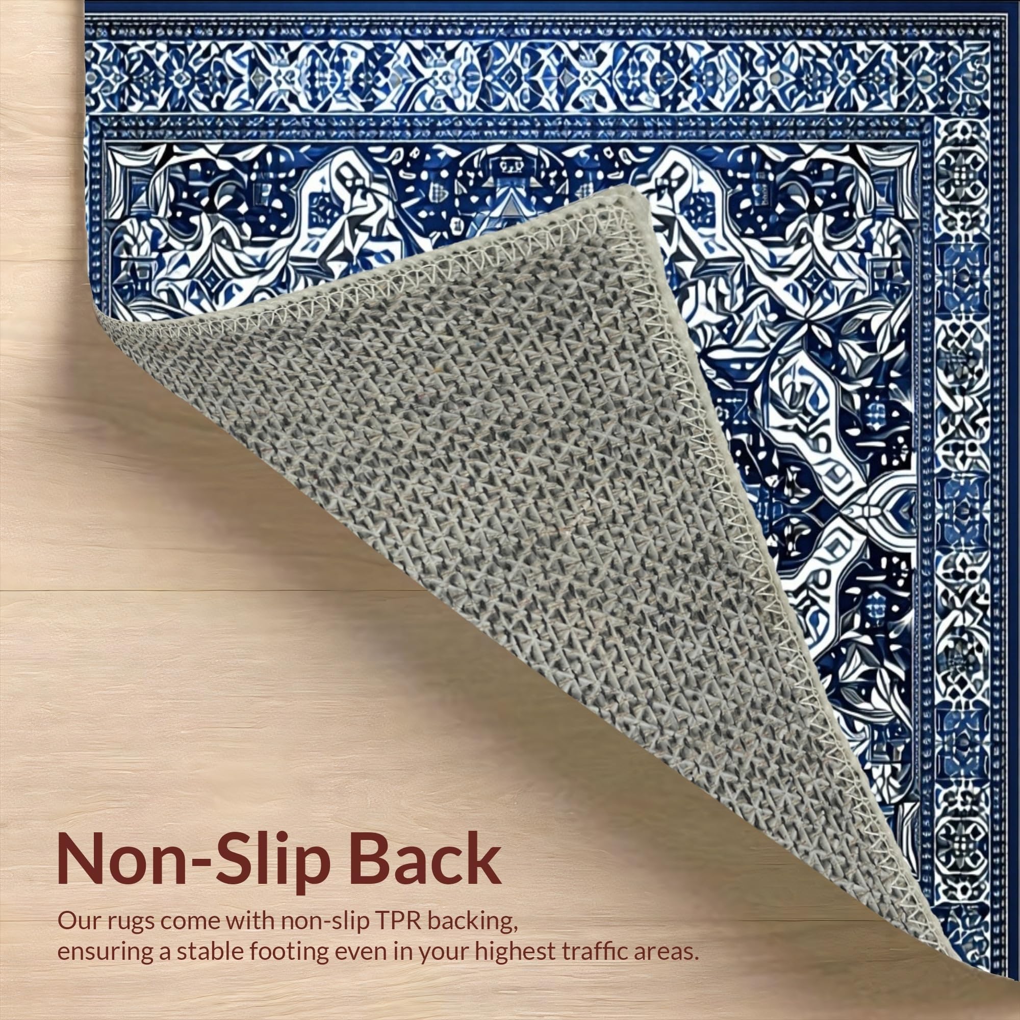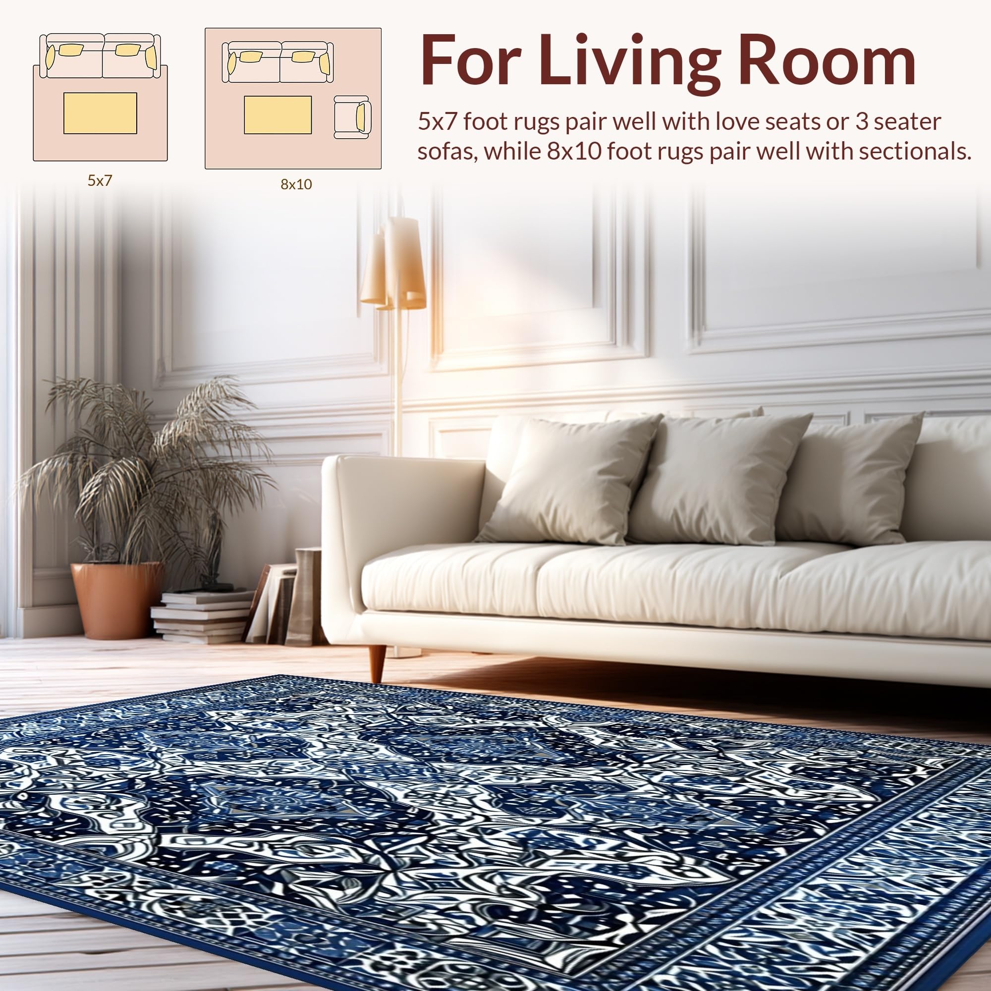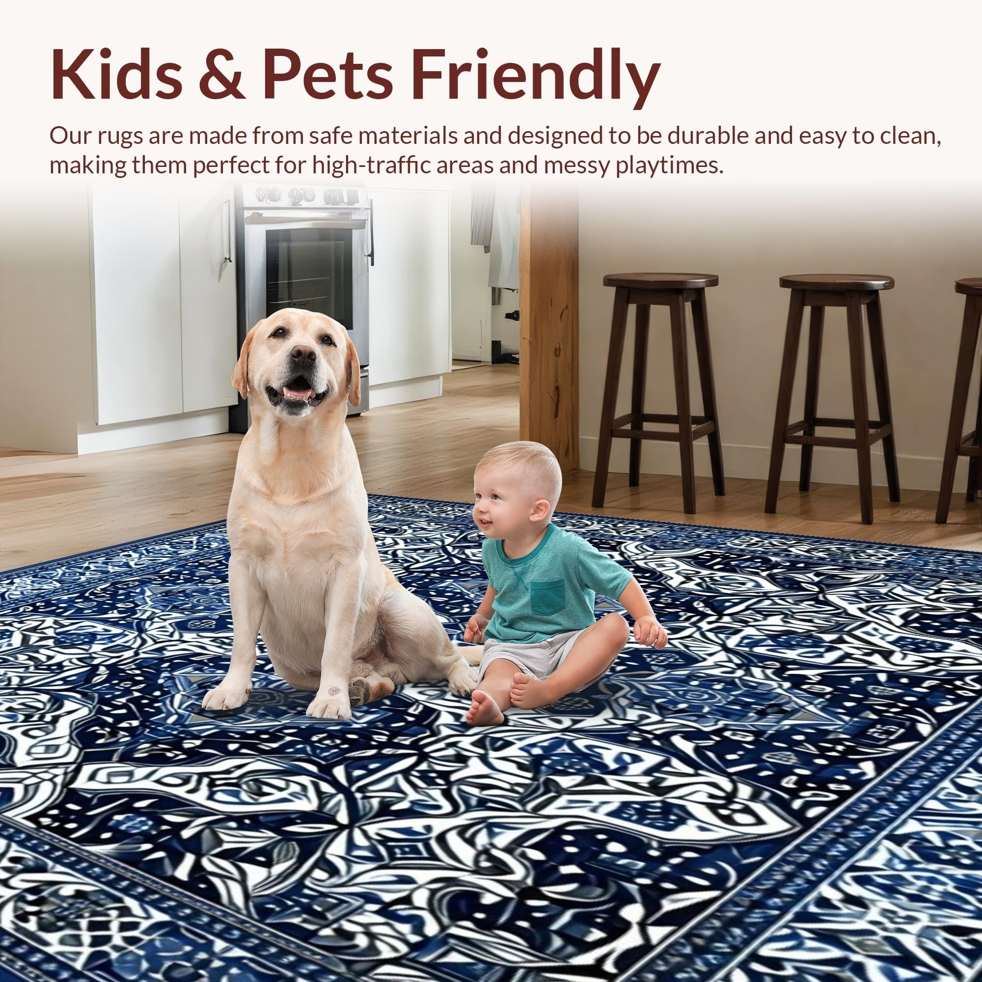 Ultra Soft Area Rug, Non Slip, Stain Resistant, Washable Area Rugs for Living Room, Bedroom, Elegant Deep Blue And Silver Abstract Area Featuring Unique(Blue) Overview: