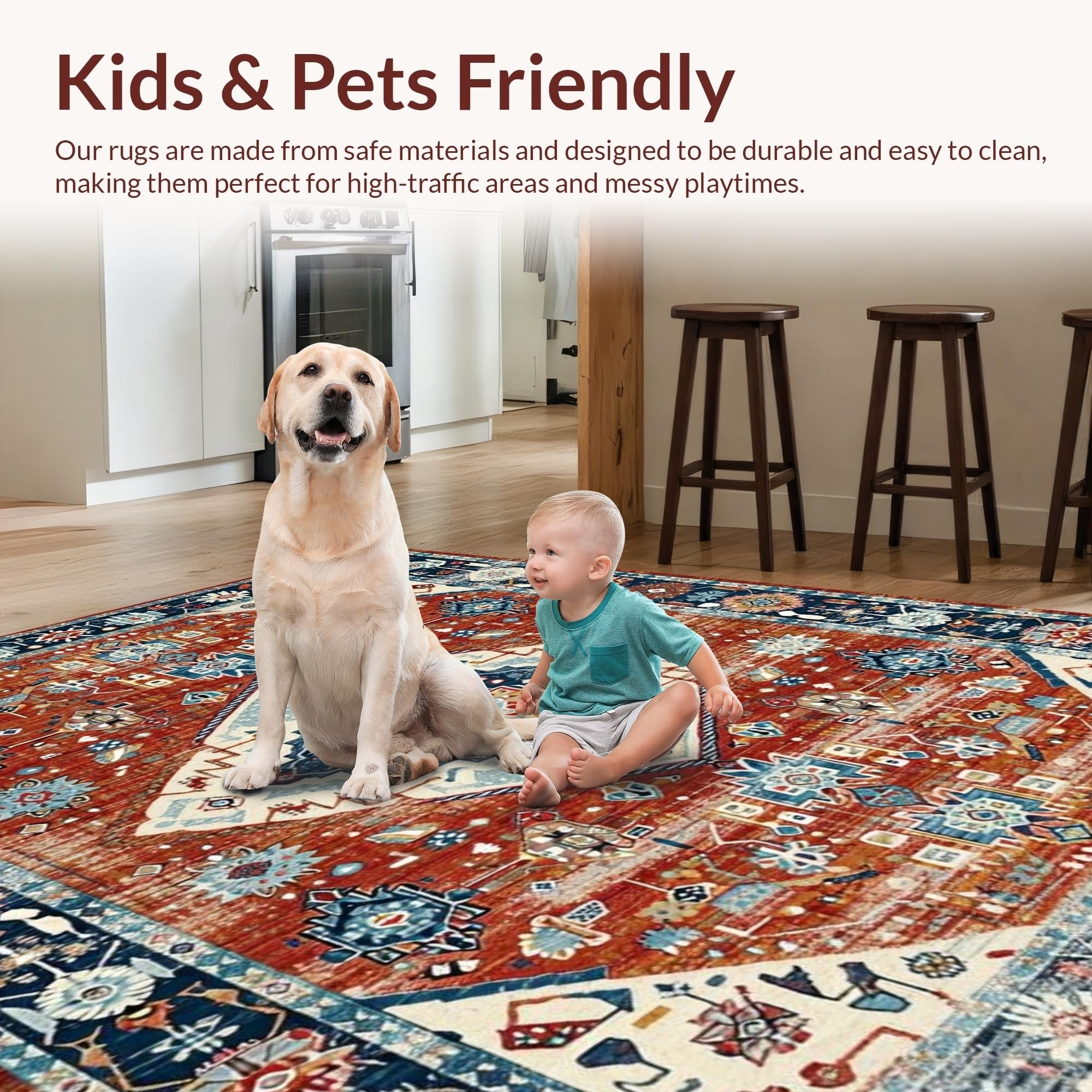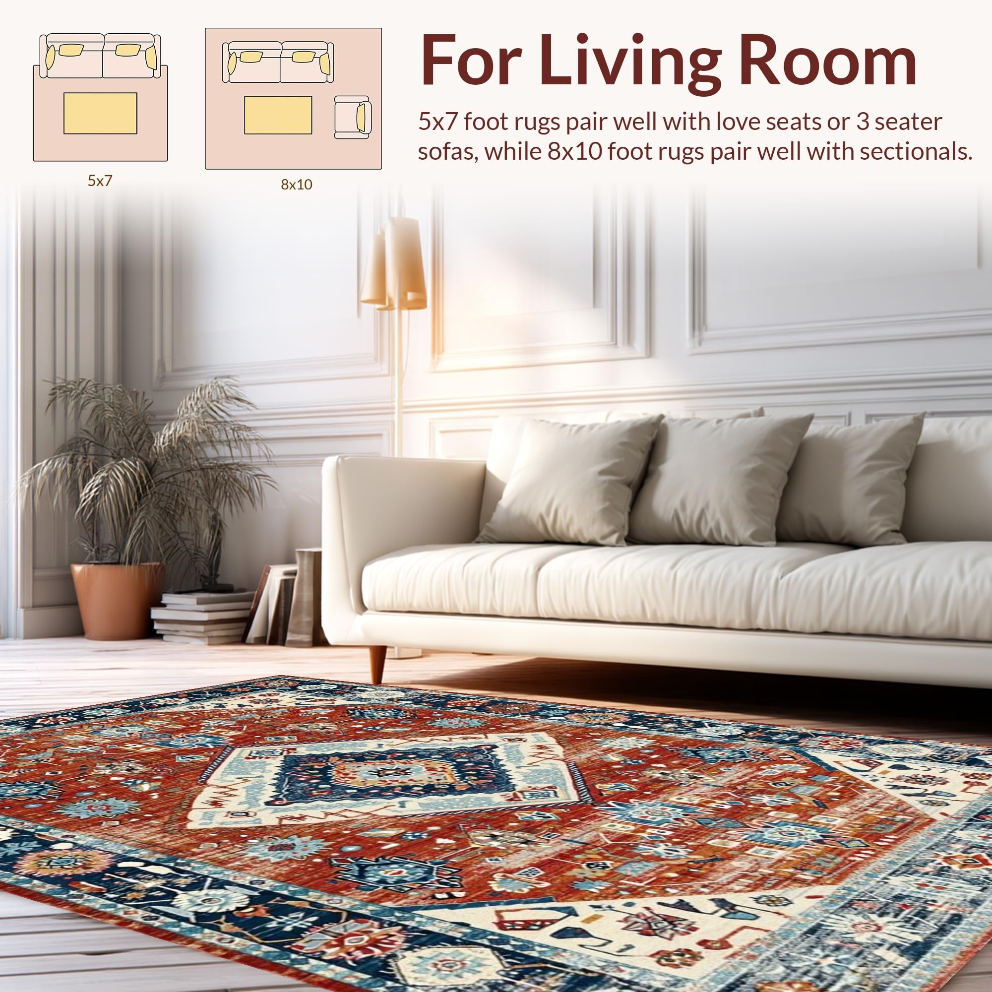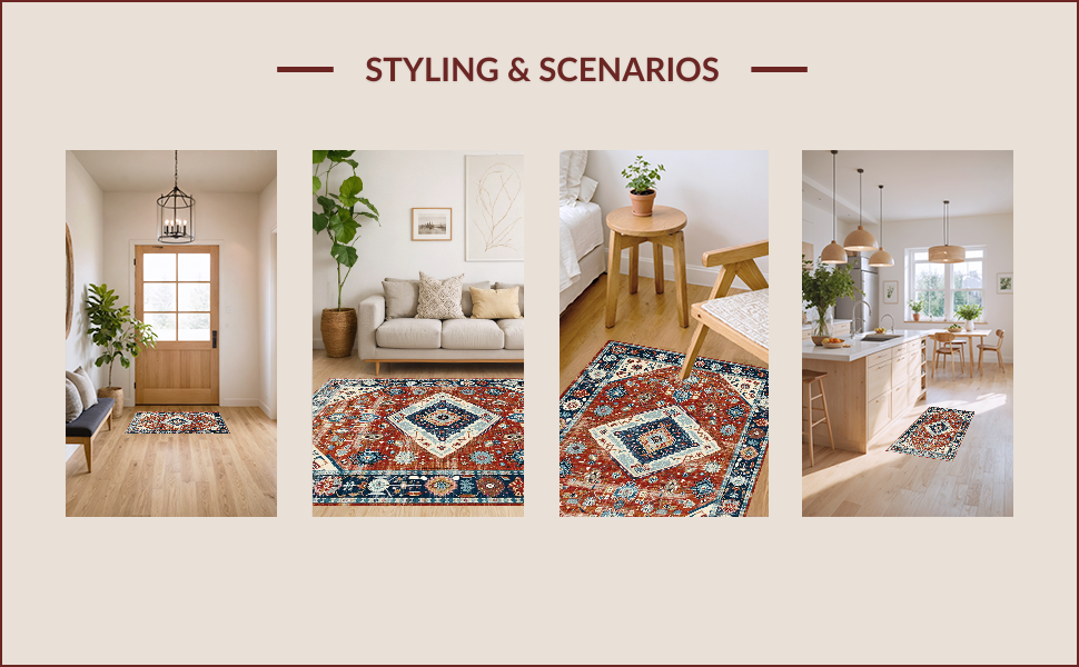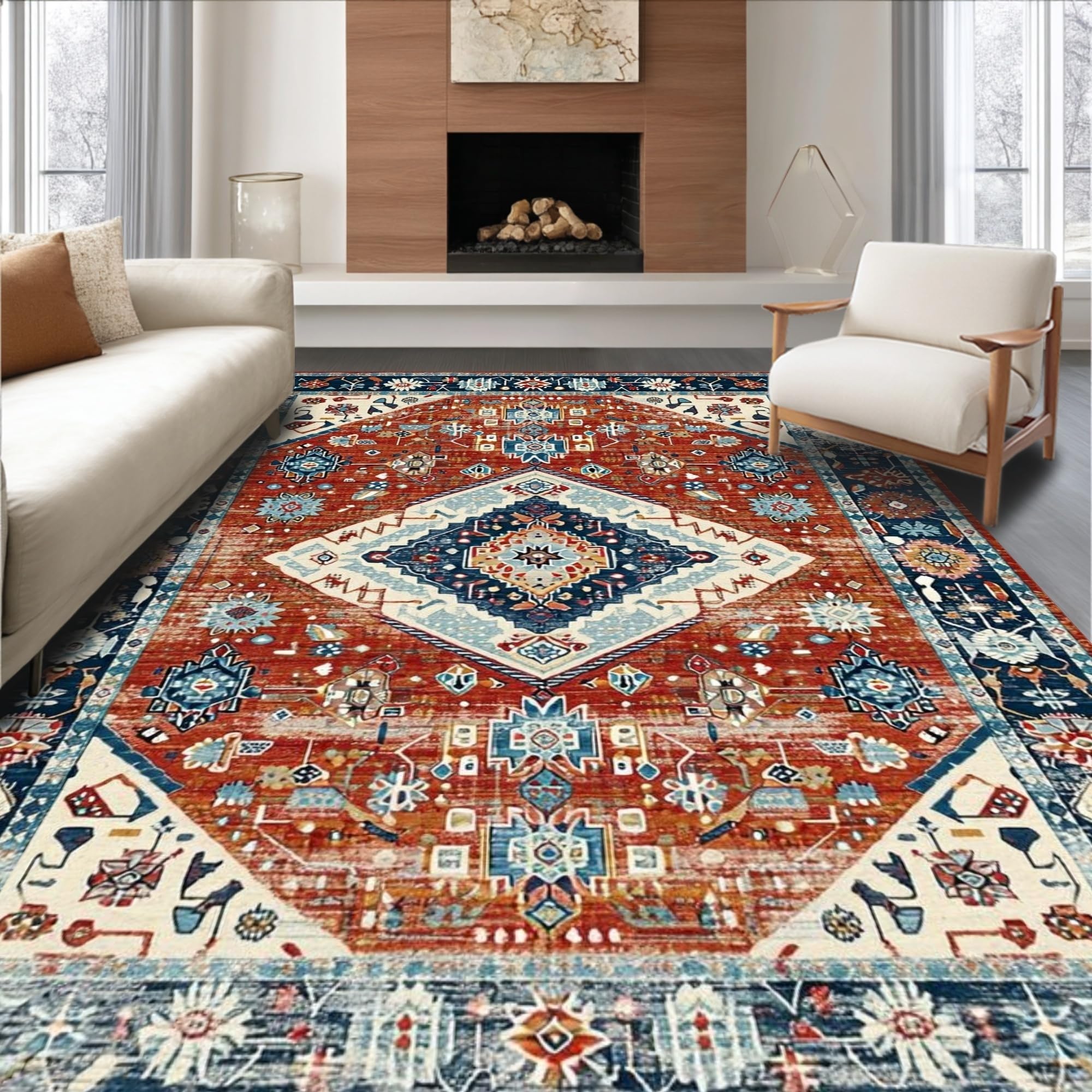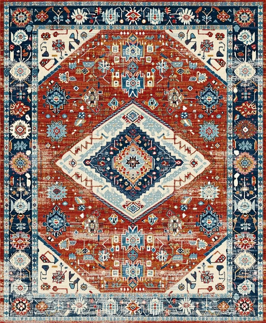 Ultra Soft Area Rug, Non Slip, Stain Resistant, Washable Area Rugs for Living Room, Bedroom, Elegant Distressed Medallion Design(Red) Overview: