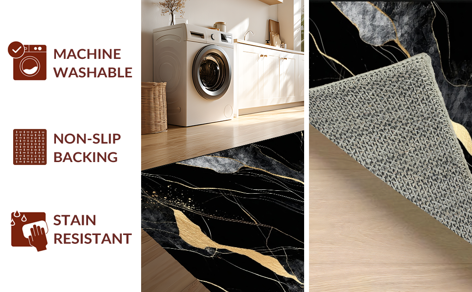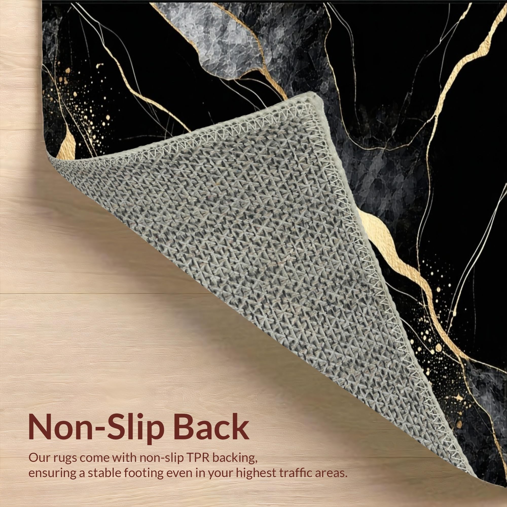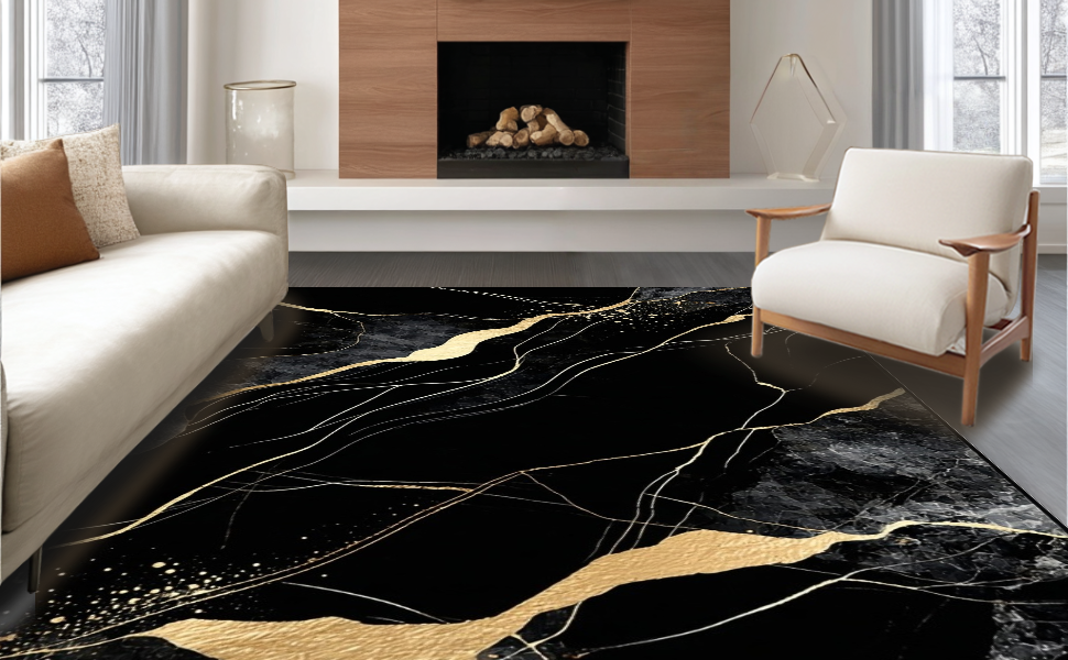 Ultra Soft Area Rug, Non Slip, Stain Resistant, Washable Area Rugs for Living Room, Bedroom, Elegant Dynamic Style Arrangement(Black) Overview: