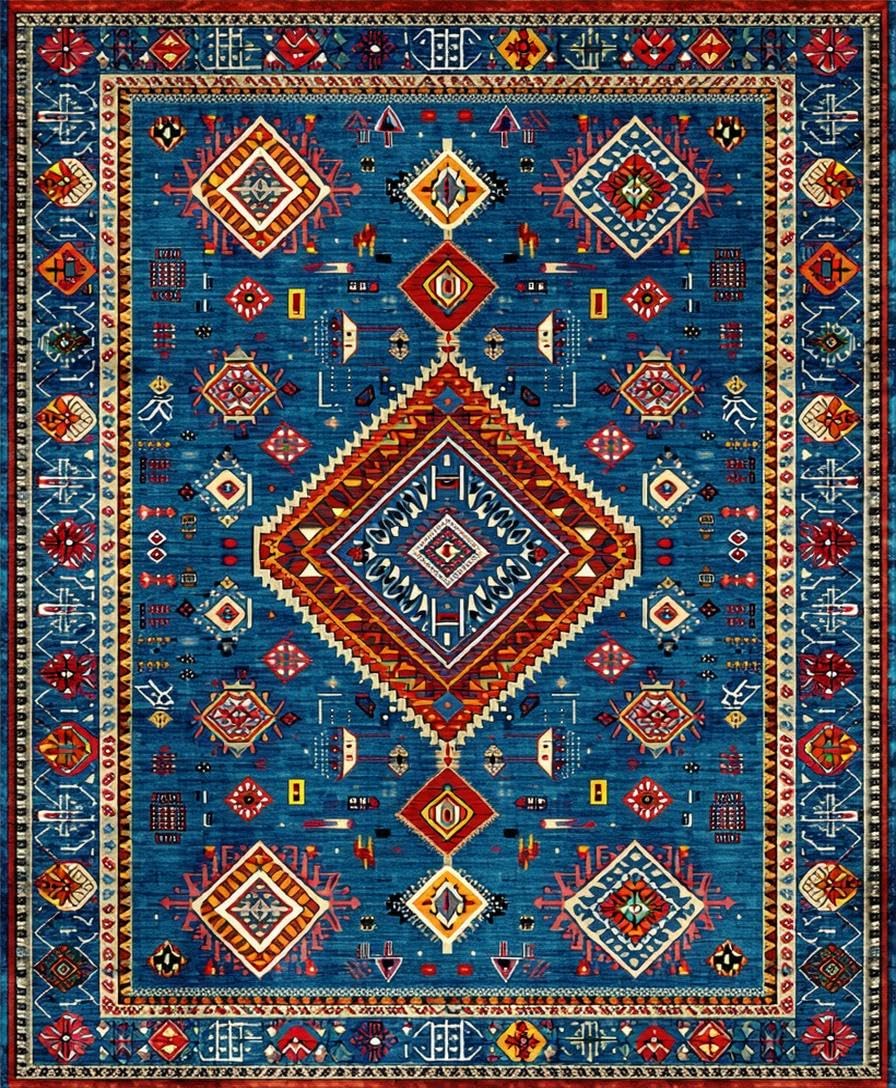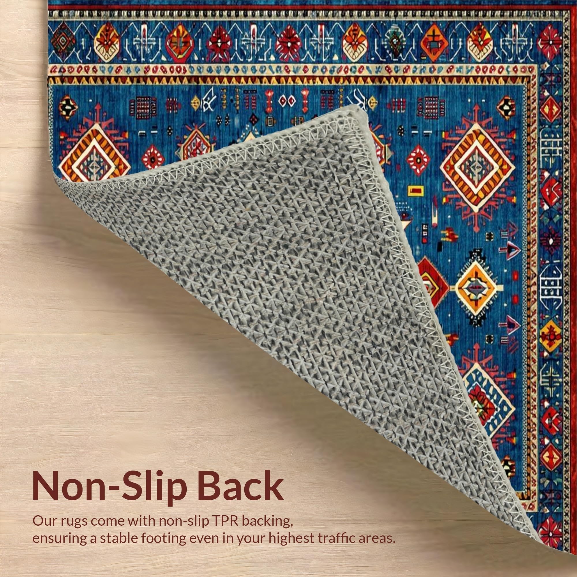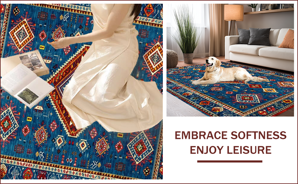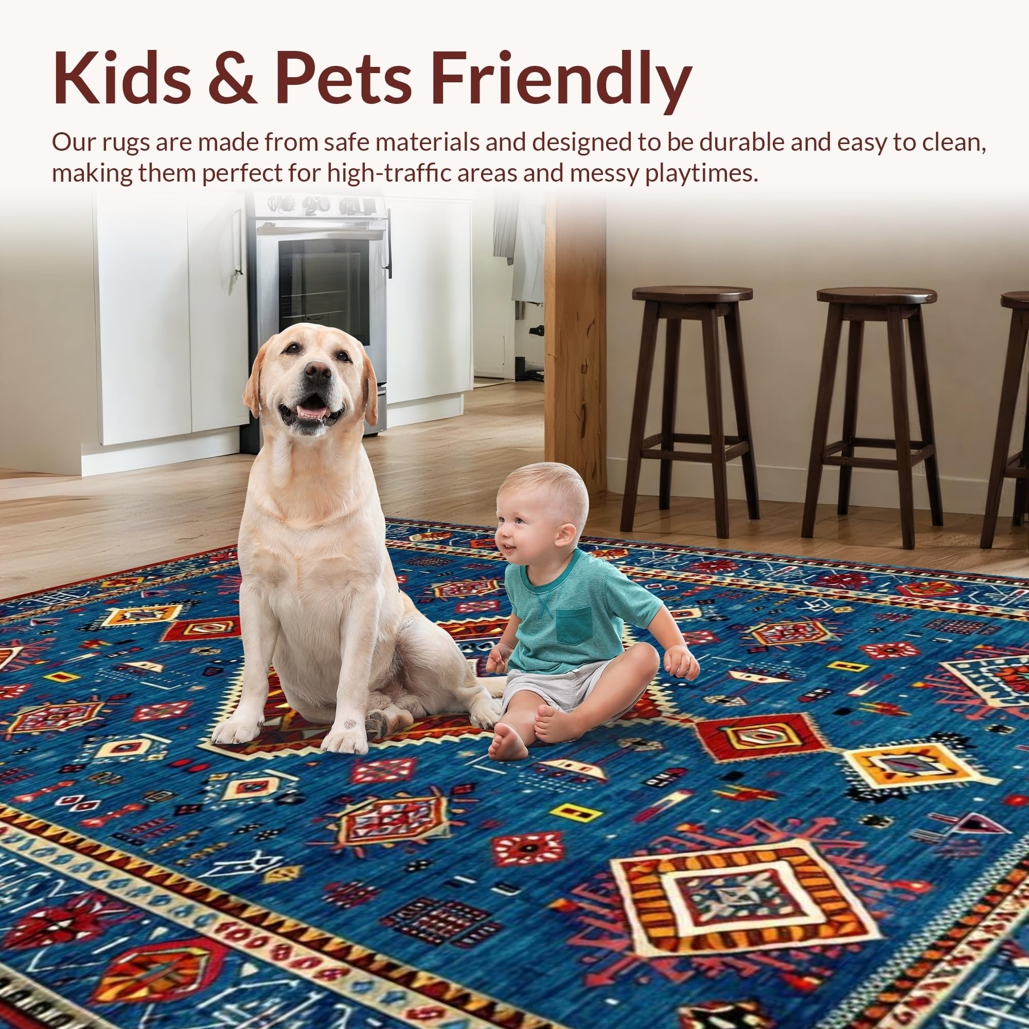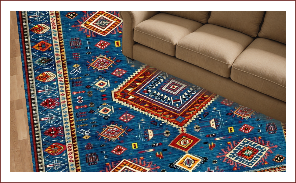 Ultra Soft Area Rug, Non Slip, Stain Resistant, Washable Area Rugs for Living Room, Bedroom, Elegant Earth Tone Geometric Design(Blue) Overview: