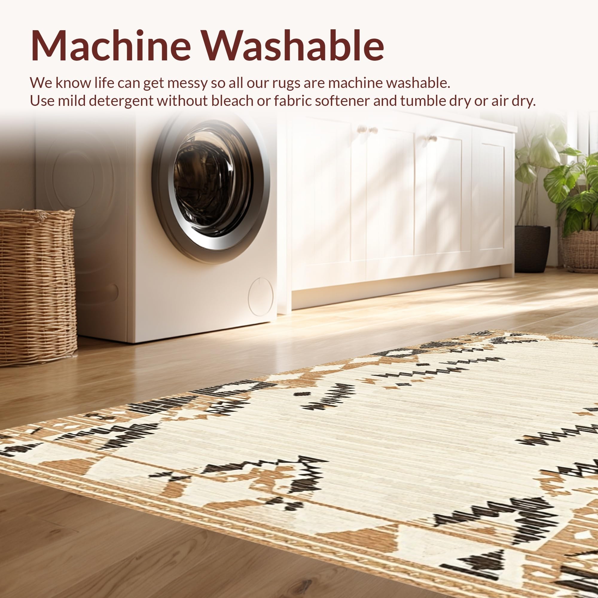 - Machine Washable: Our rugs can be easily thrown in the wash machine.