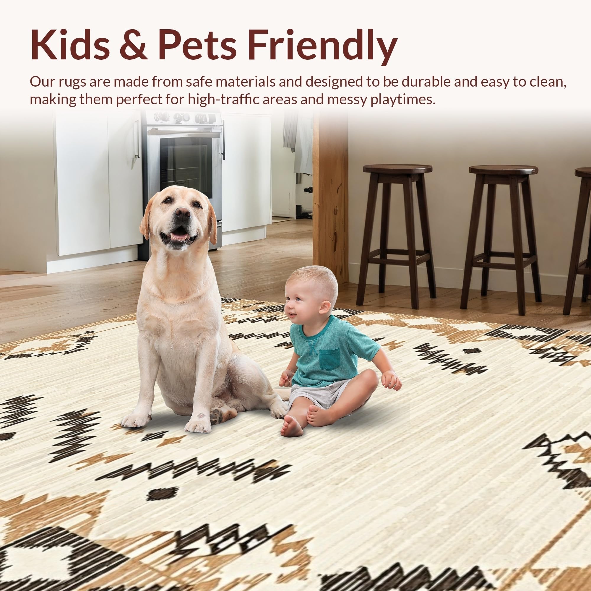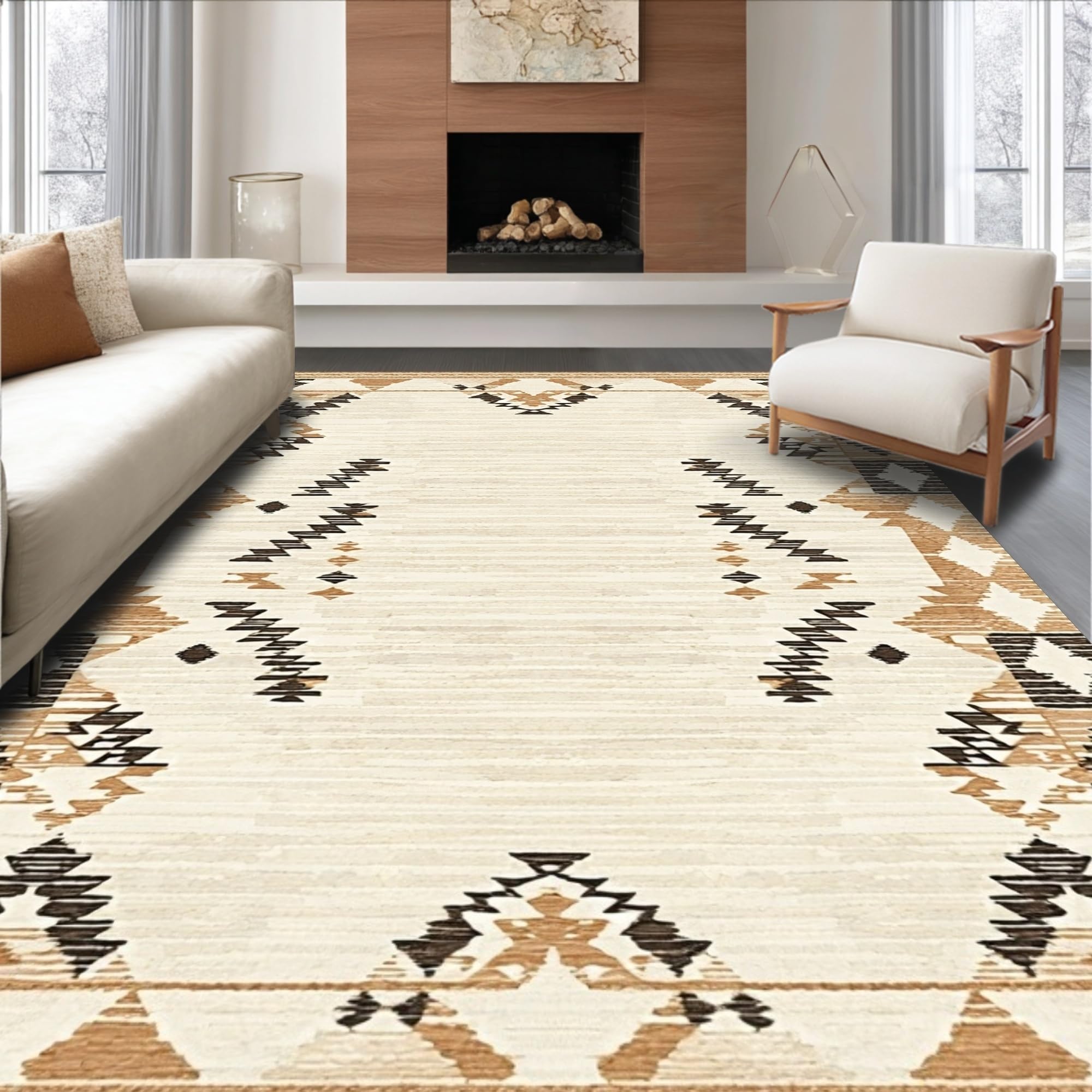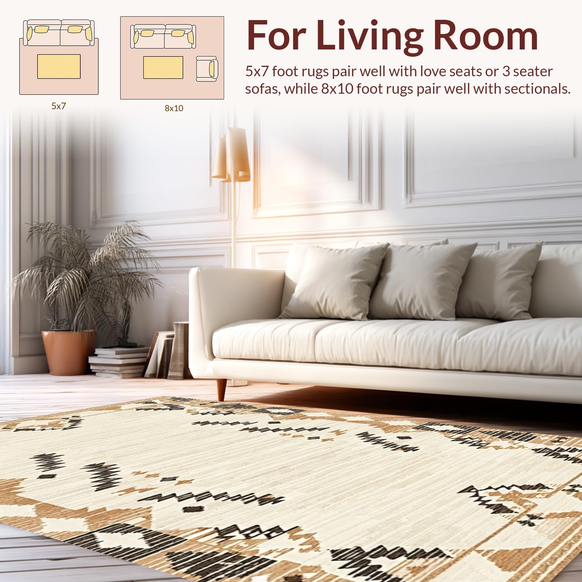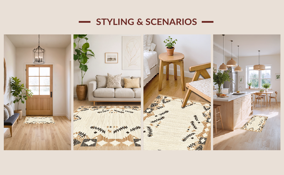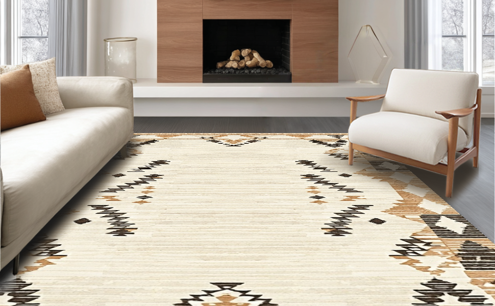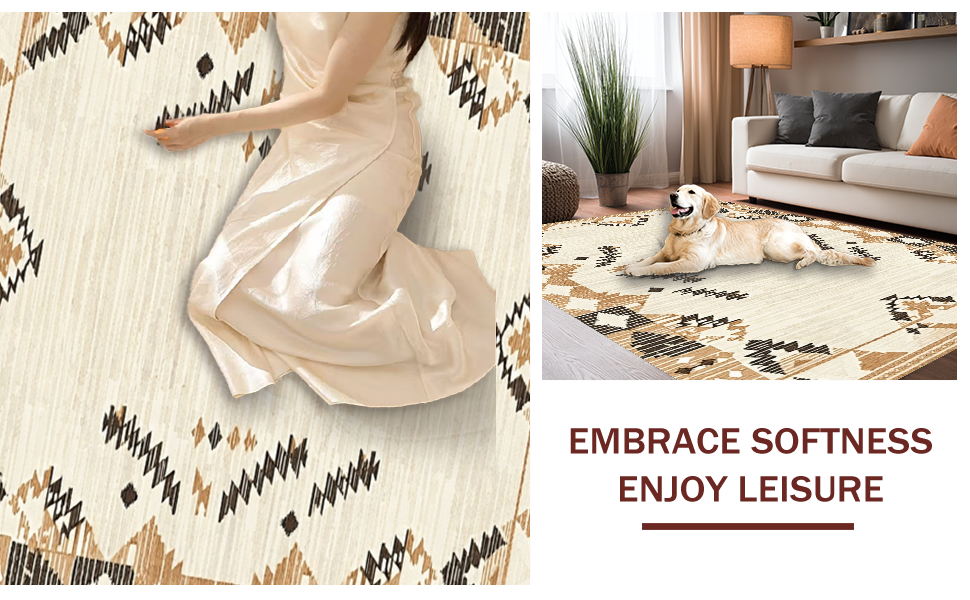 Ultra Soft Area Rug, Non Slip, Stain Resistant, Washable Area Rugs for Living Room, Bedroom, Elegant Earth Tones Textured Weave(Beige) Overview: