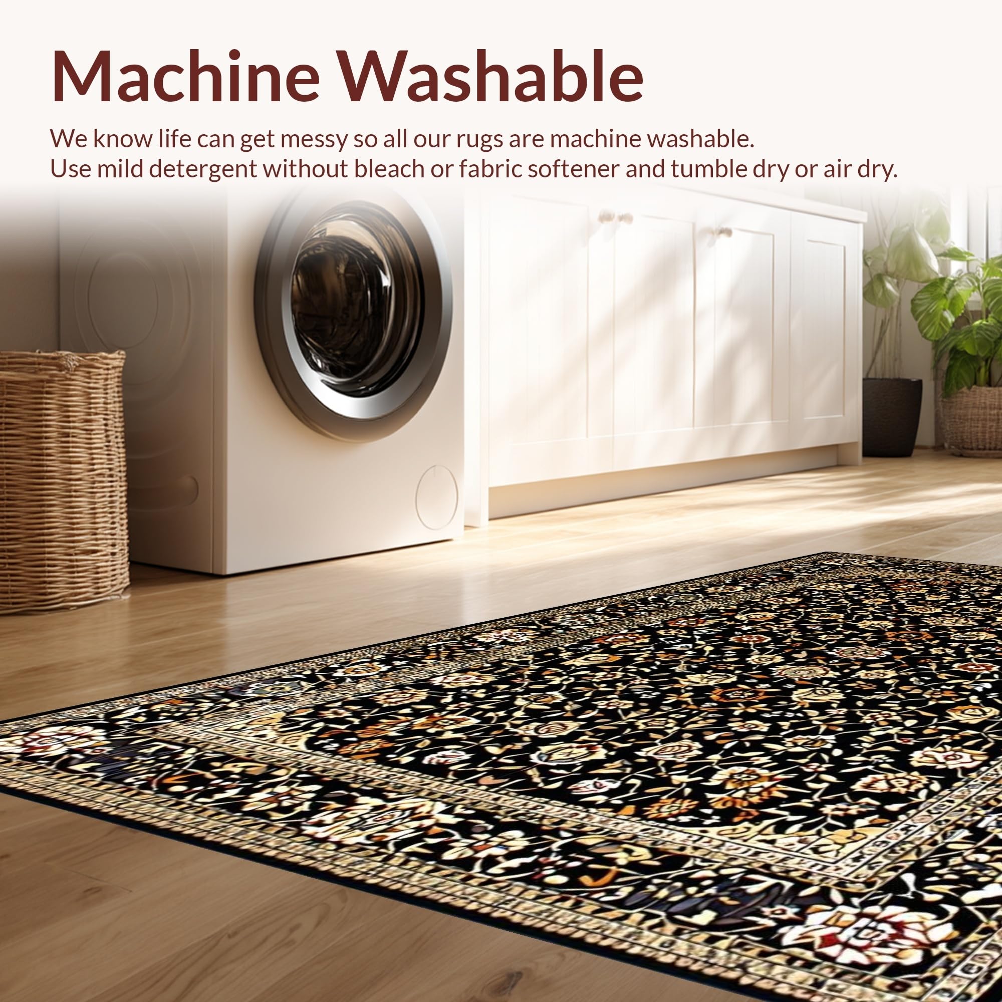 - Machine Washable: Our rugs can be easily thrown in the wash machine.