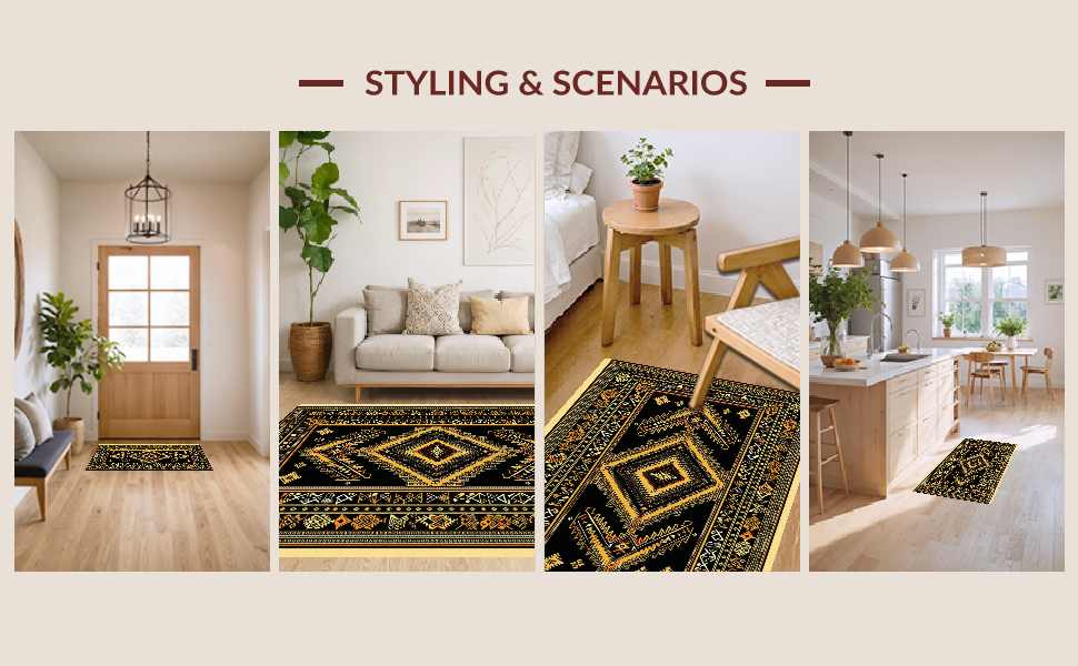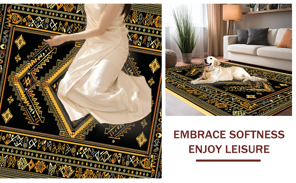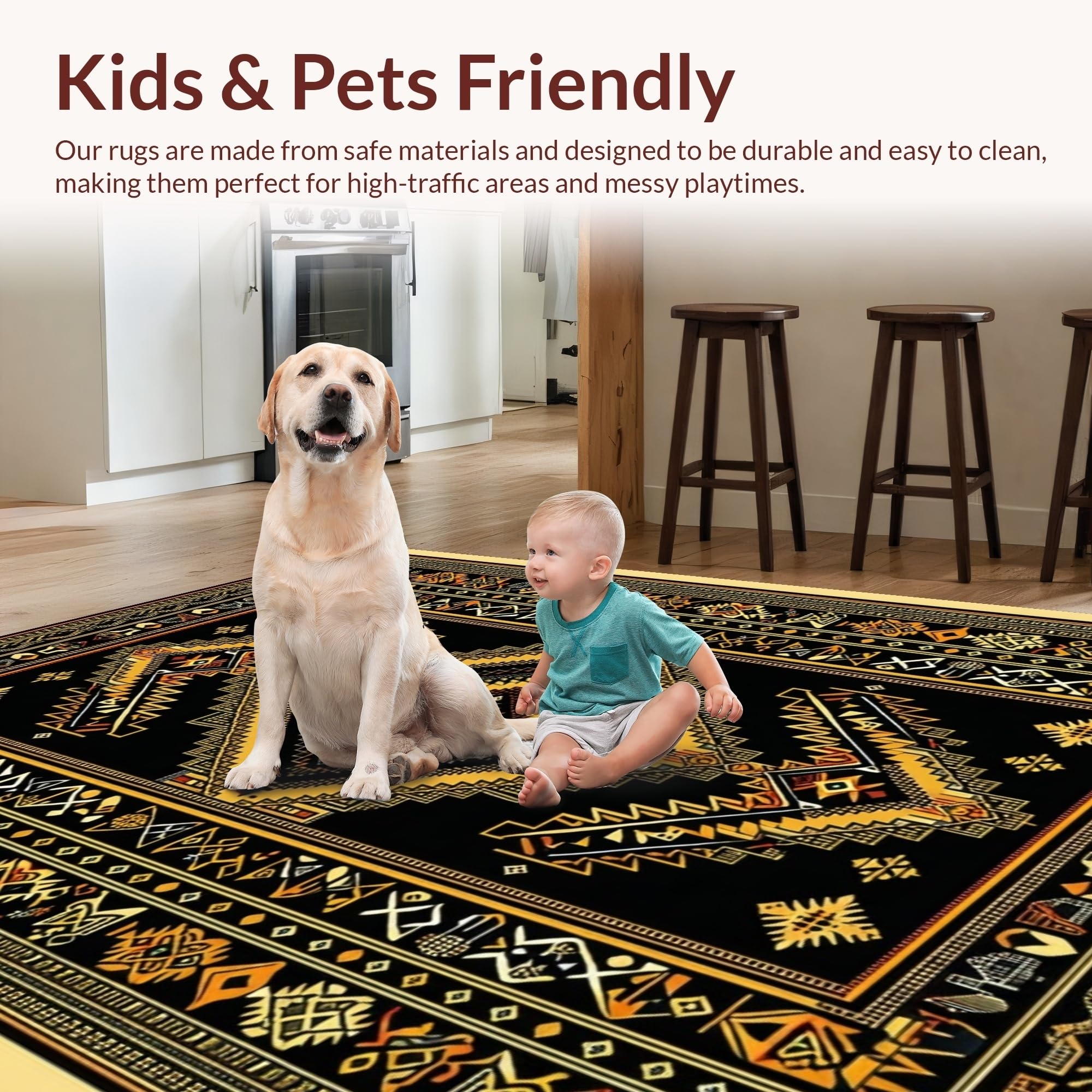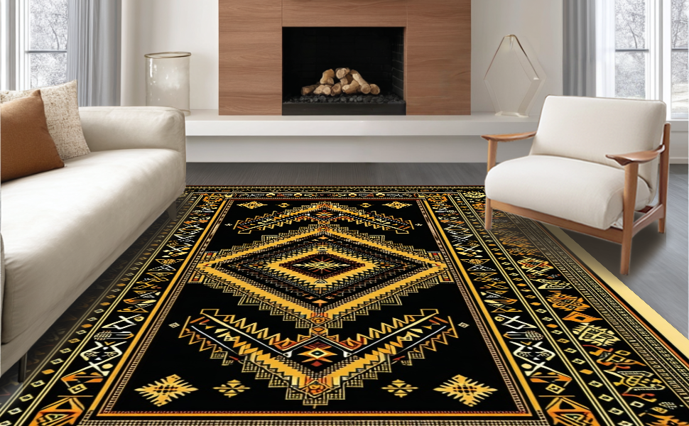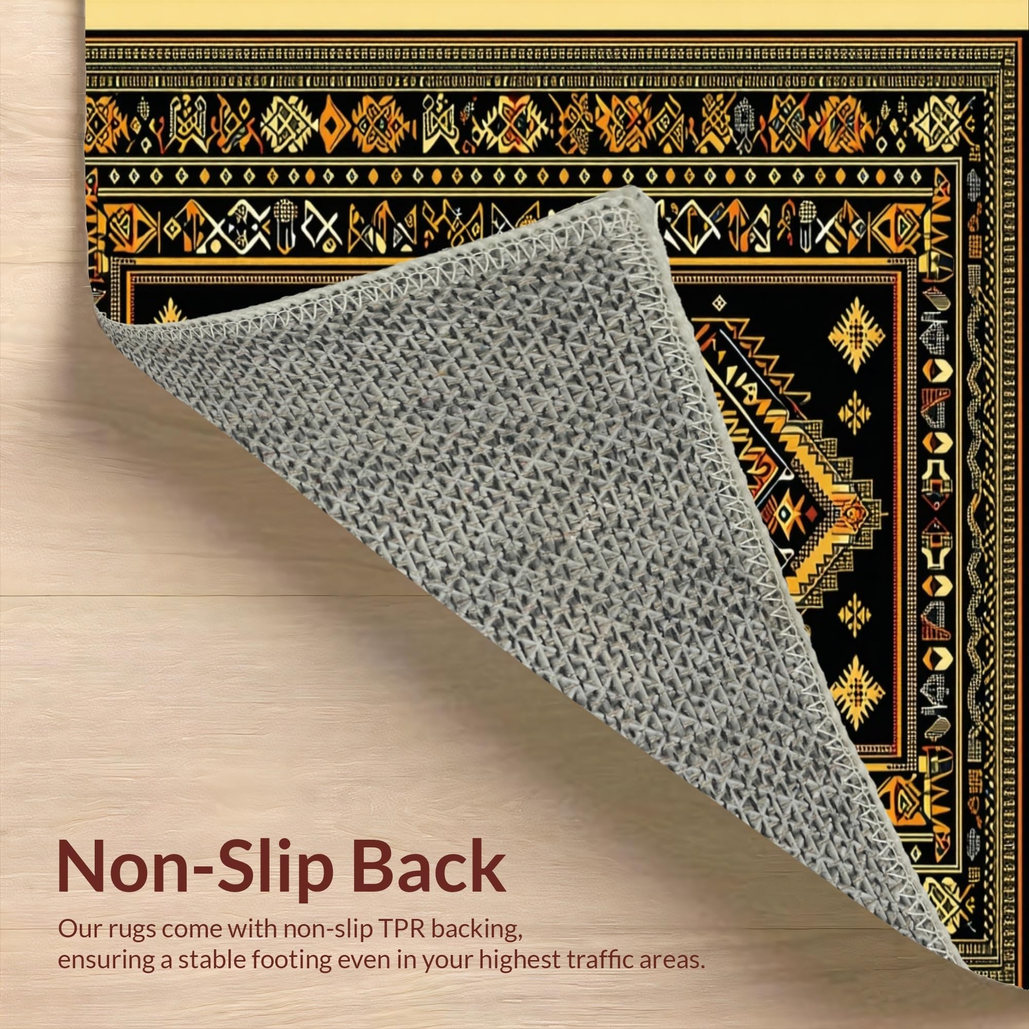 Ultra Soft Area Rug, Non Slip, Stain Resistant, Washable Area Rugs for Living Room, Bedroom, Elegant Earthy Colorful Medallion(Black) Overview: