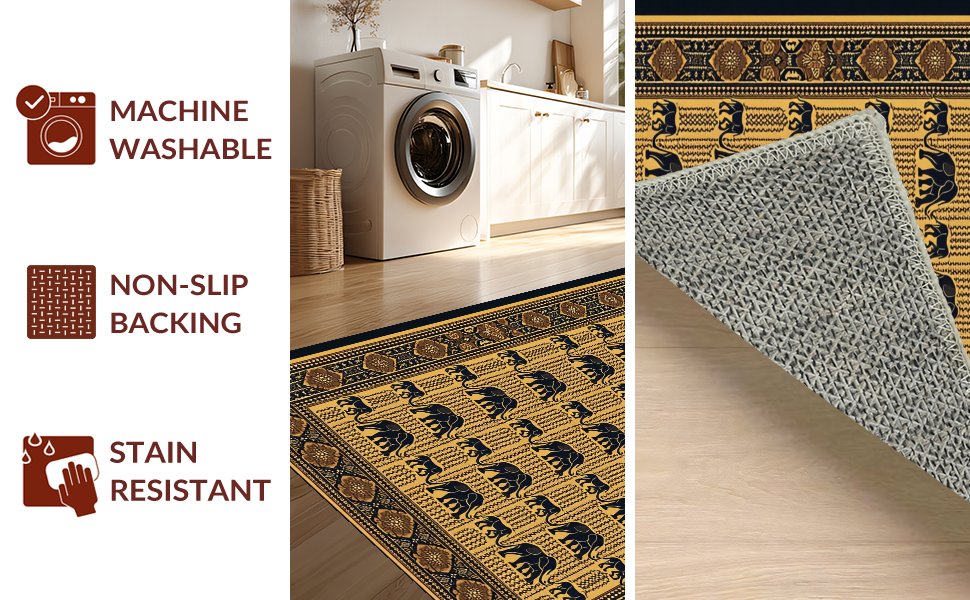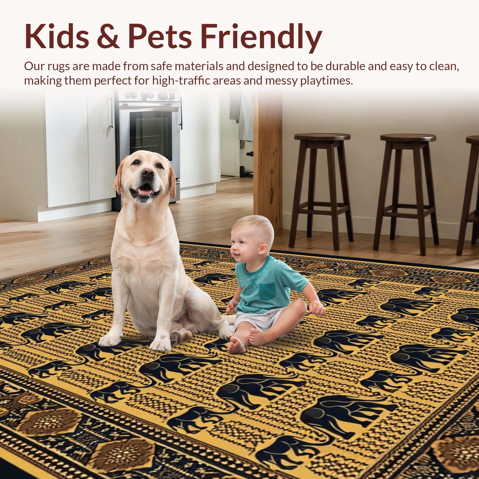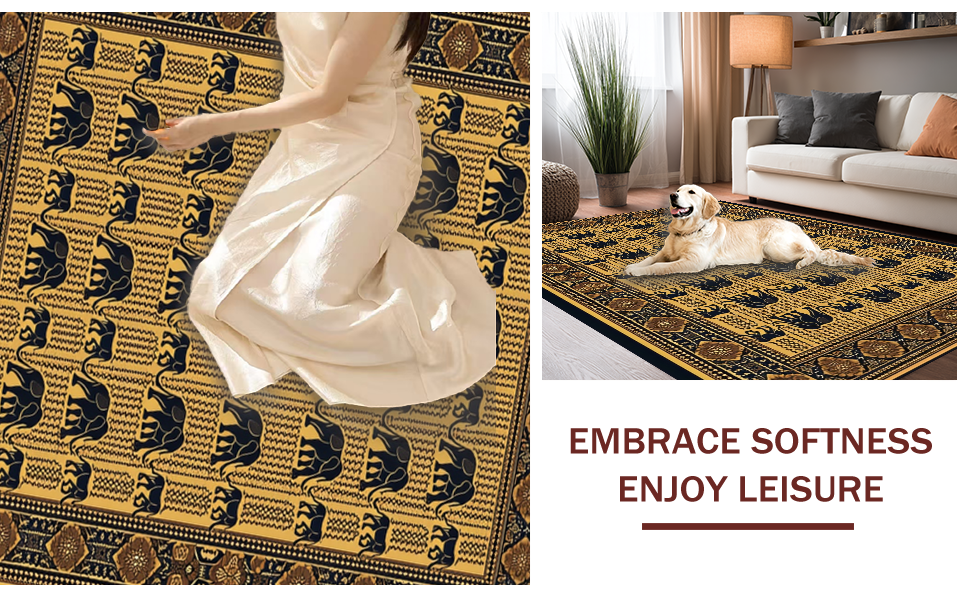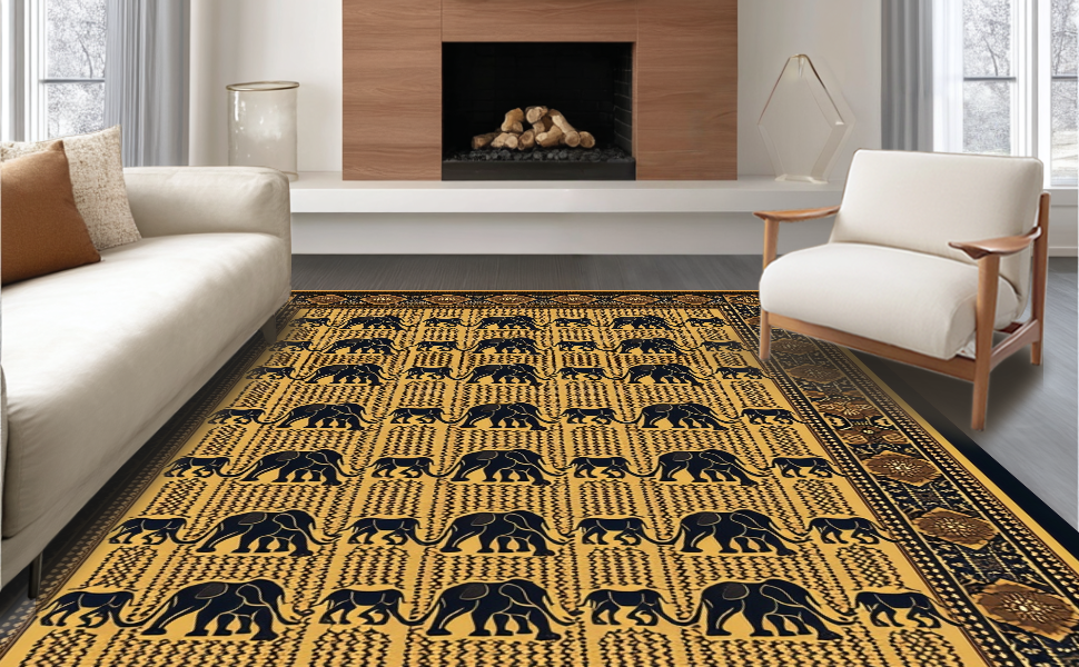 Ultra Soft Area Rug, Non Slip, Stain Resistant, Washable Area Rugs for Living Room, Bedroom, Elegant Earthy Elephant Silhouette(Beige) Overview: