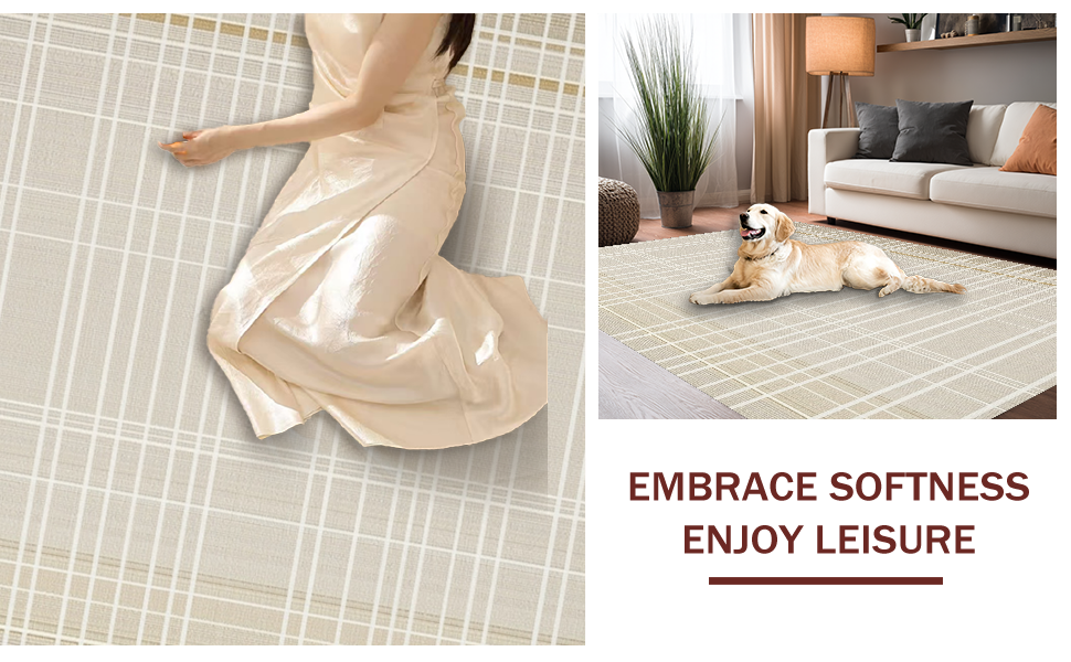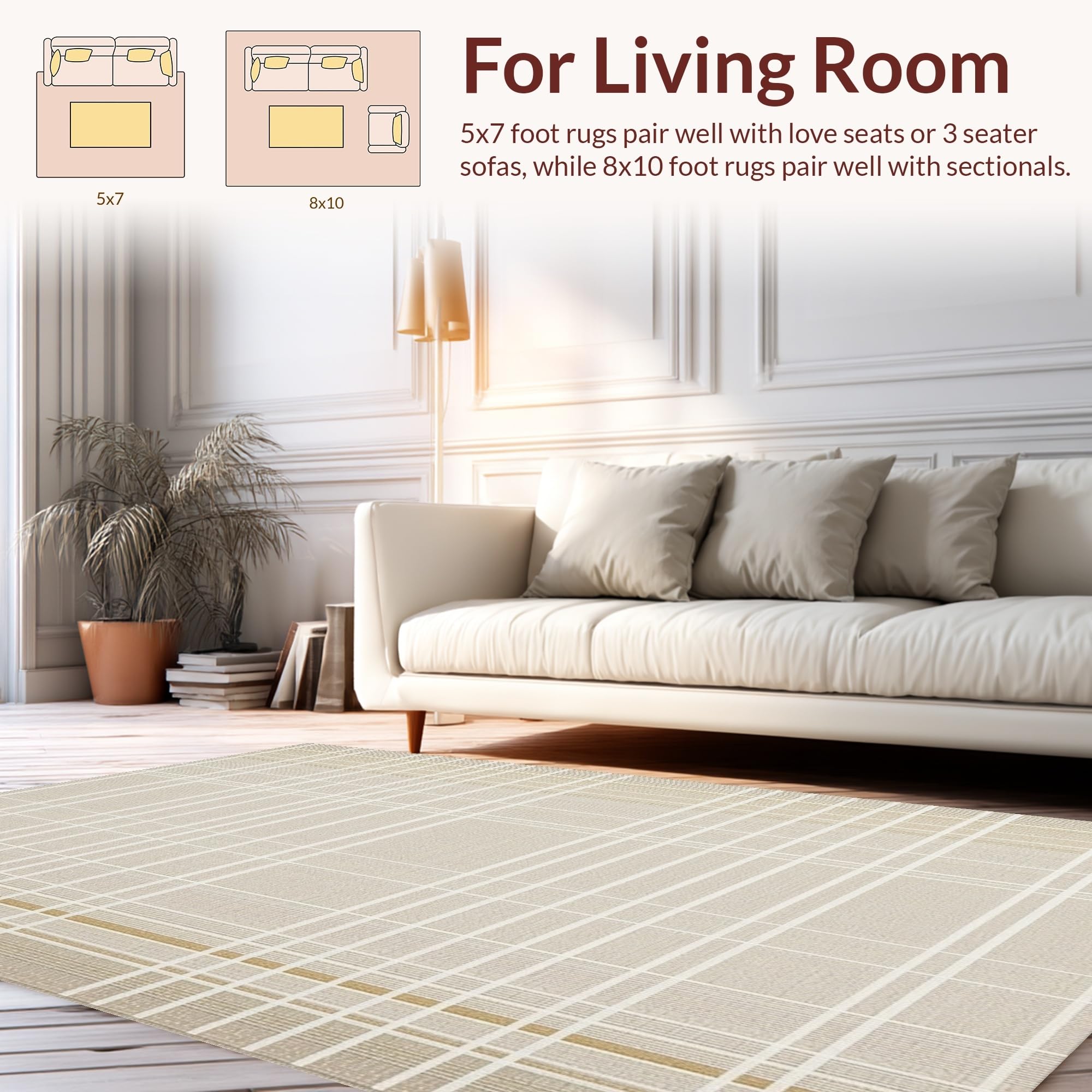 Ultra Soft Area Rug, Non Slip, Stain Resistant, Washable Area Rugs for Living Room, Bedroom, Elegant Earthy Toned Waves(Beige) Overview: