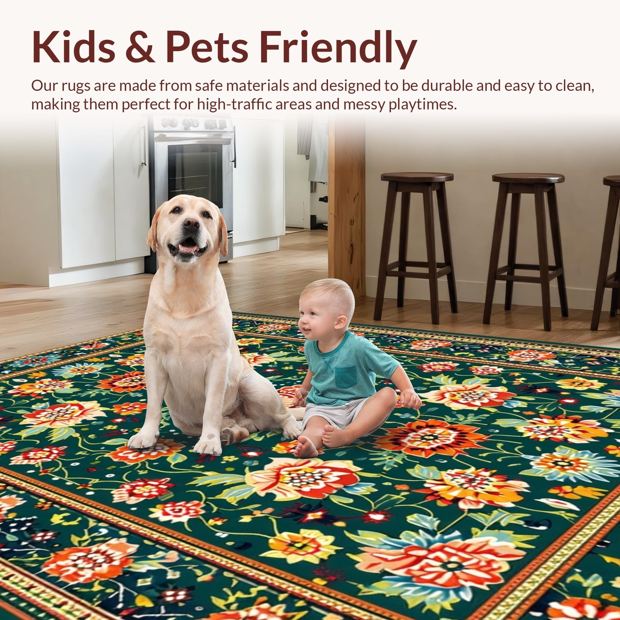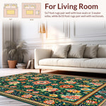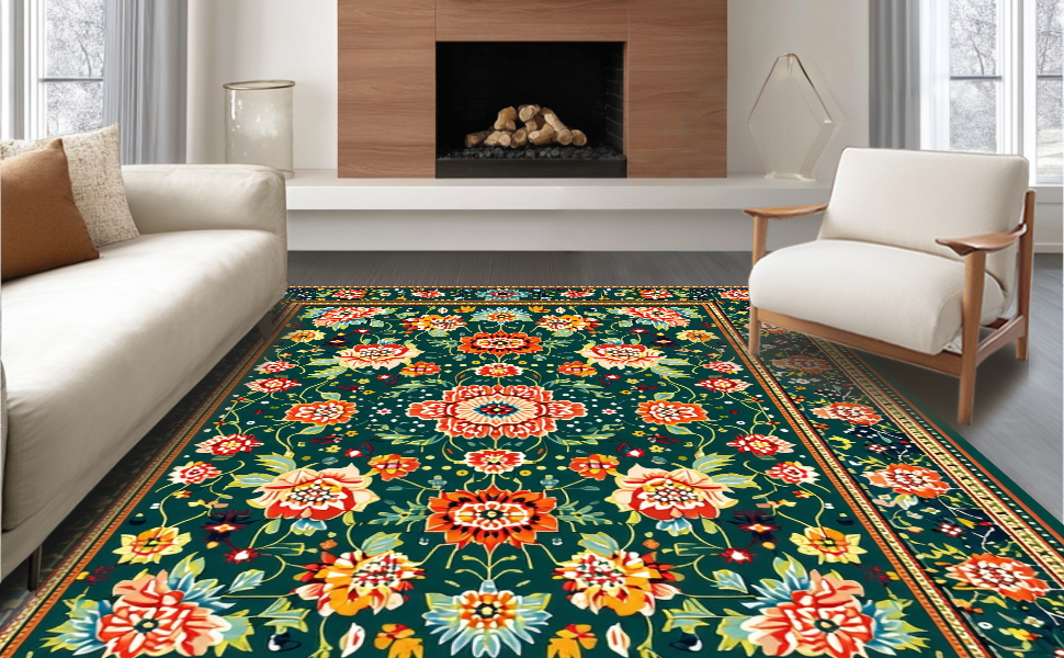 Ultra Soft Area Rug, Non Slip, Stain Resistant, Washable Area Rugs for Living Room, Bedroom, Elegant Earthy Tones Floral Design(Green) Overview: