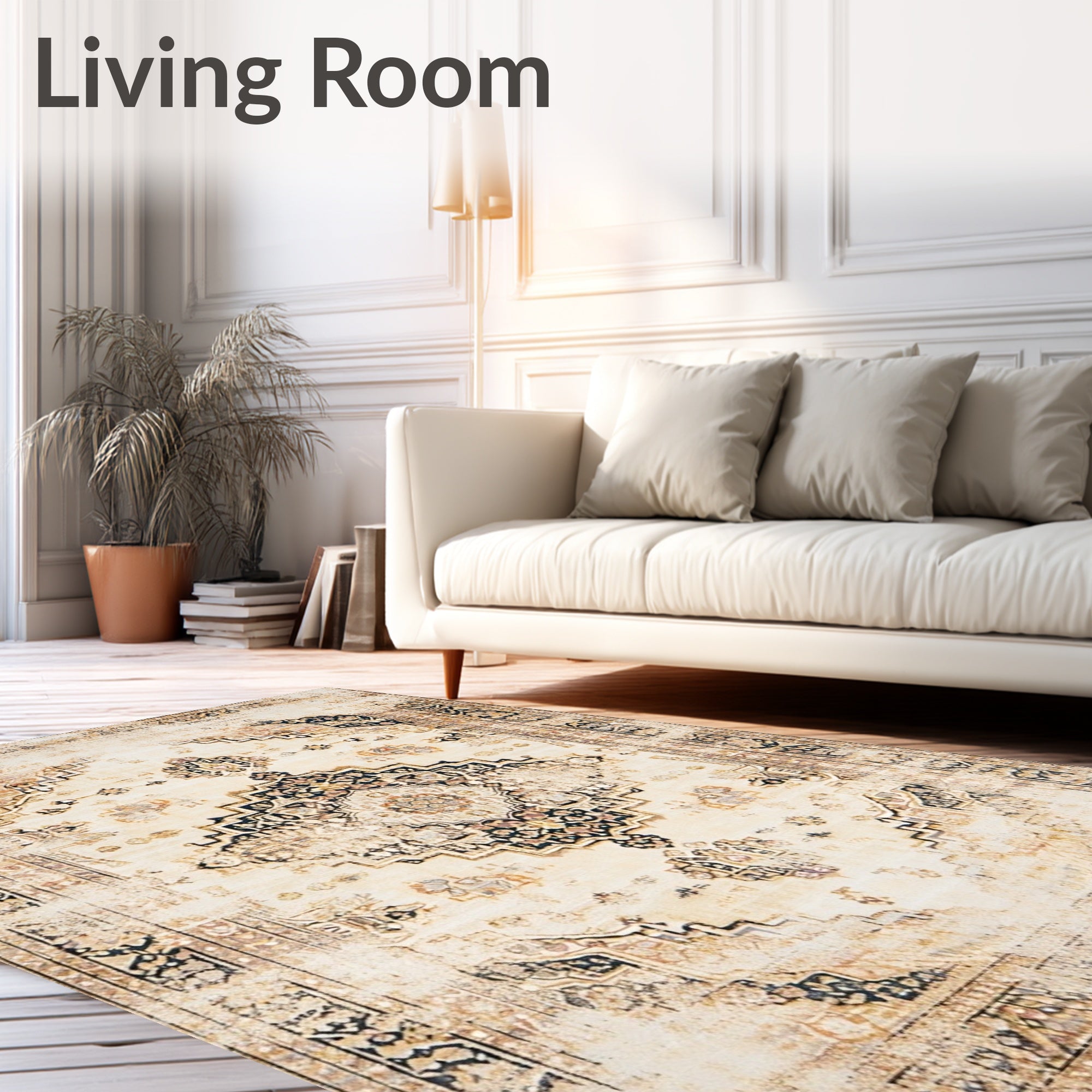 Ultra Soft Area Rug, Non Slip, Stain Resistant, Washable Area Rugs for Living Room, Bedroom, Elegant Farmhouse Area With Vintage Distressed Medallion Design(Beige) Overview: