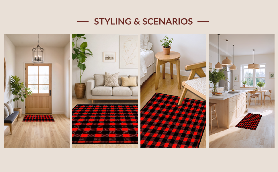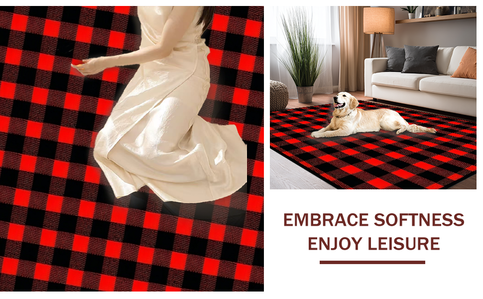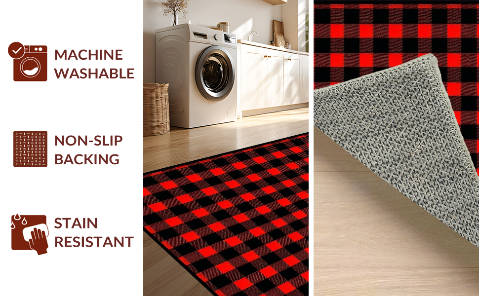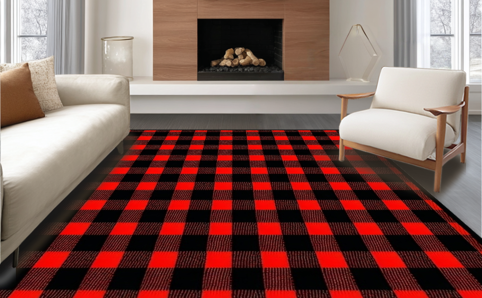 Ultra Soft Area Rug, Non Slip, Stain Resistant, Washable Area Rugs for Living Room, Bedroom, Elegant Farmhouse Checkered Visual Theme(Red) Overview: