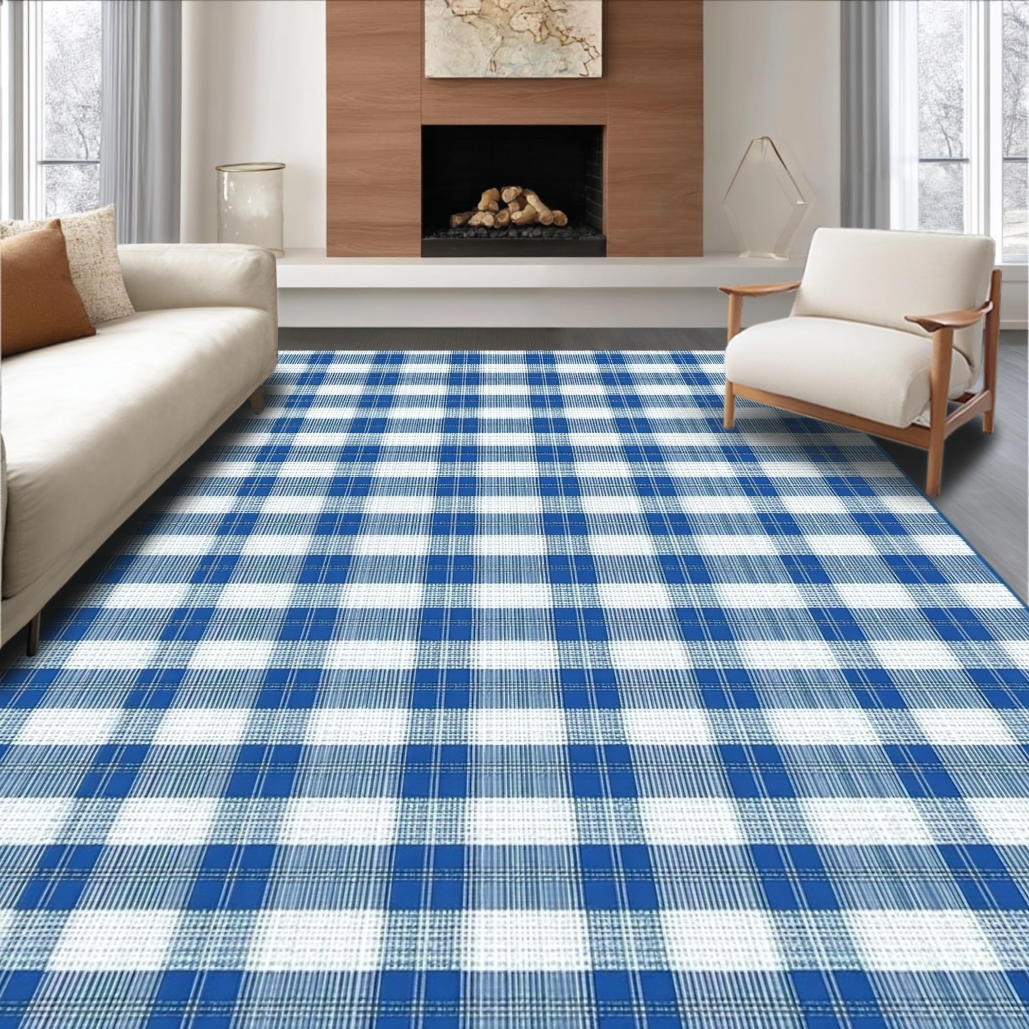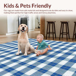 Ultra Soft Area Rug, Non Slip, Stain Resistant, Washable Area Rugs for Living Room, Bedroom, Elegant Farmhouse Geometric Motif(Blue) Overview: