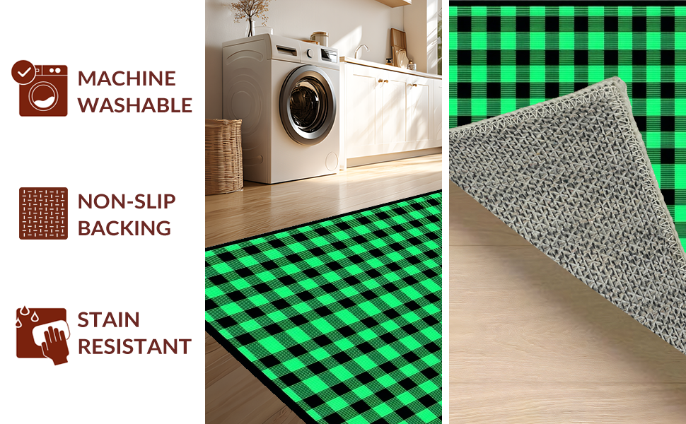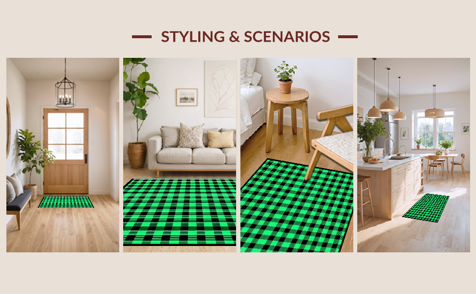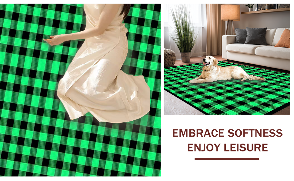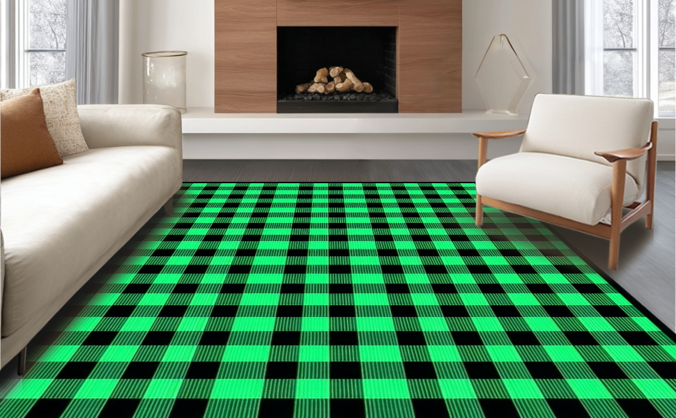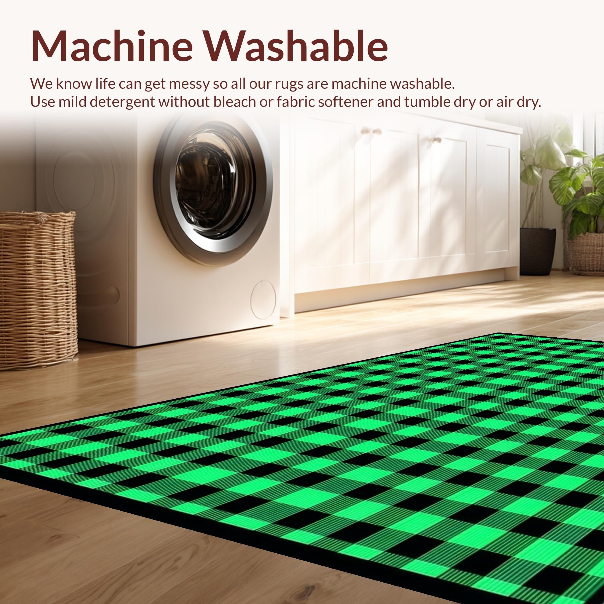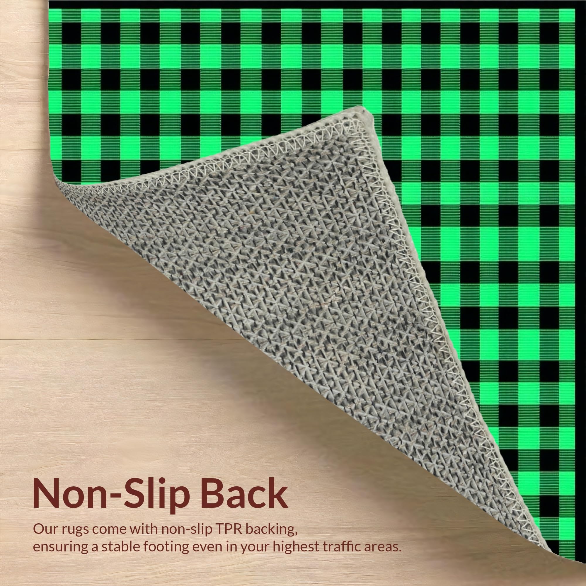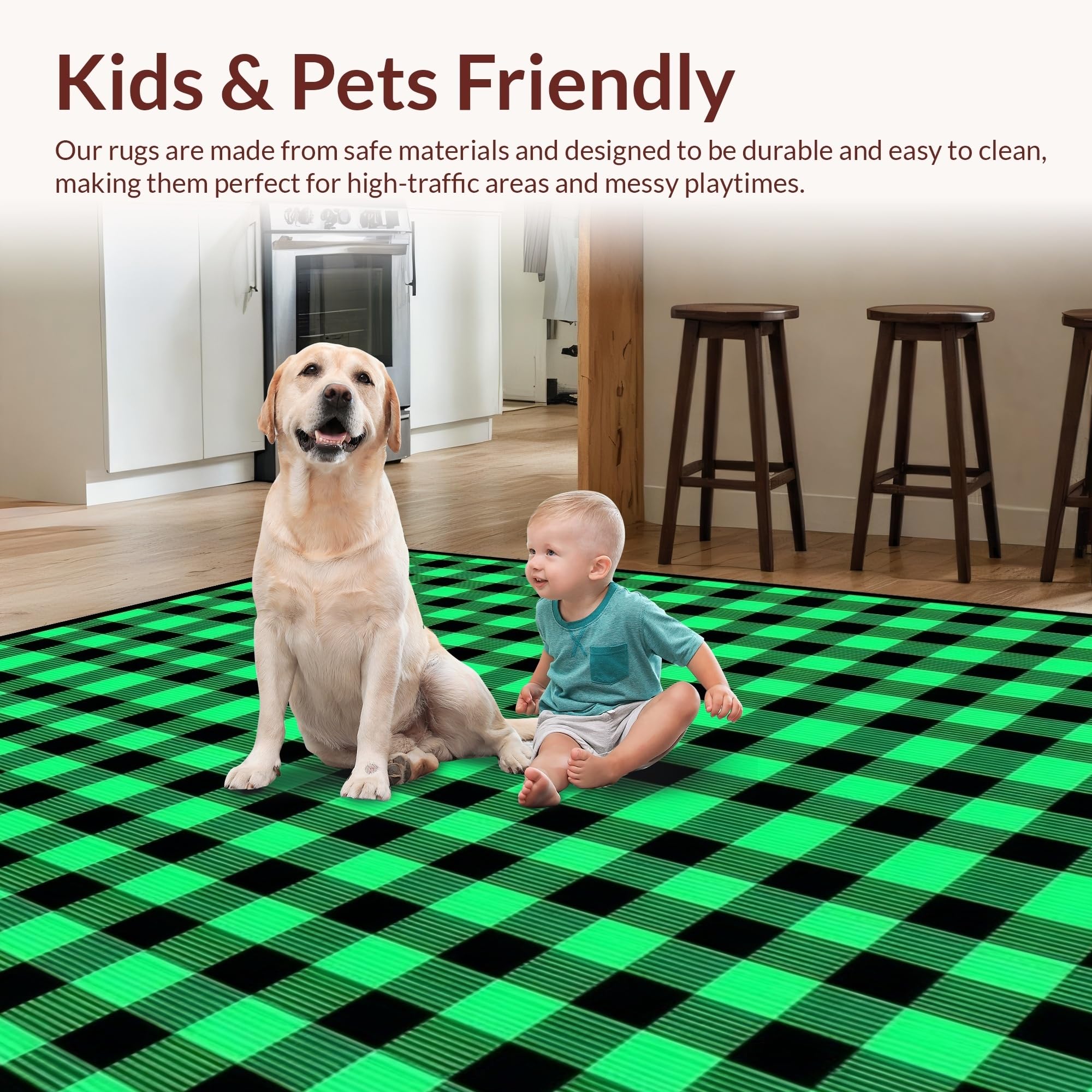 Ultra Soft Area Rug, Non Slip, Stain Resistant, Washable Area Rugs for Living Room, Bedroom, Elegant Farmhouse Plaid Arrangement(Green) Overview: