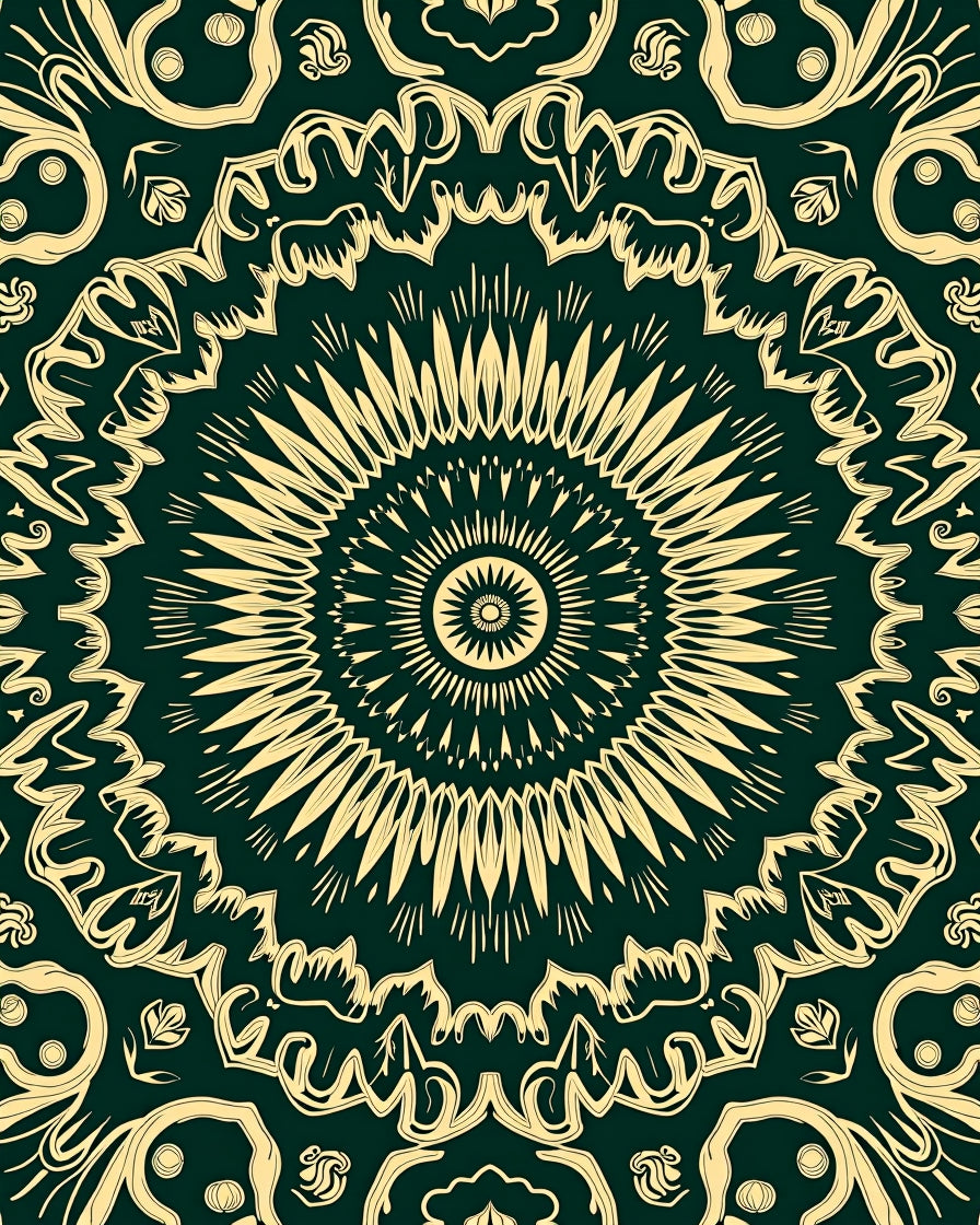 Elegant Featuring Symmetrical Petals And Radiant Floral Accents(Green)