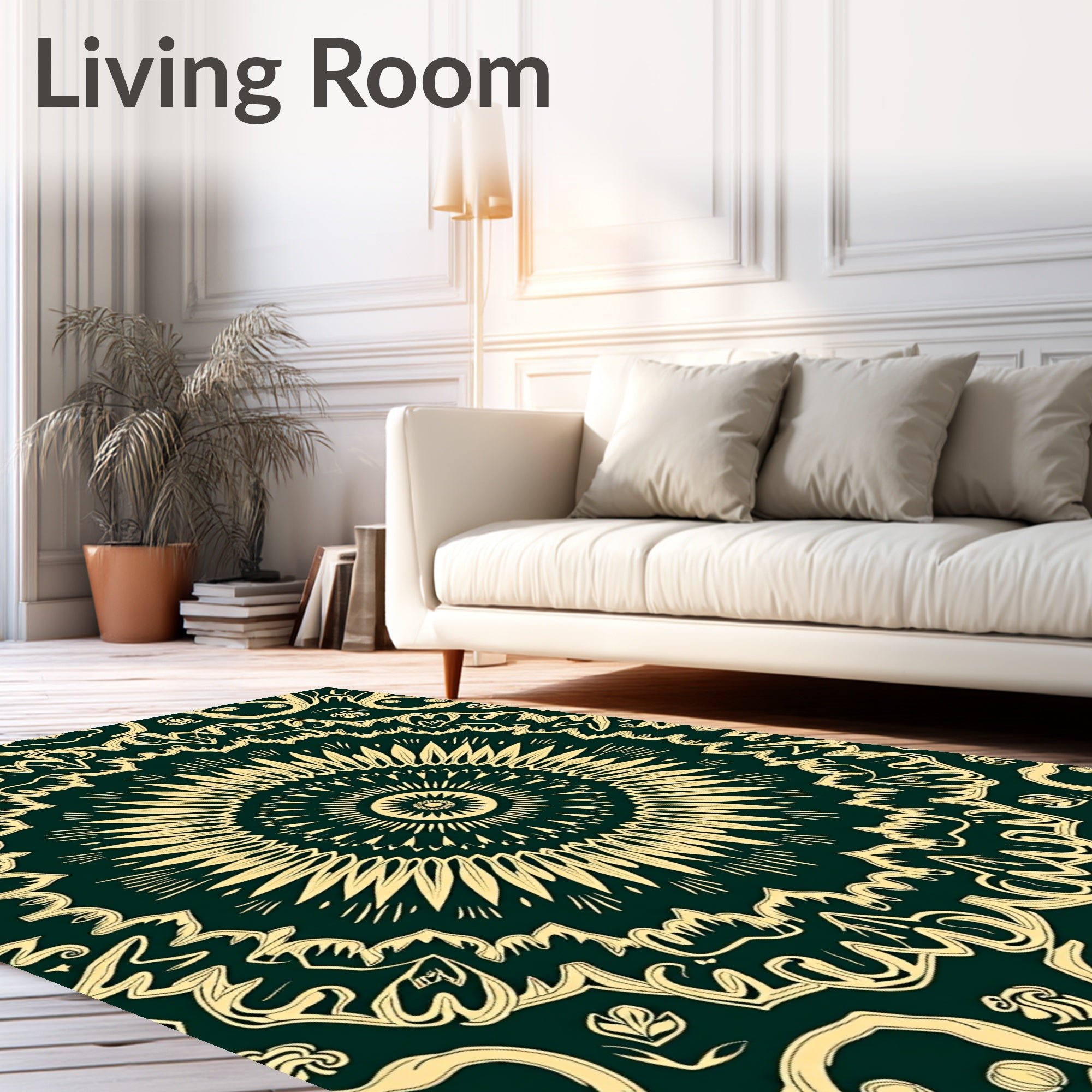 Ultra Soft Area Rug, Non Slip, Stain Resistant, Washable Area Rugs for Living Room, Bedroom, Elegant Featuring Symmetrical Petals And Radiant Floral Accents(Green) Overview: