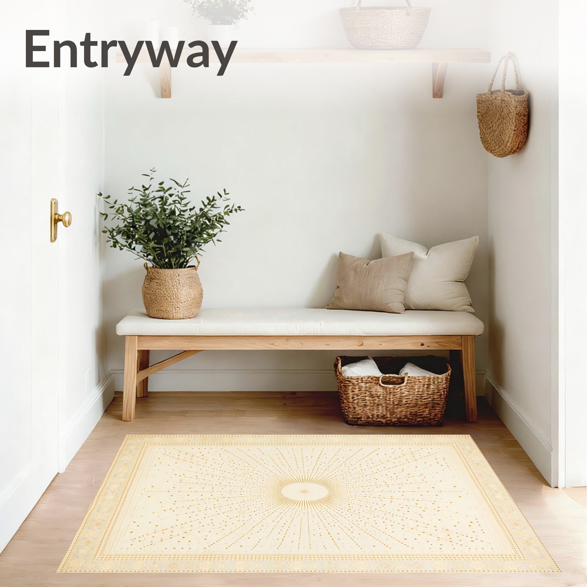 Ultra Soft Area Rug, Non Slip, Stain Resistant, Washable Area Rugs for Living Room, Bedroom, Elegant Floor Modern Boho with Central Starburst Design(Beige) Overview: